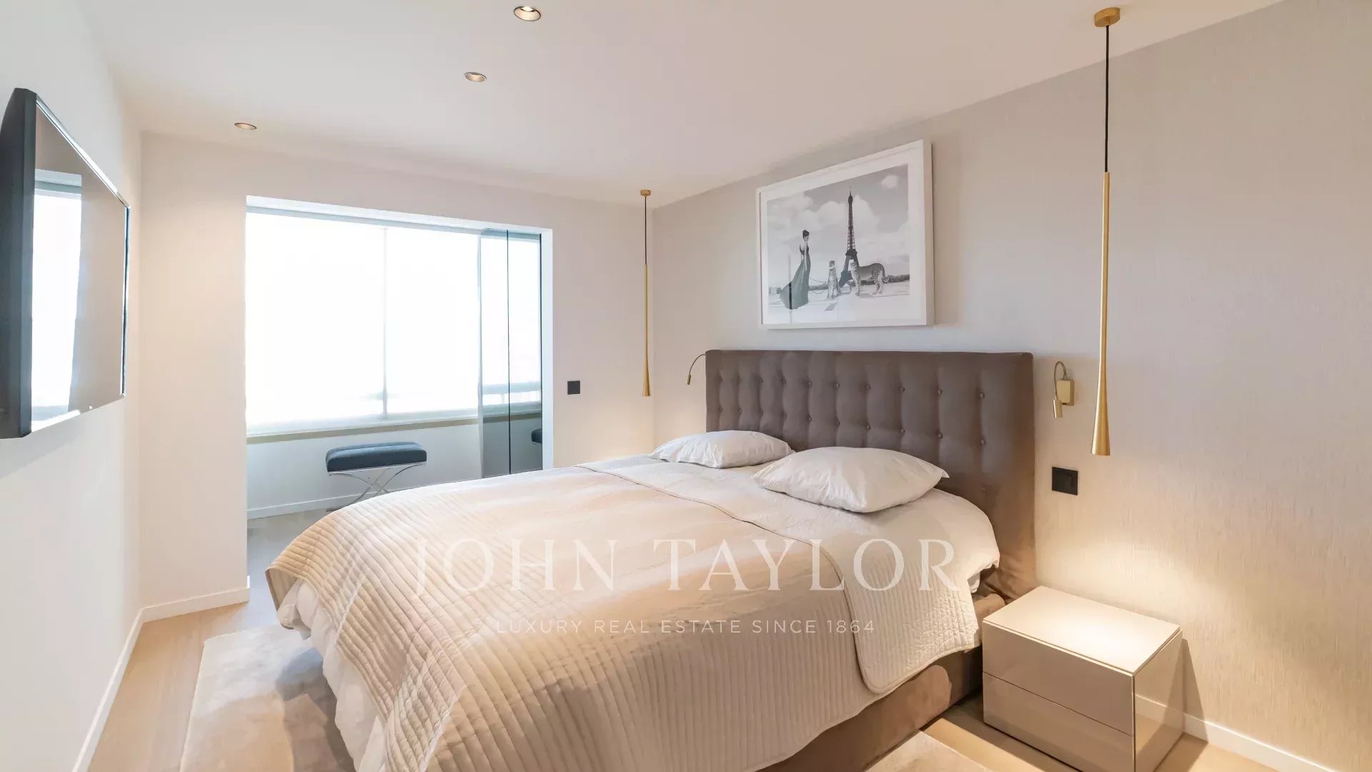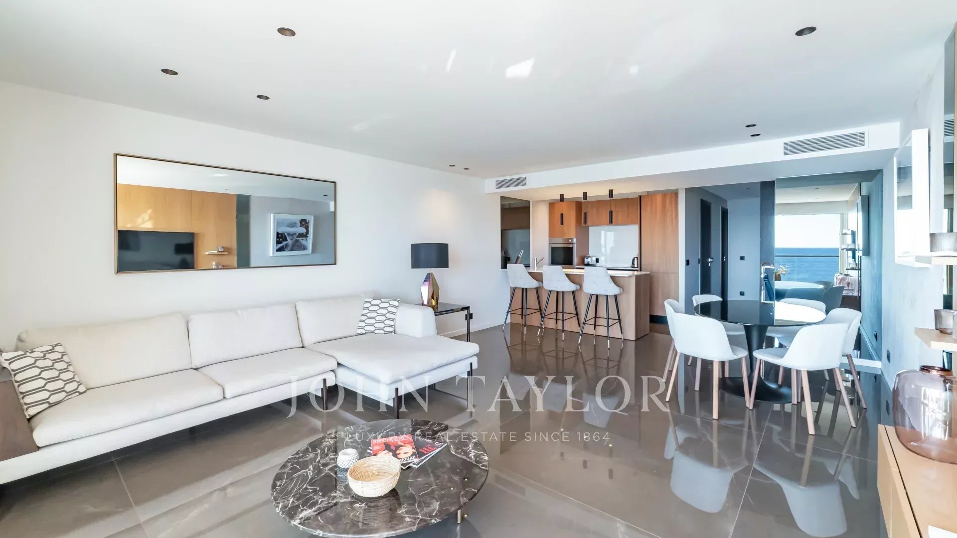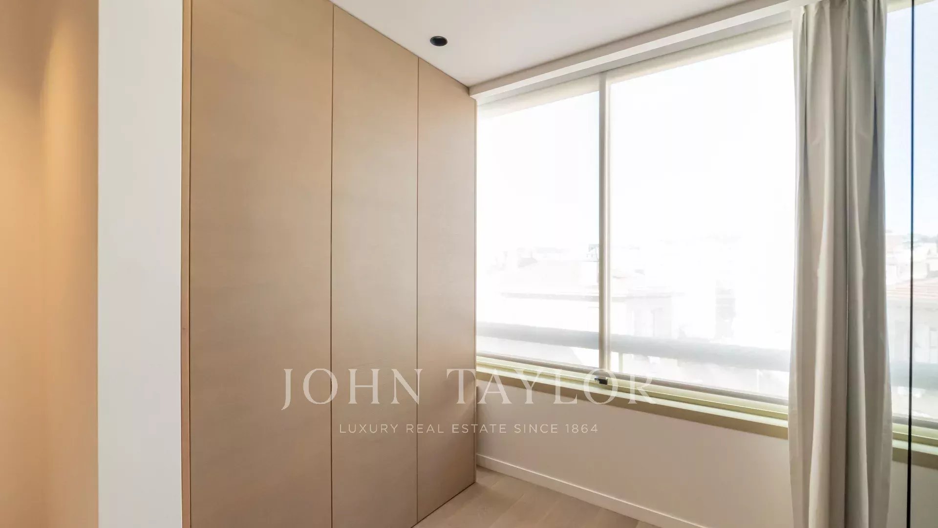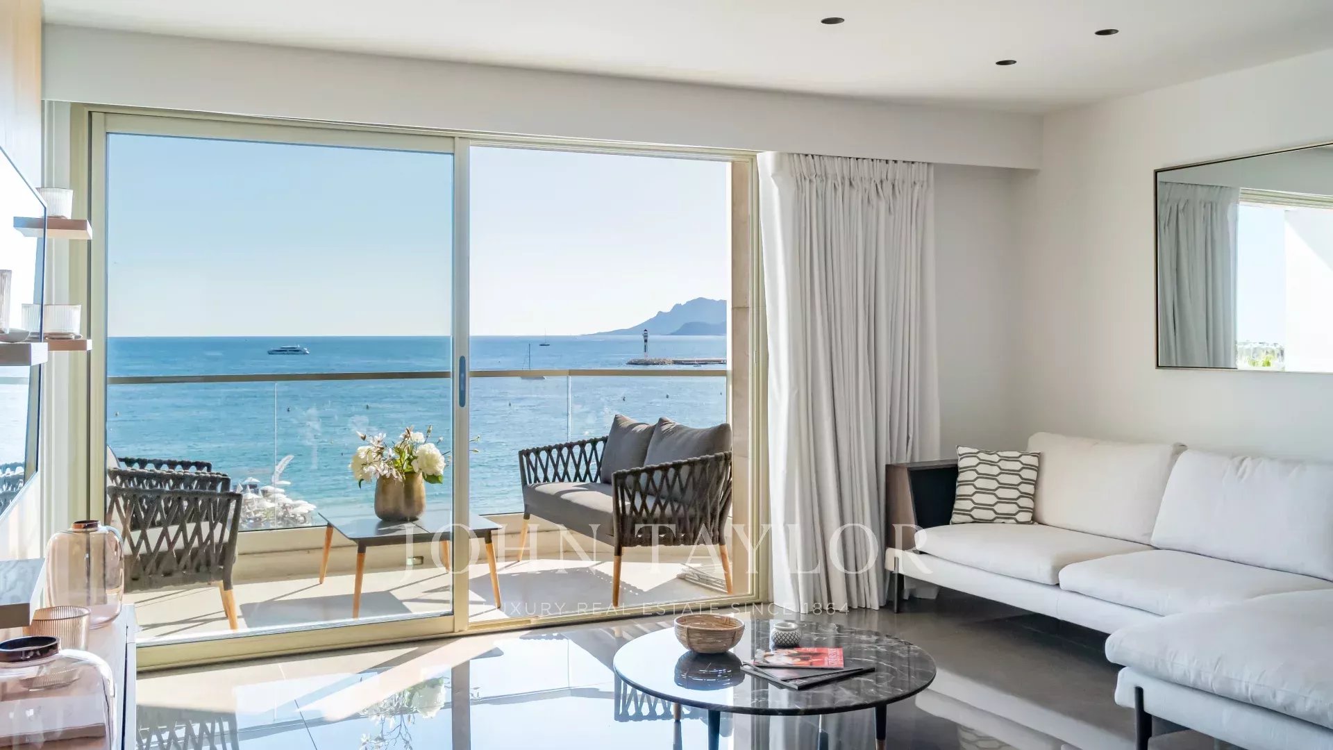 Bel appartement climatisé situé au cœur de la Croisette au 5ème étage d’une résidence de standing, jouissant d'une vue panoramique magnifique sur la Baie de Cannes, ses plages, le Palais des Festivals, et l'Estérel.