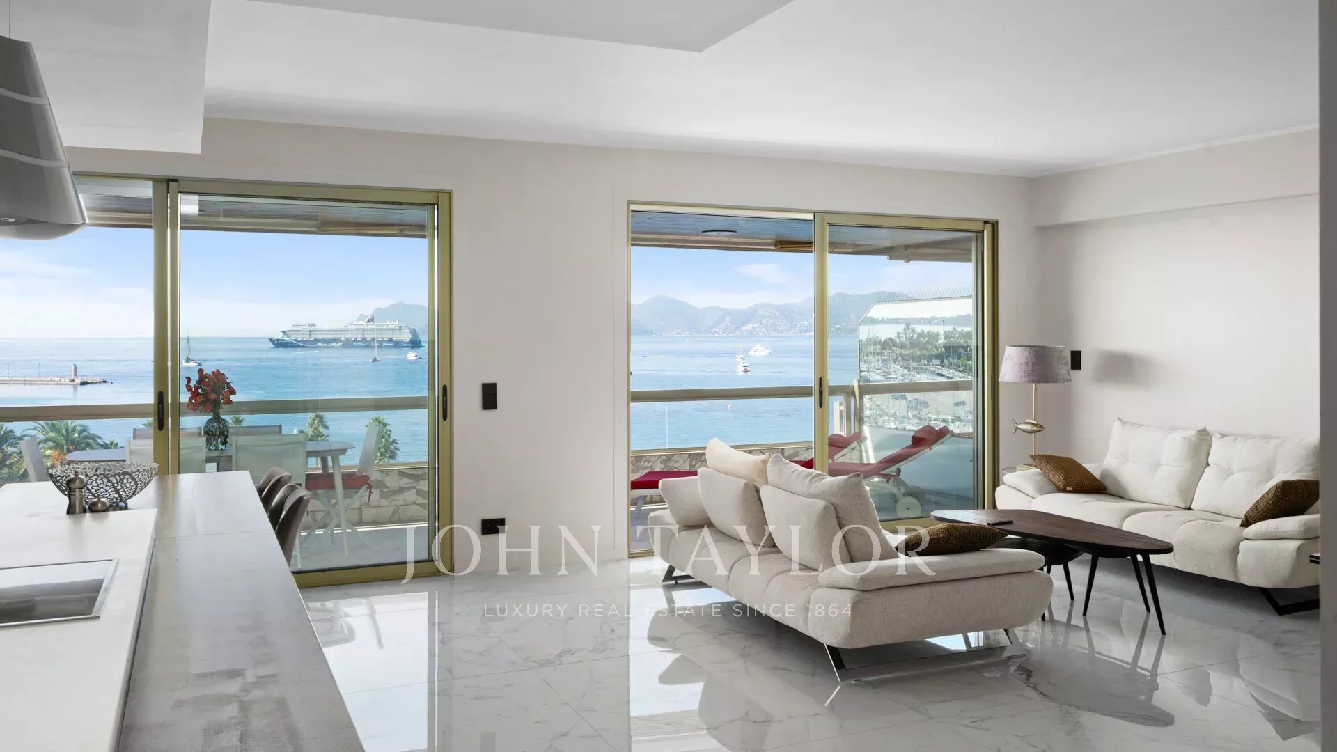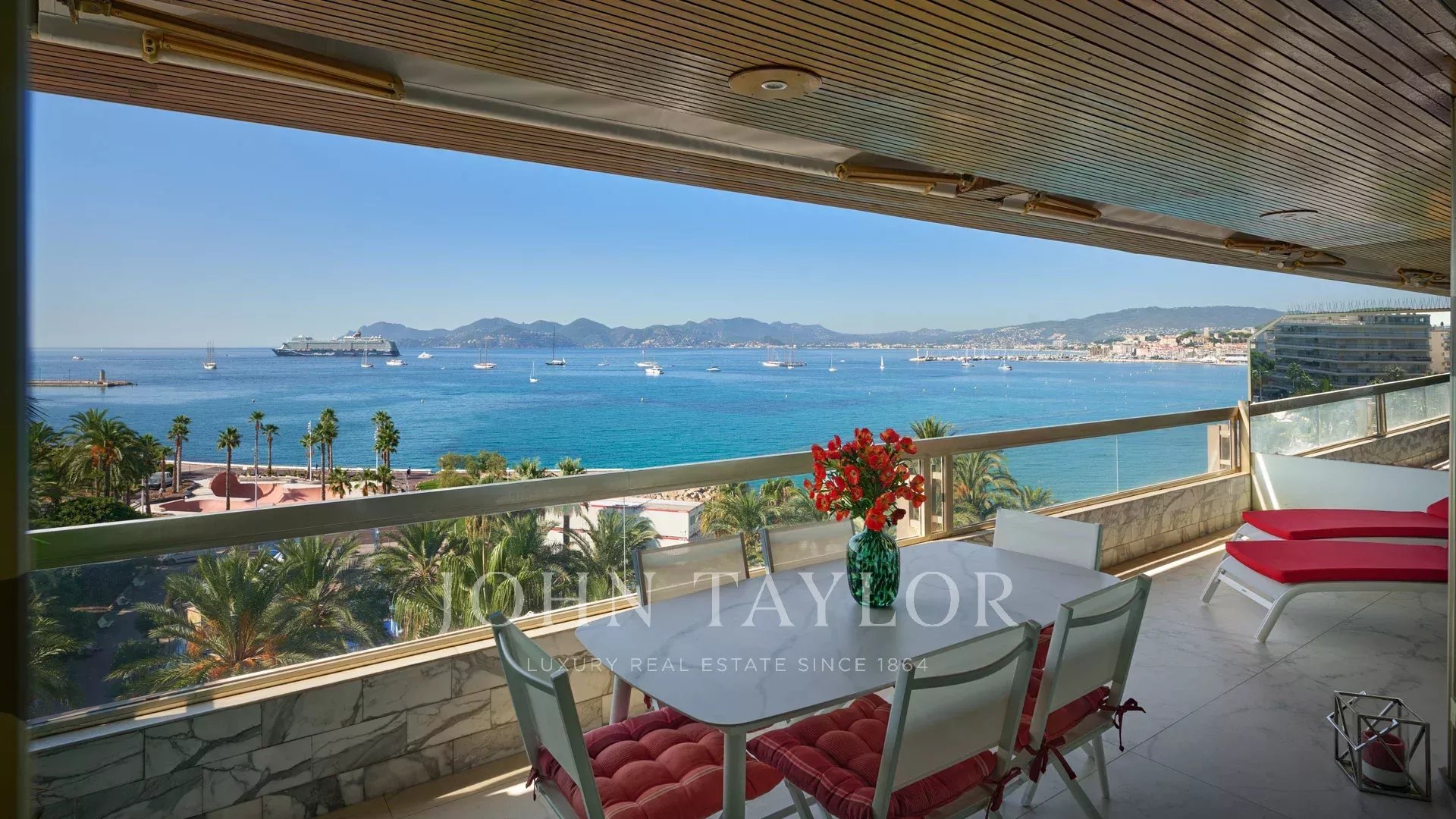 Au 7ème étage, face à la mer et dominant les plages de la Croisette, ce superbe appartement d'environ 90 m² bénéficie d'une vue mer panoramique sur la baie de Cannes, le port Canto et l'île de Sainte Marguerite.