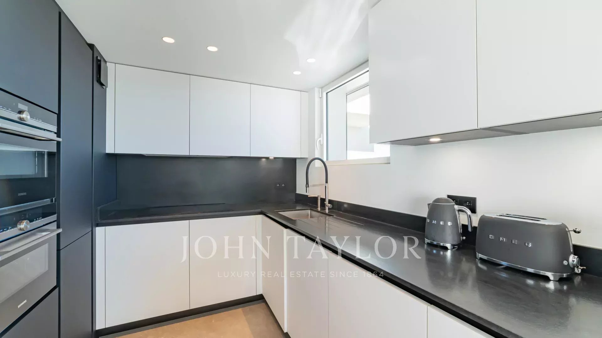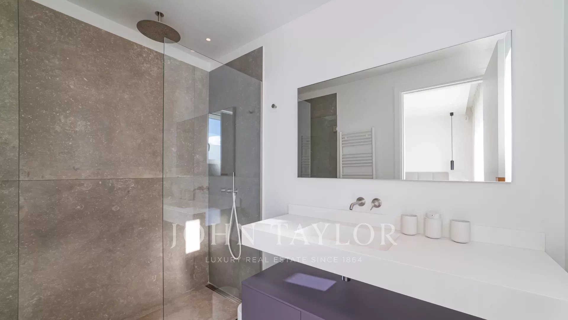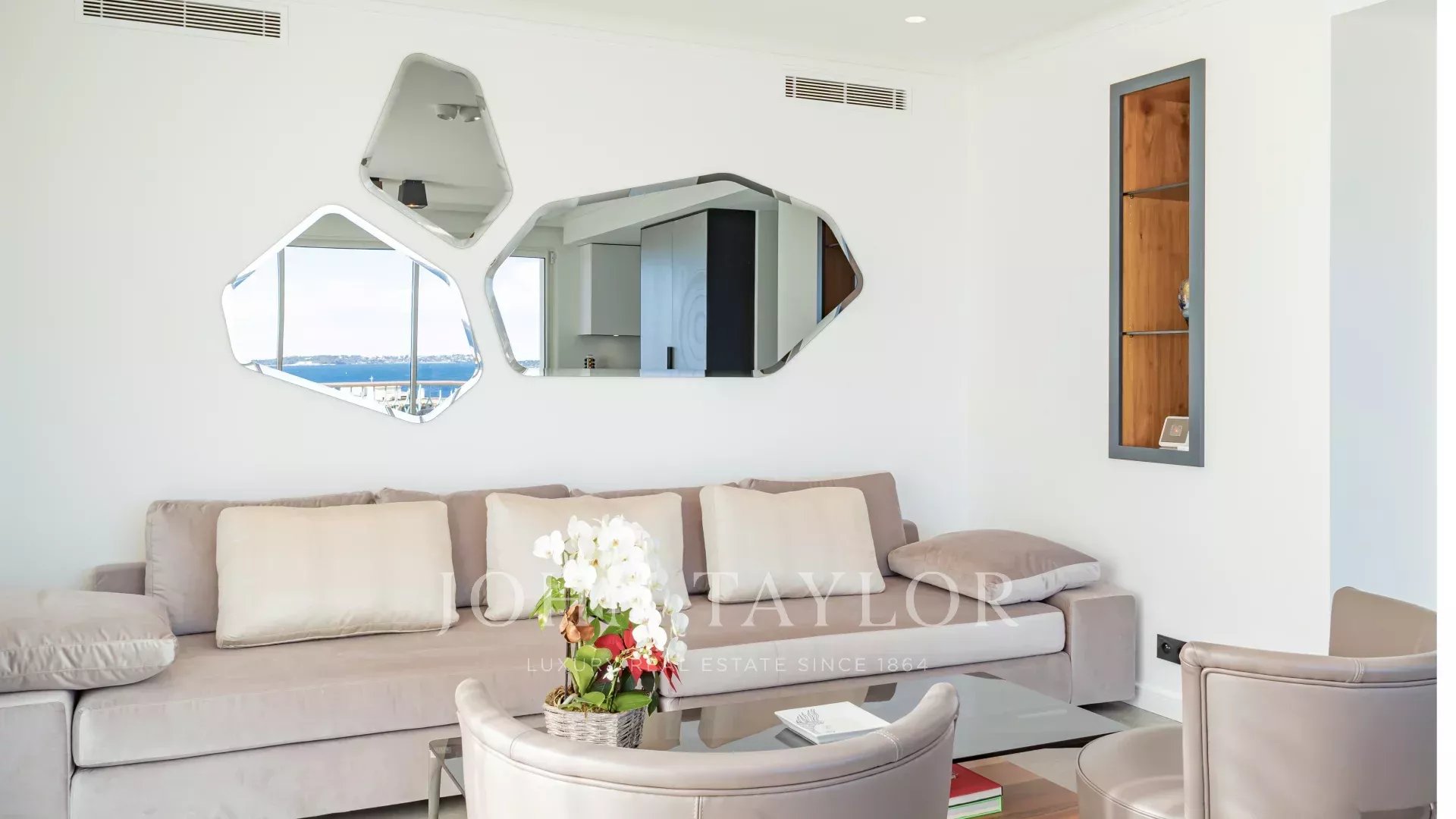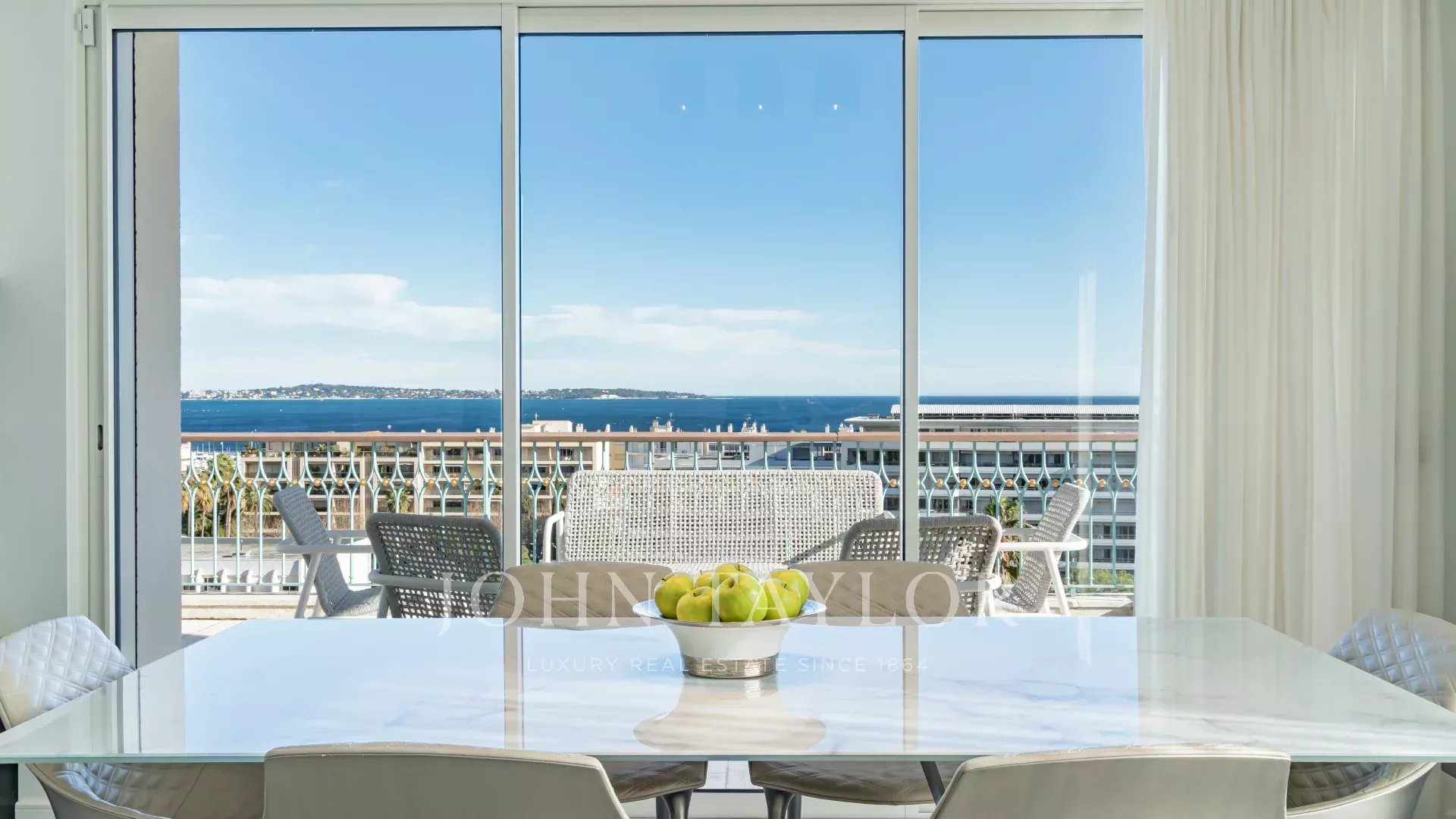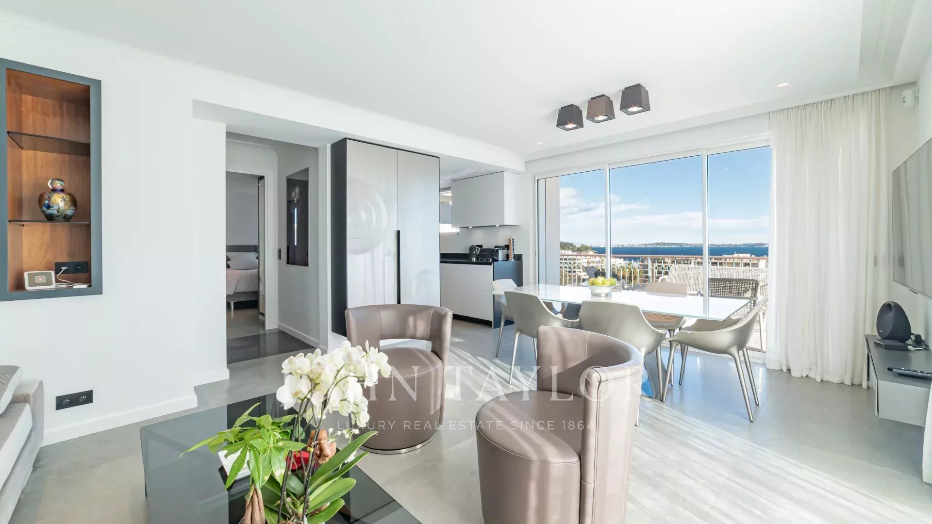 Entièrement rénové, l'appartement séduit par sa décoration, ses prestations haut de gamme et sa belle et grande terrasse d'environ 220 m2 aménagée de salons, transats et table à manger.