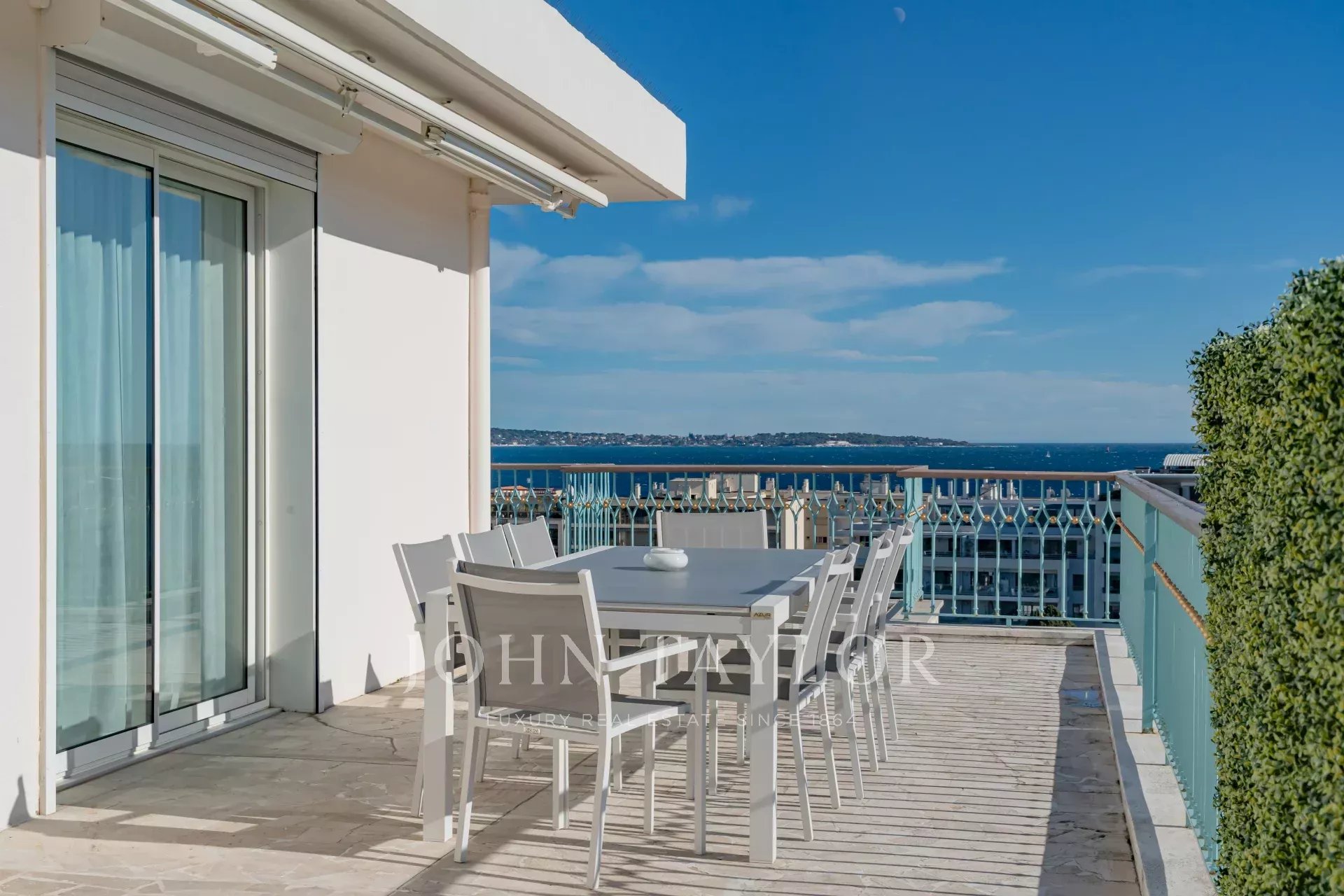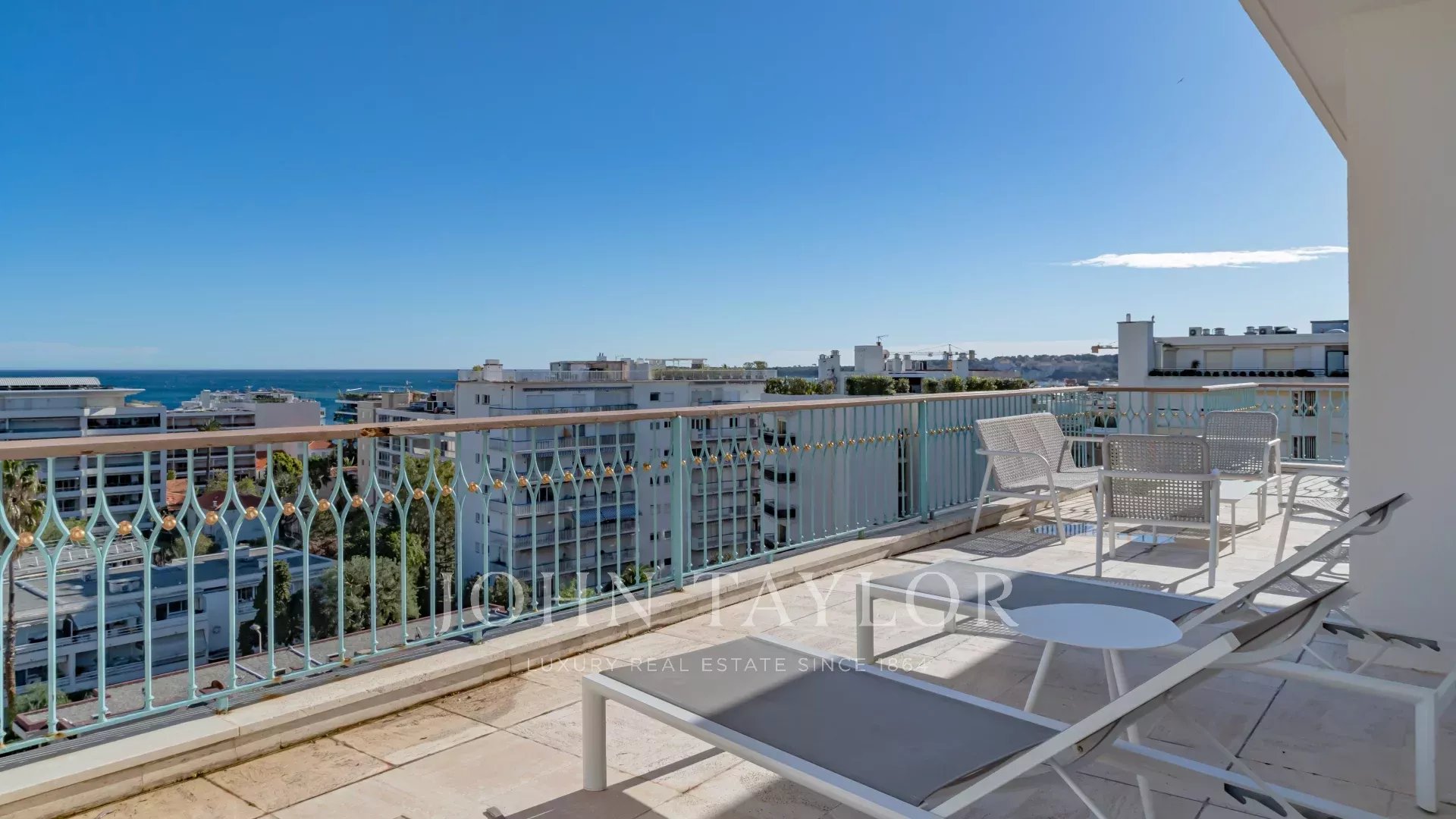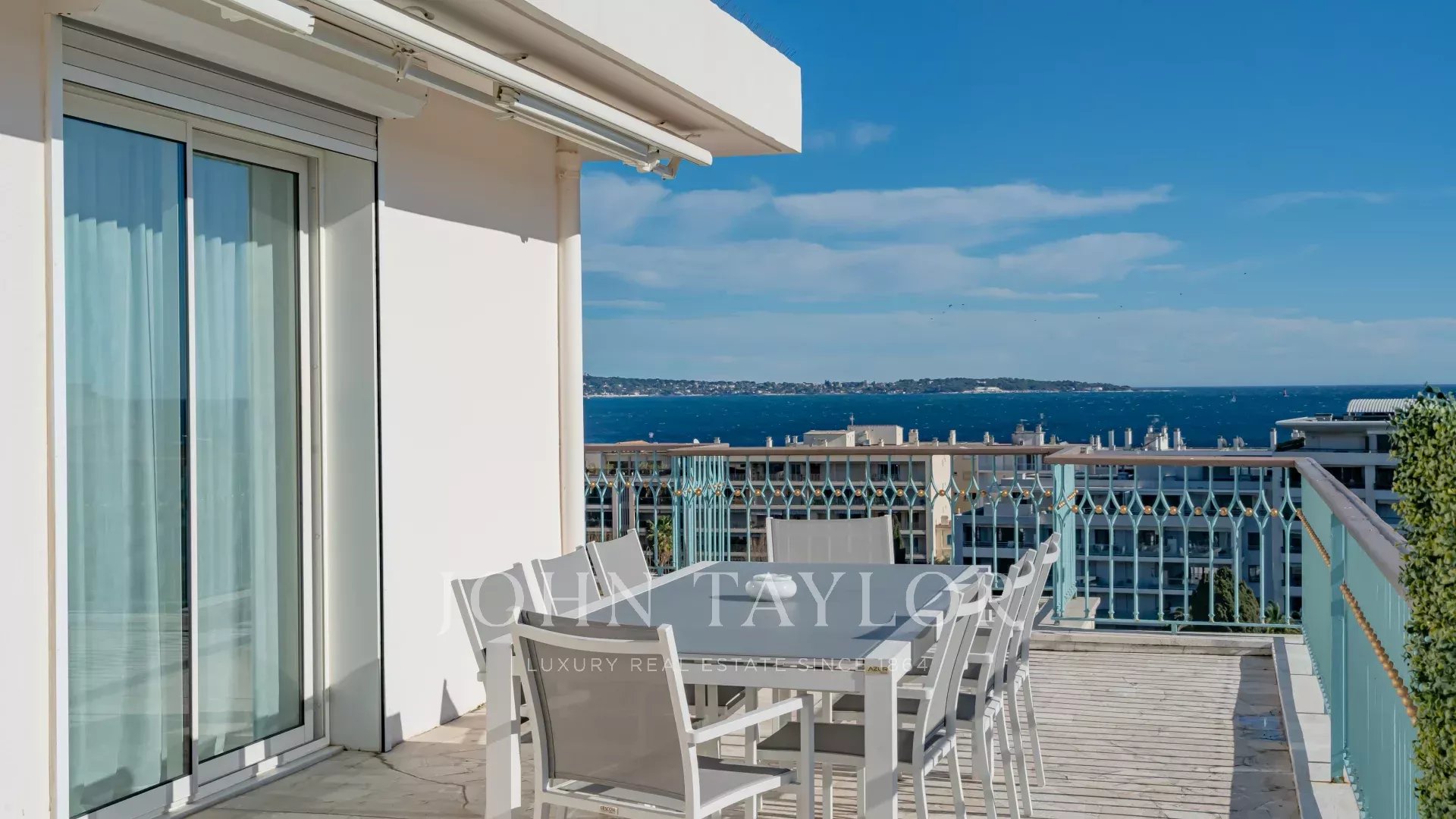 Dans l'une des plus prestigieuses résidences de la Croisette, secteur Palm Beach - Pointe Croisette, et offrant une superbe vue sur la Baie de Cannes, magnifique toit-terrasse contemporain d'environ 110 m2 habitables.