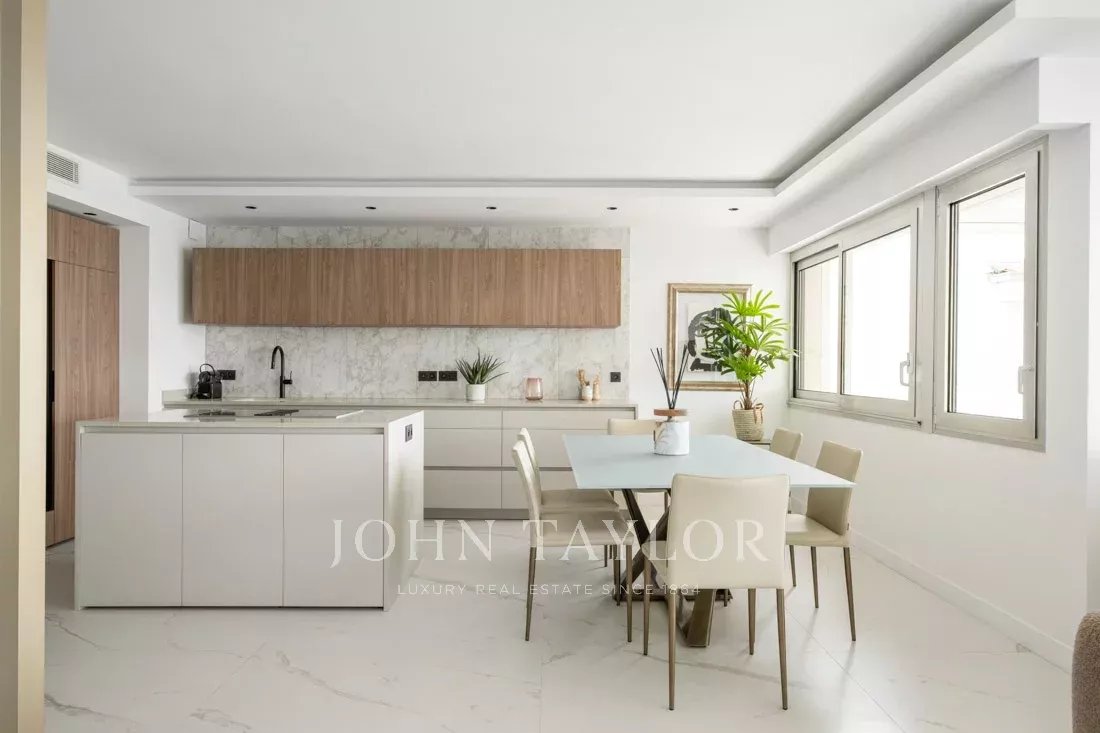 Un vaste séjour baigné de lumière avec cuisine équipée haut de gamme