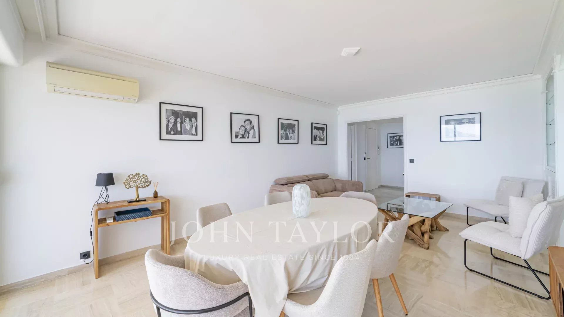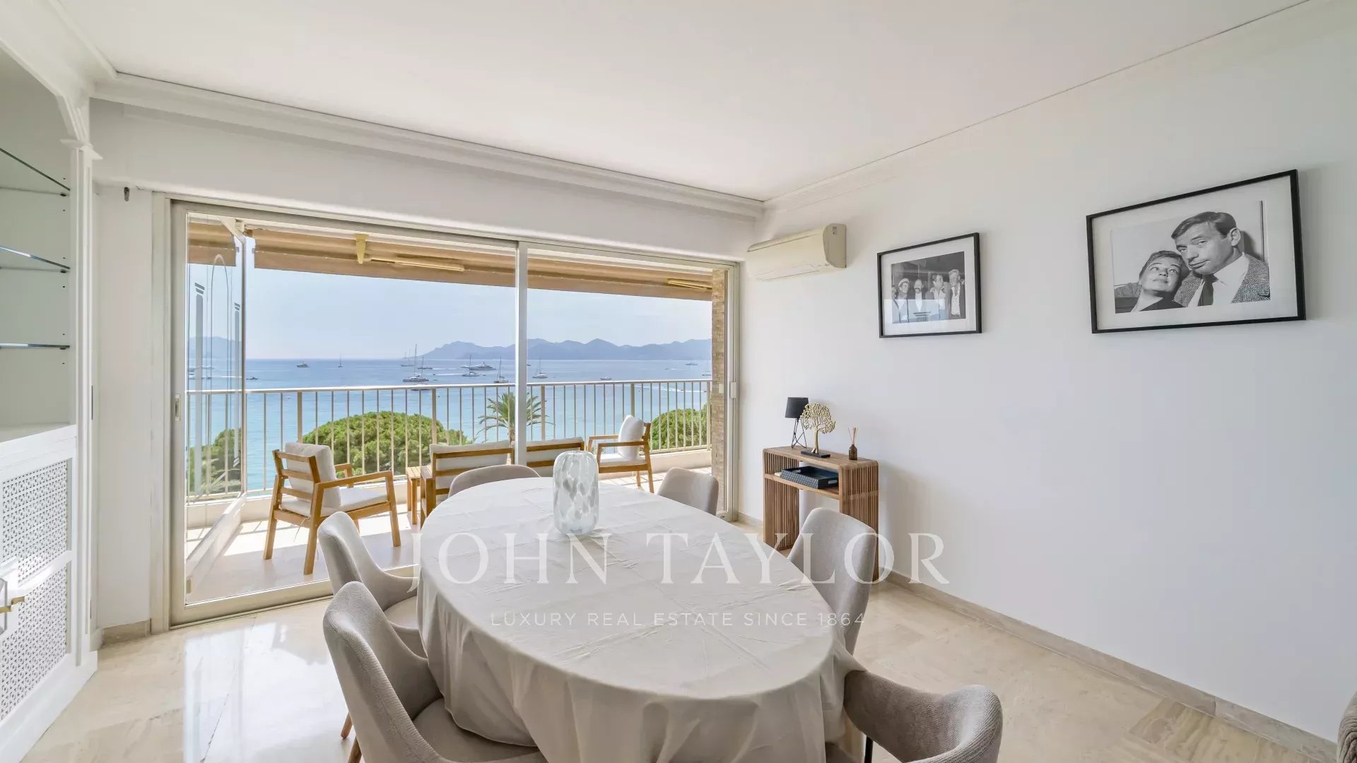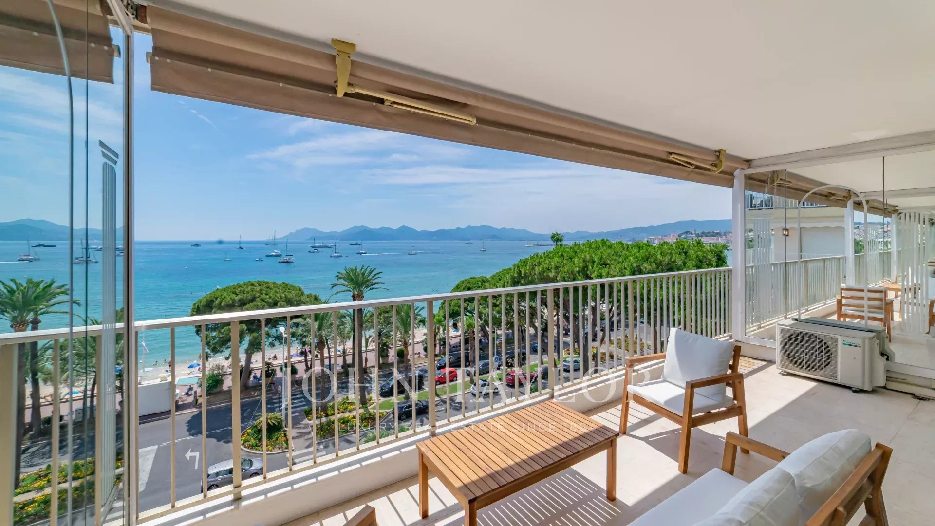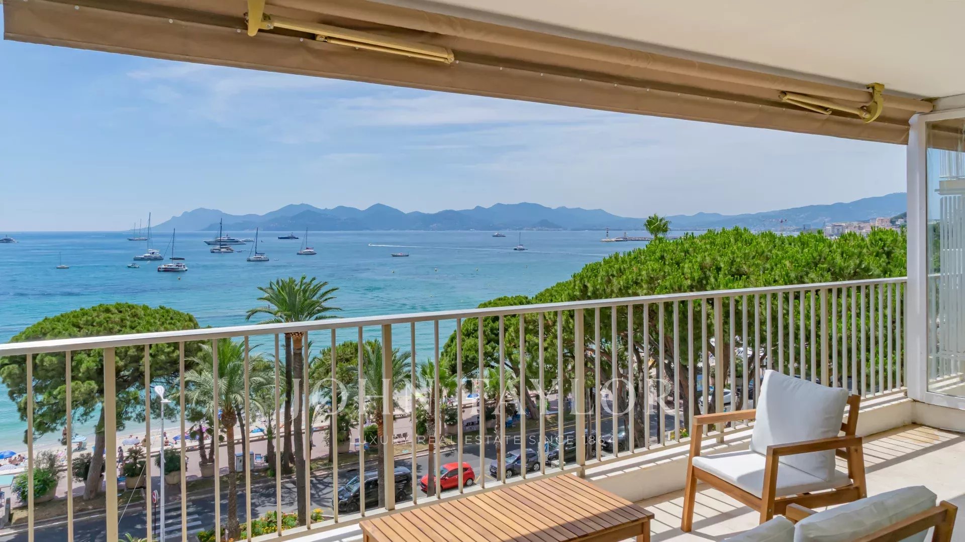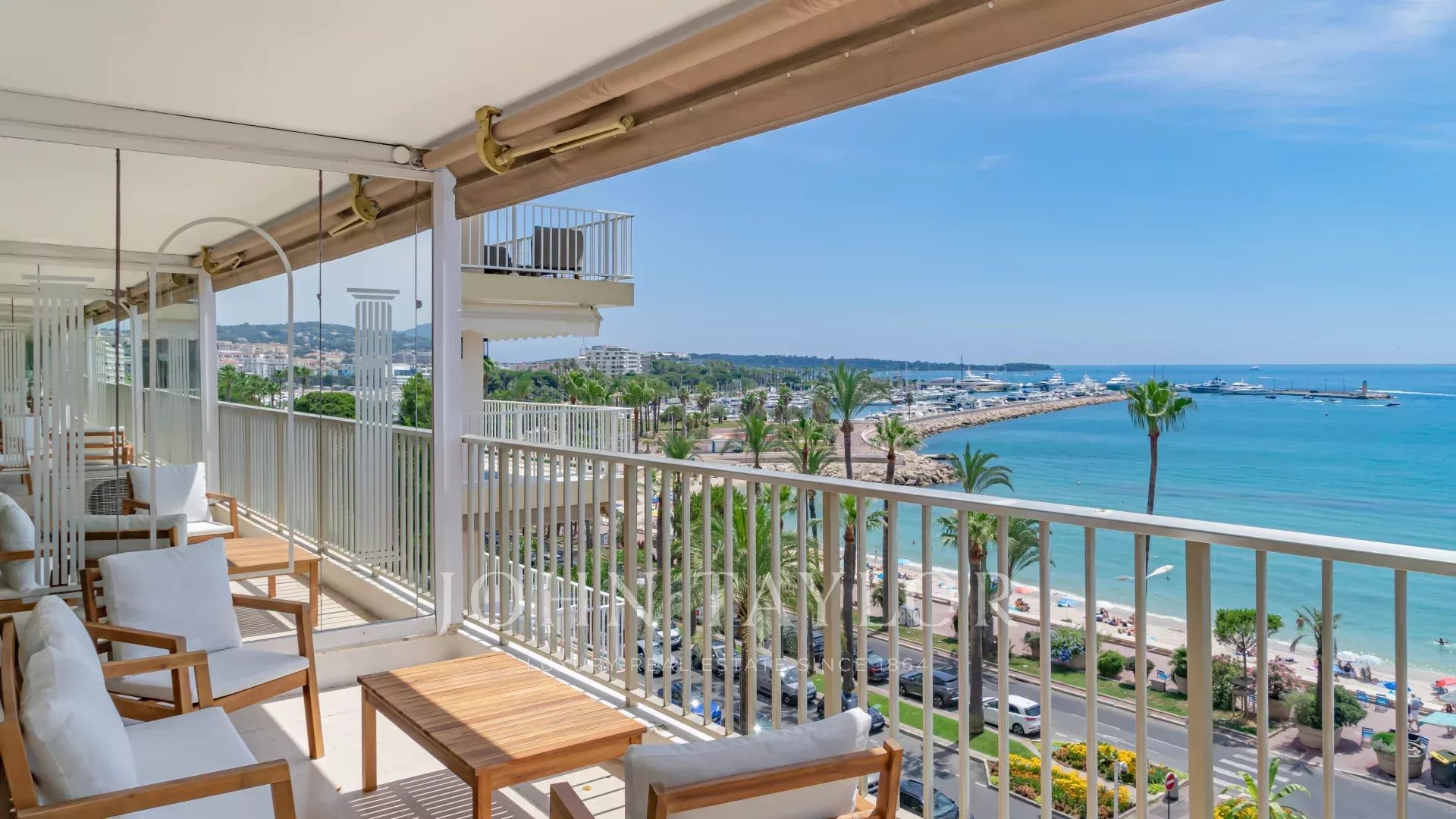 Au cœur de la Croisette, dans une résidence de standing avec gardien, cet appartement situé au 6ᵉ étage offre une vue panoramique sur la mer sur la baie de Cannes.