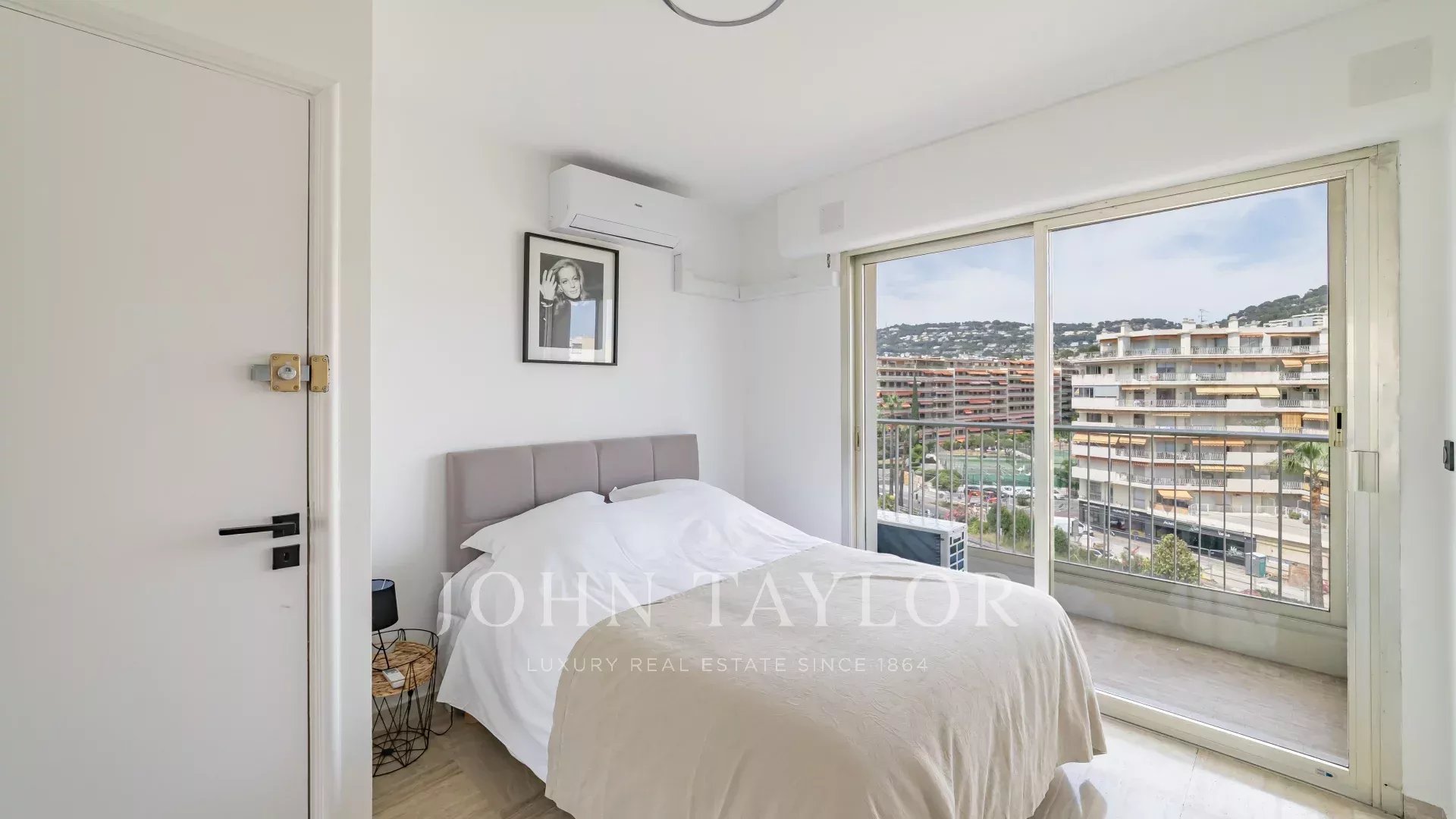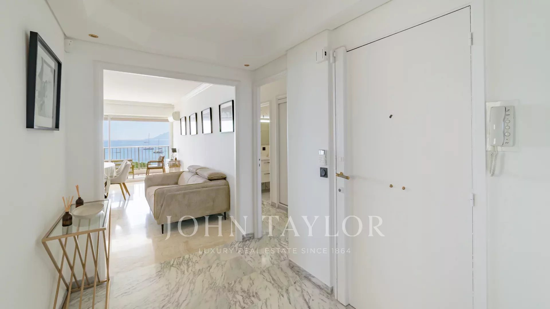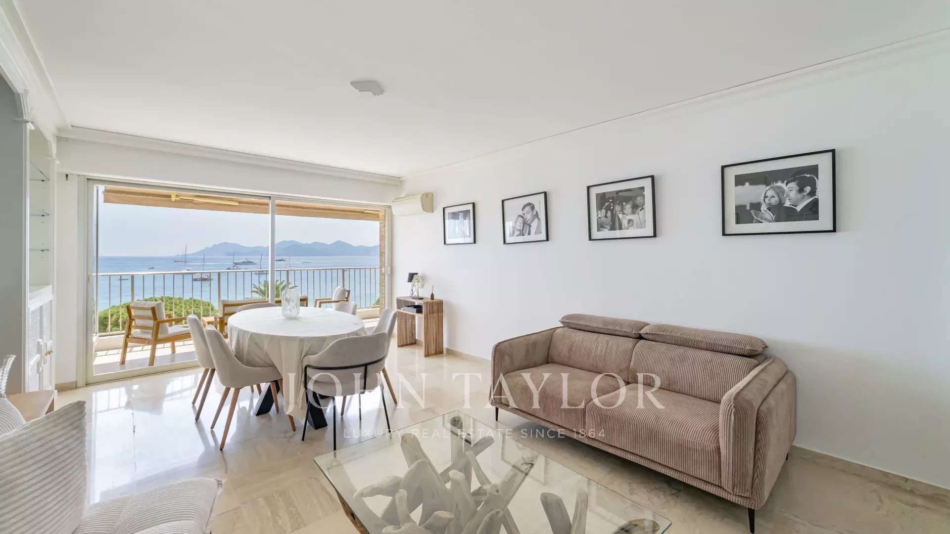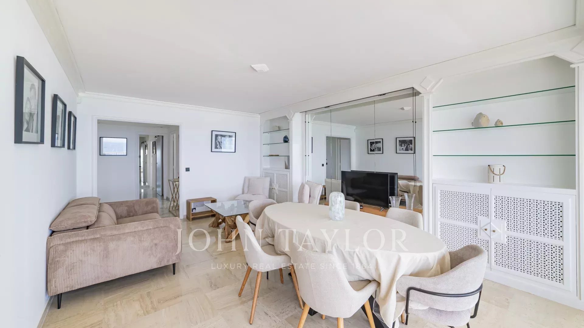 Au cœur de la Croisette, dans une résidence de standing avec gardien, cet appartement situé au 6ᵉ étage offre une vue panoramique sur la mer sur la baie de Cannes.