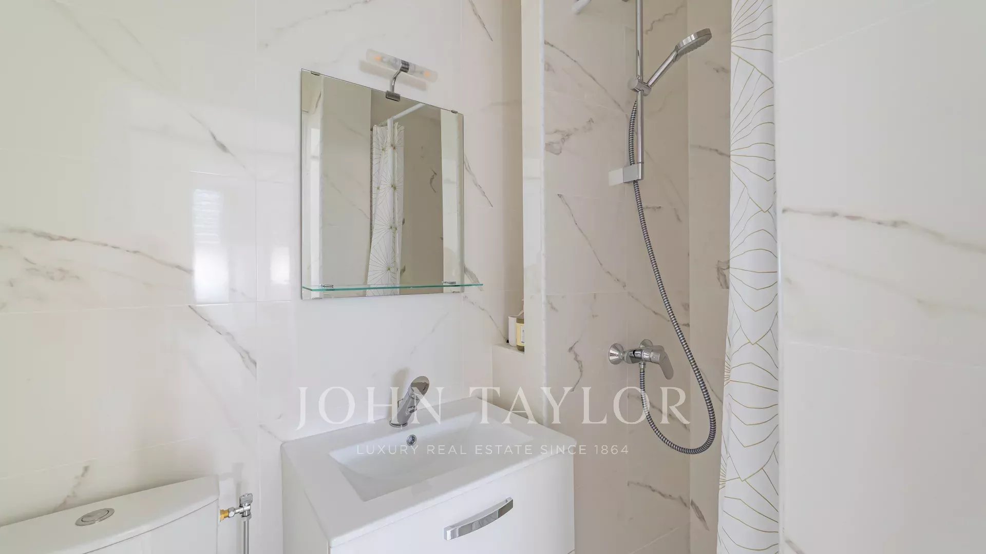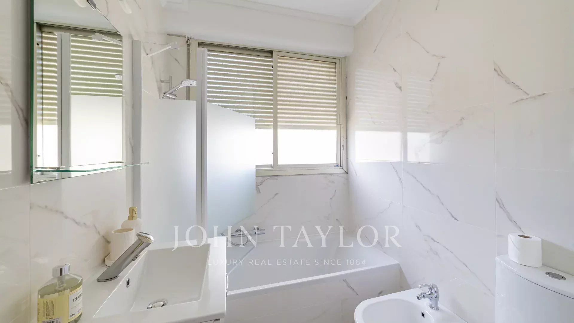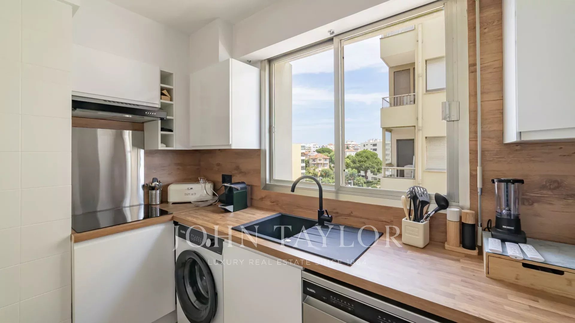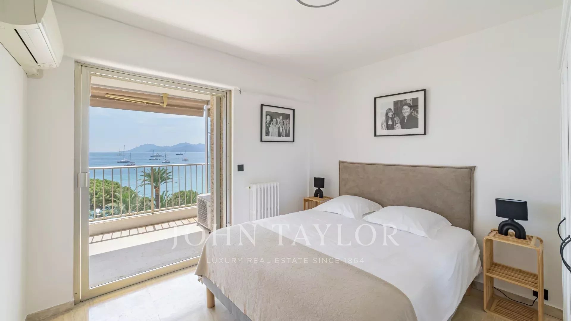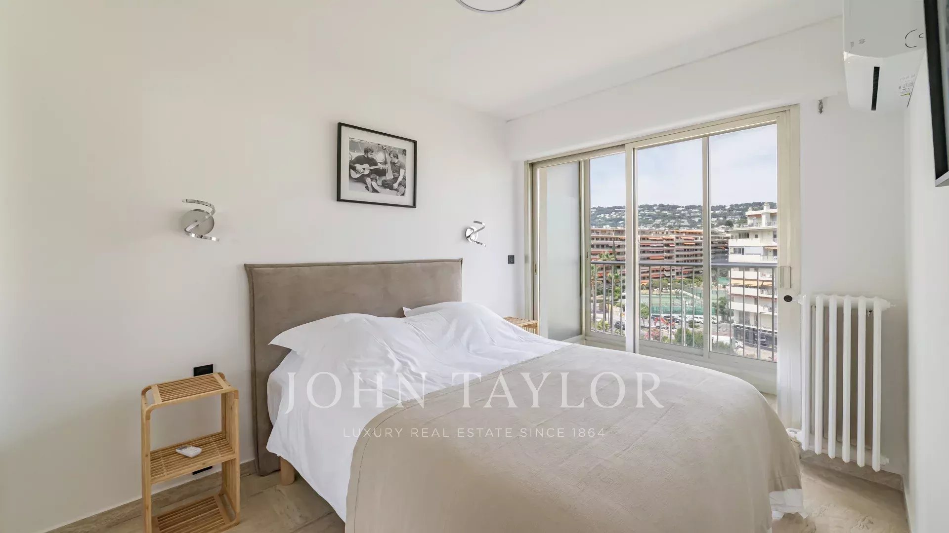 Au cœur de la Croisette, dans une résidence de standing avec gardien, cet appartement situé au 6ᵉ étage offre une vue panoramique sur la mer sur la baie de Cannes.