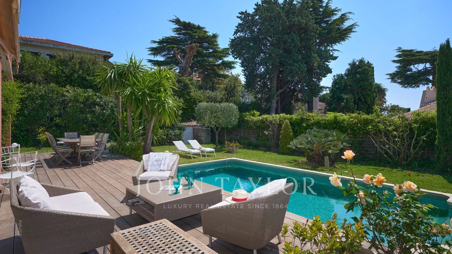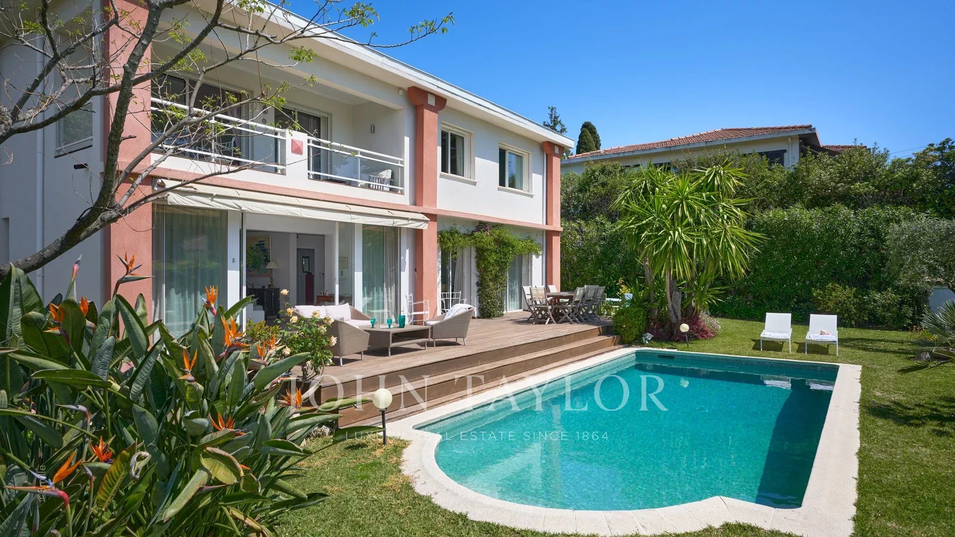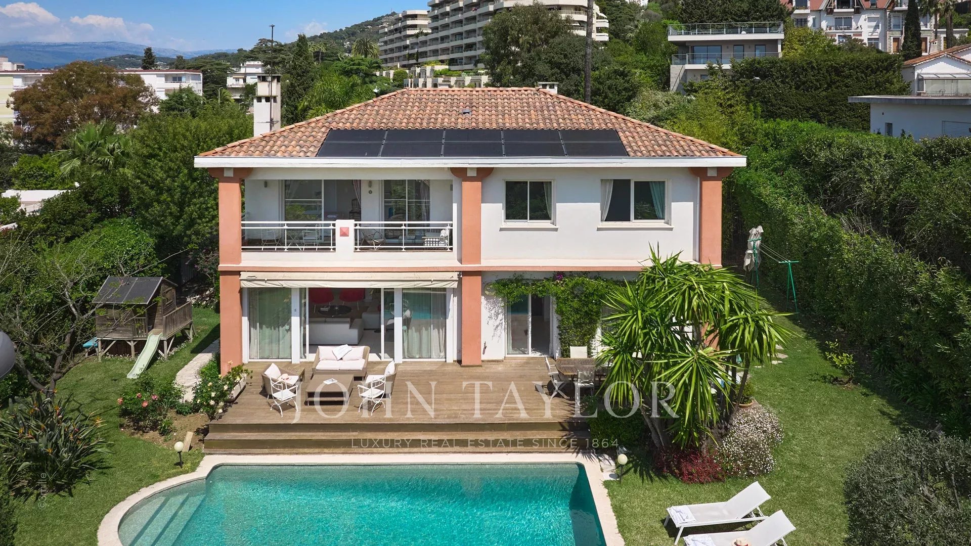 Villa moderne sur deux niveaux de 230 m2 récemment rénovée et entièrement climatisée proche du centre ville de Cannes.