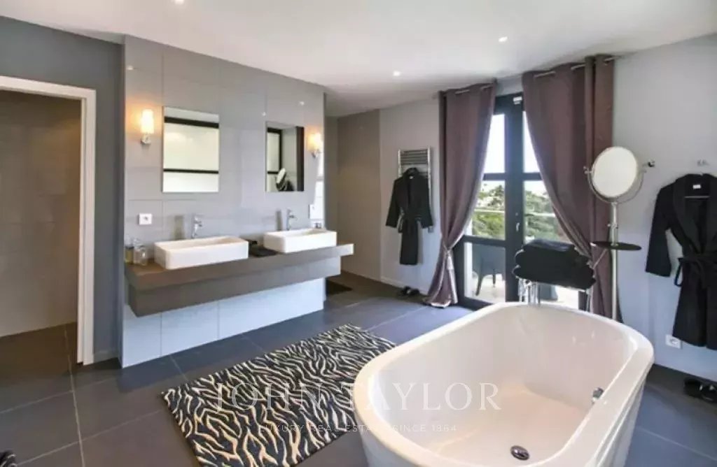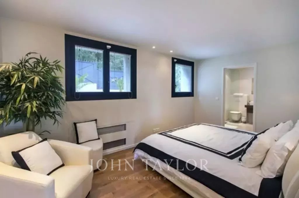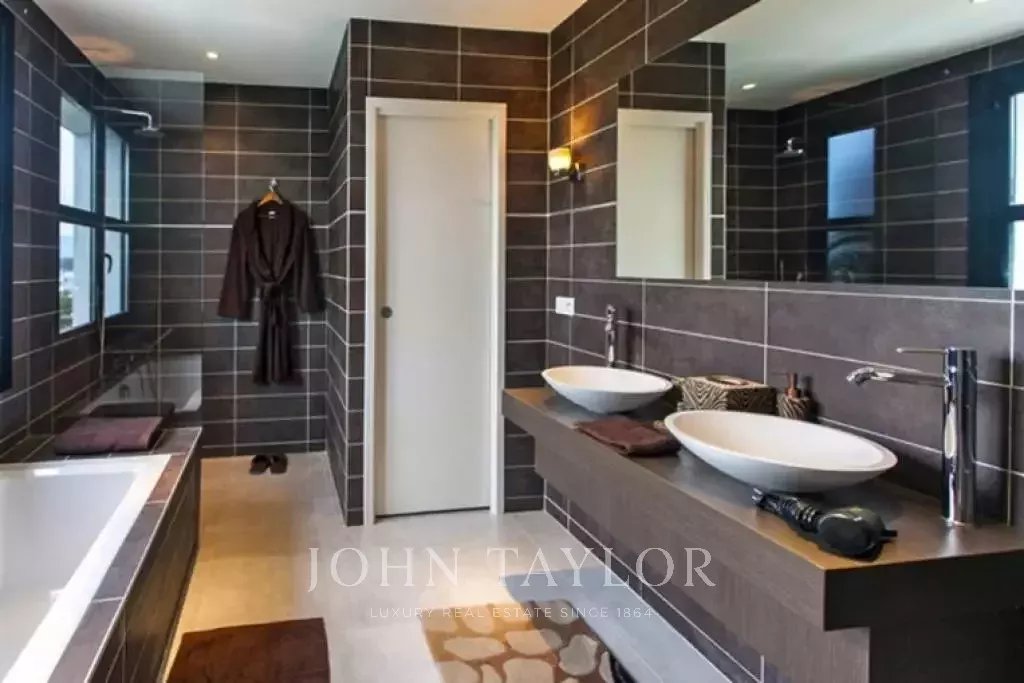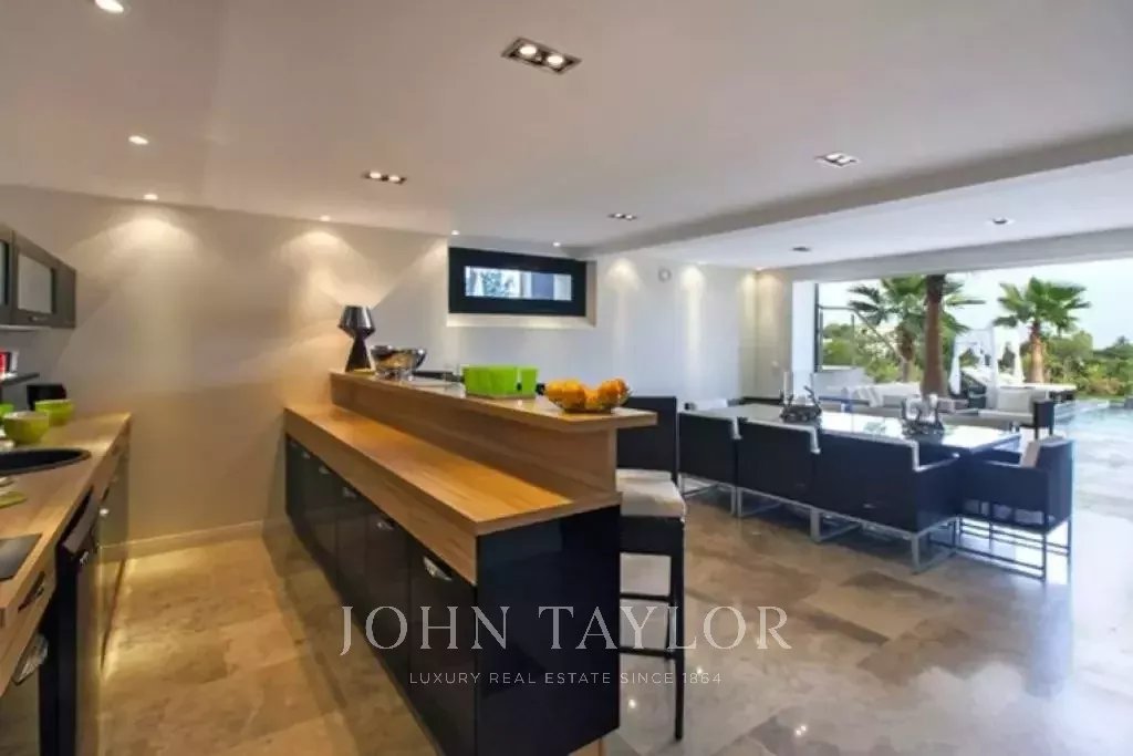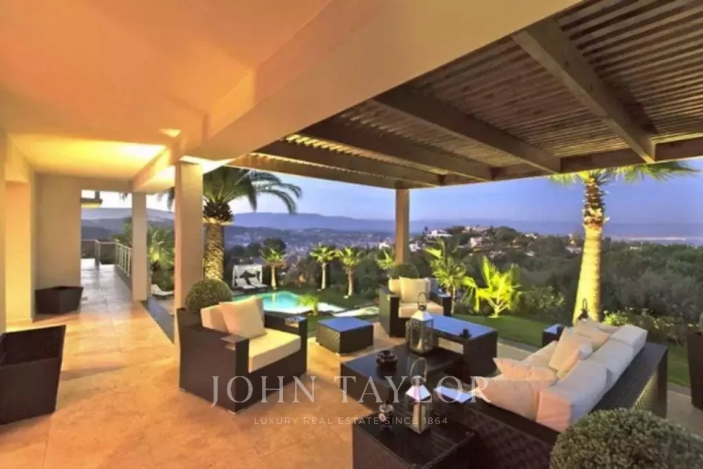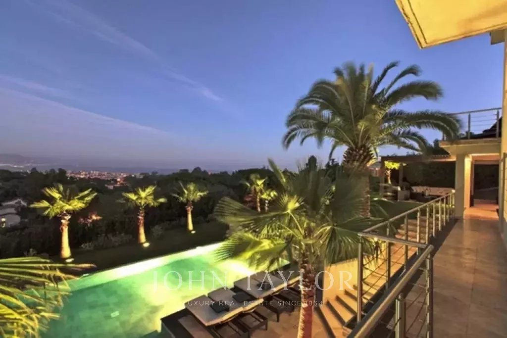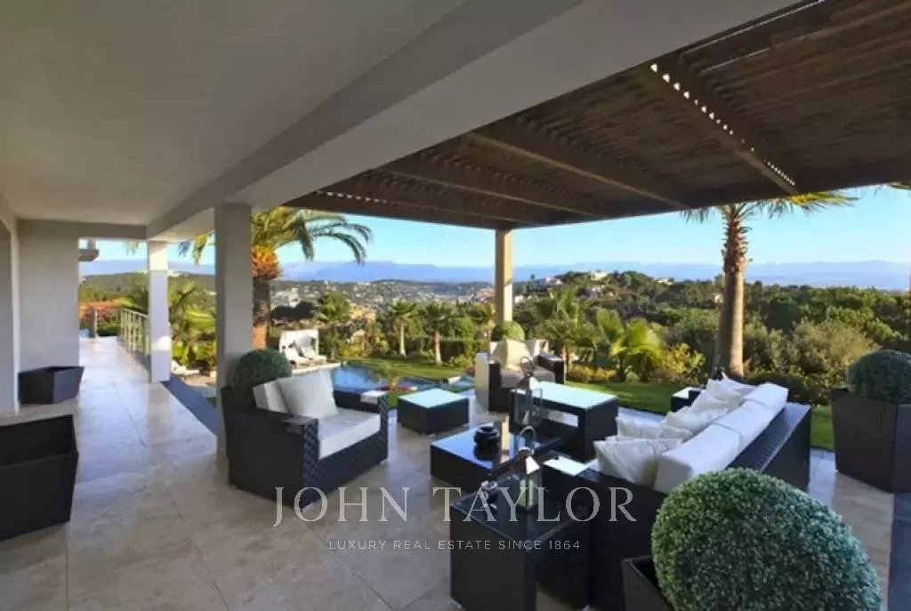Magnifique villa sur les hauteurs de Cannes, à une dizaine de minutes en voiture du centre ville. Entièrement rénovée, la villa au coeur d'un jardin de 2 200 m2 allie une décoration contemporaine des plus raffinées et une superbe vue mer panoramique sur toute la baie.