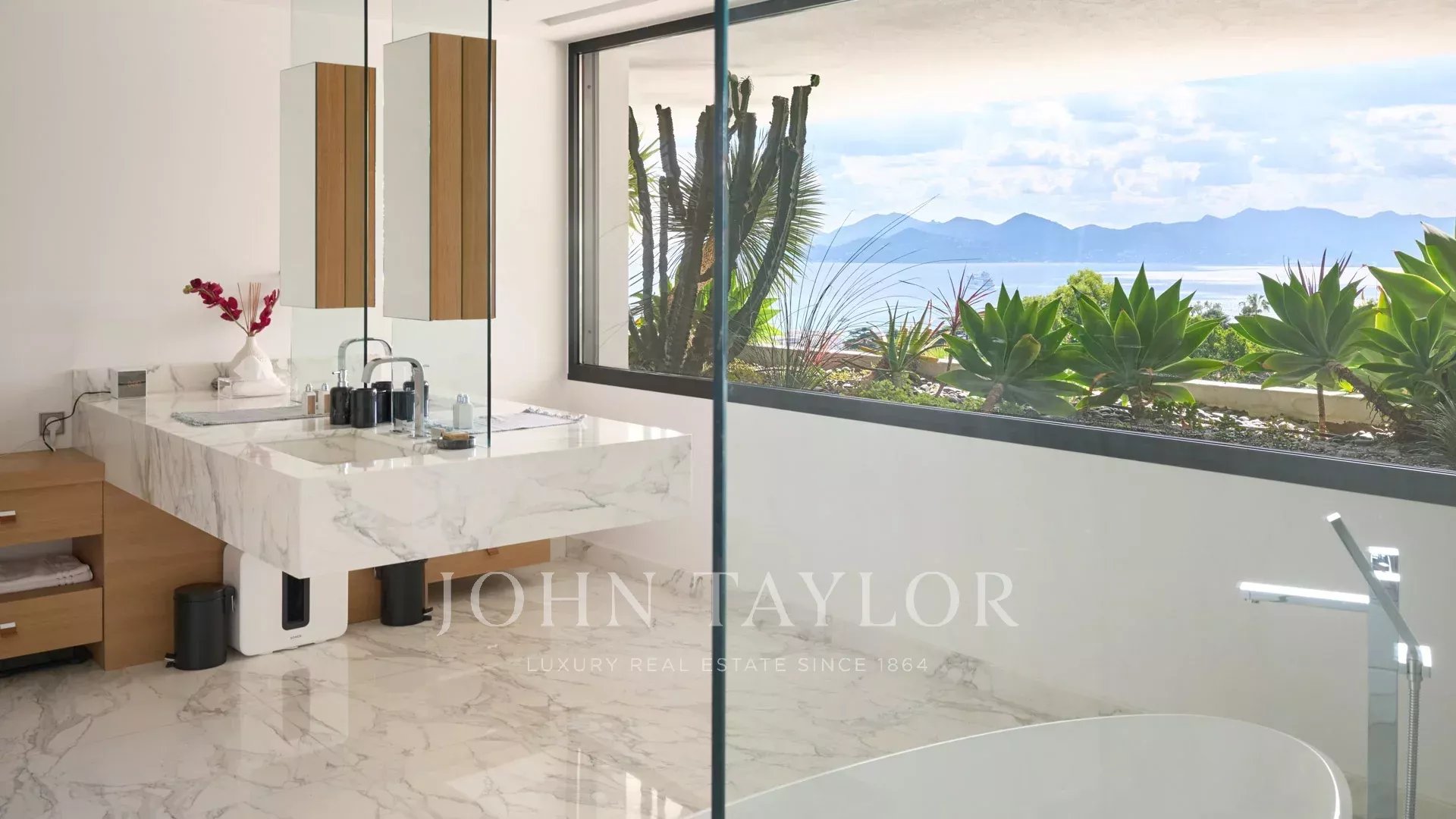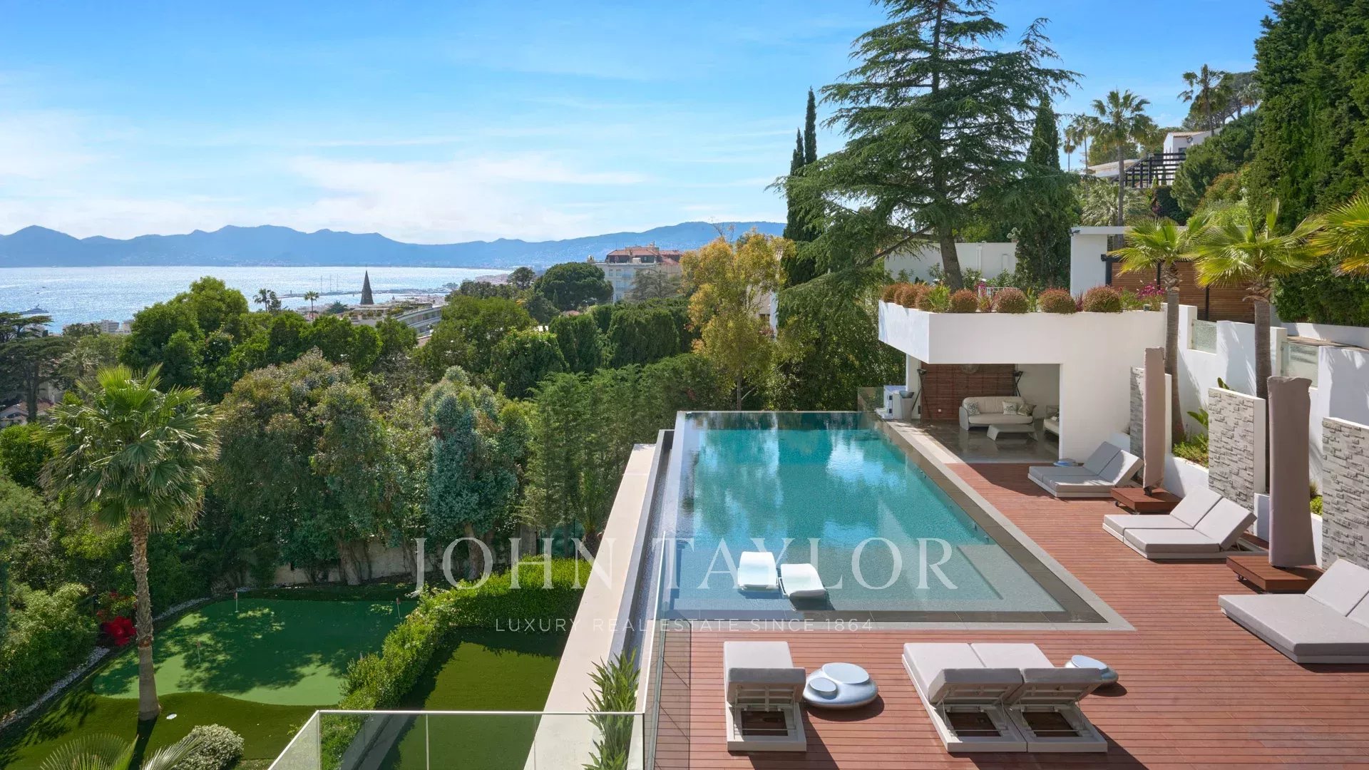 Située dans le quartier les plus prestigieux de la Californie, cette propriété neuve d'exception d'environ 1 400 m², sur un terrain d'environ 4 050 m², bénéficie une vue féerique sur la Baie de Cannes et les Iles de Lérins.