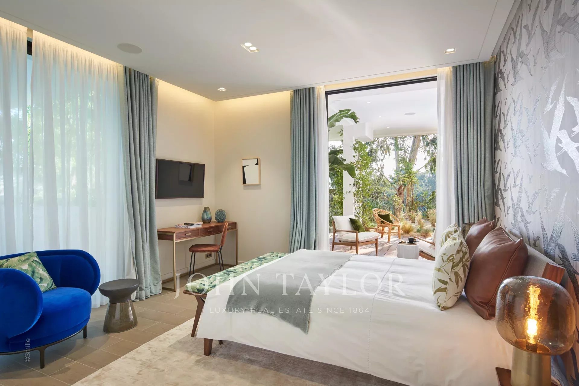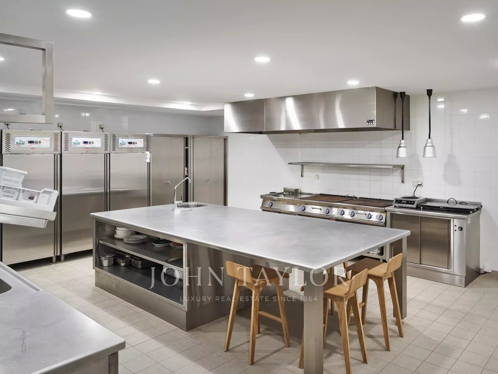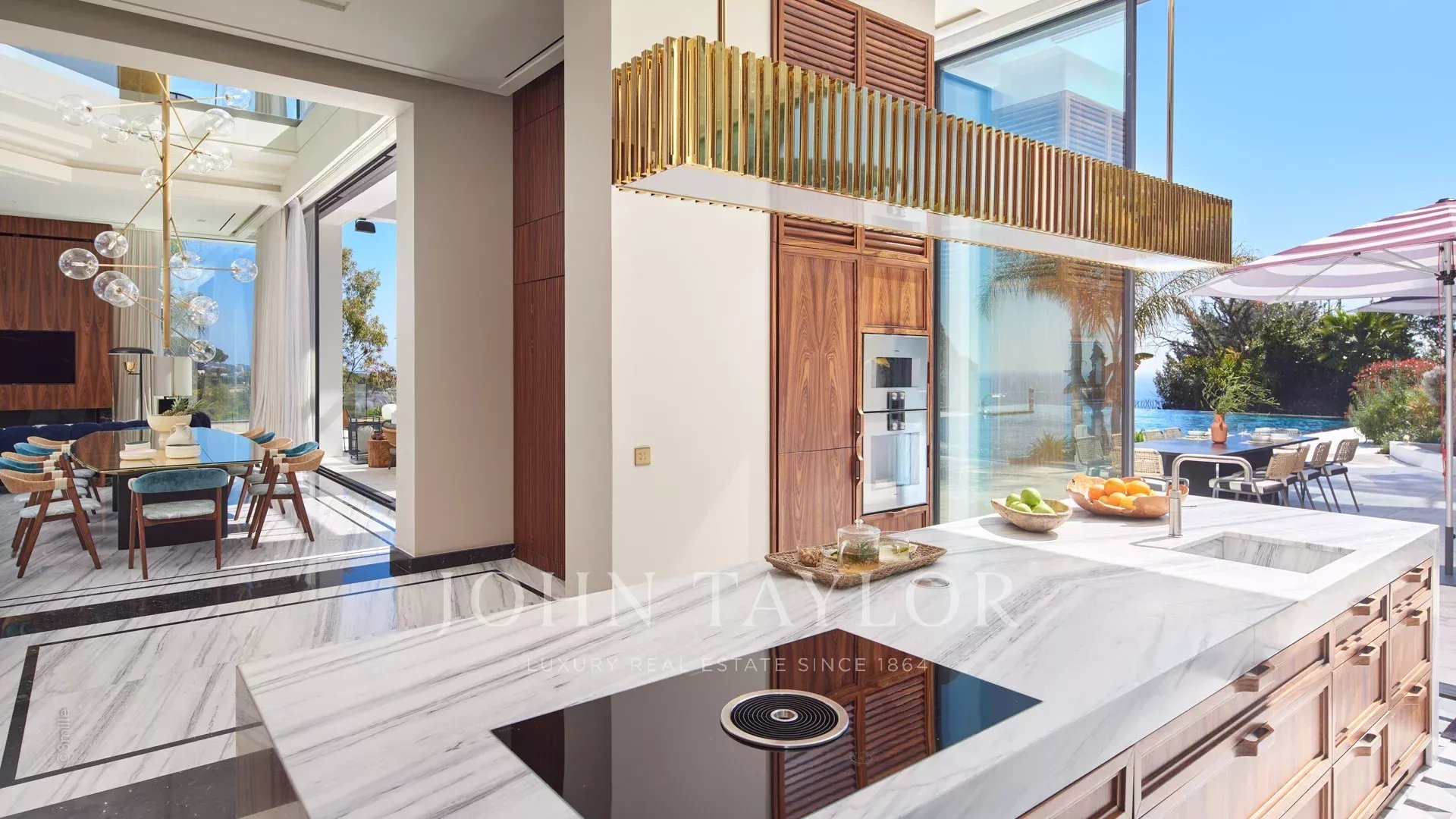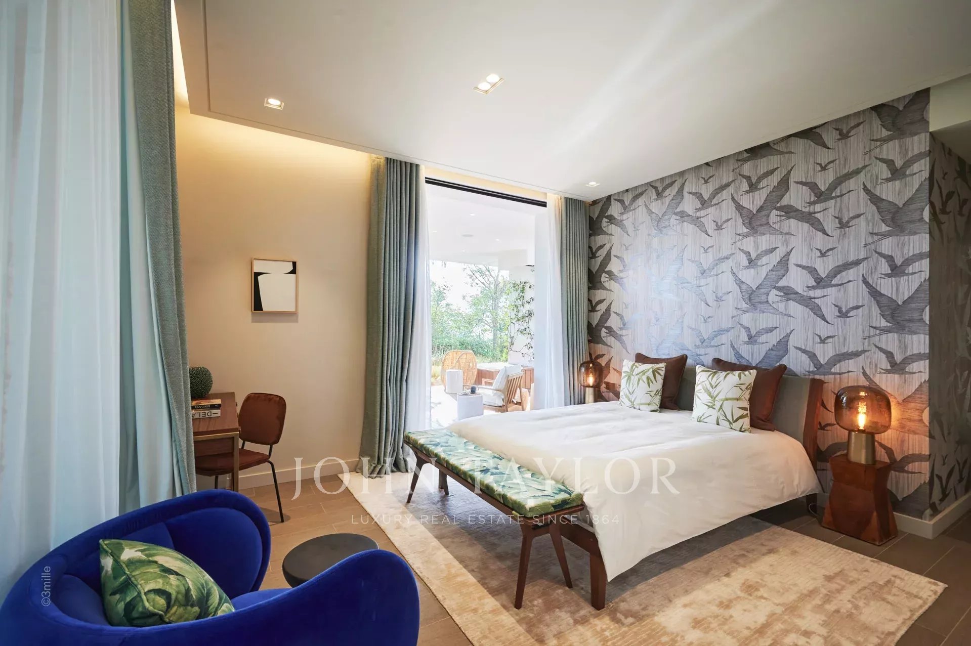 Les équipements de luxe sont omniprésents, tant à l'intérieur qu'à l'extérieur, avec une piscine chauffée de 18 mètres de long, des cheminées extérieures, des jardins paysagers, des transats, un salon extérieur et une cuisine équipée avec barbecue.