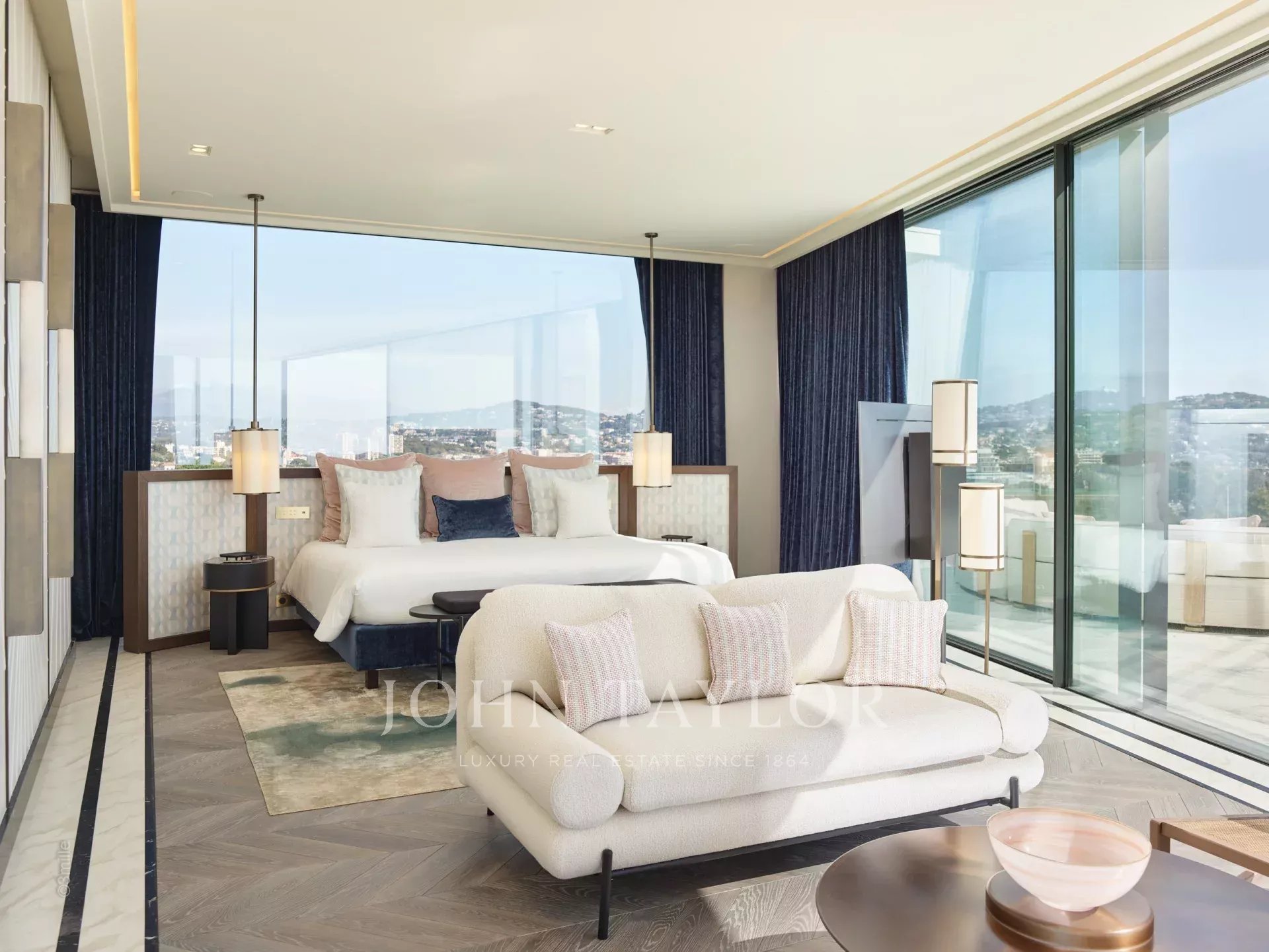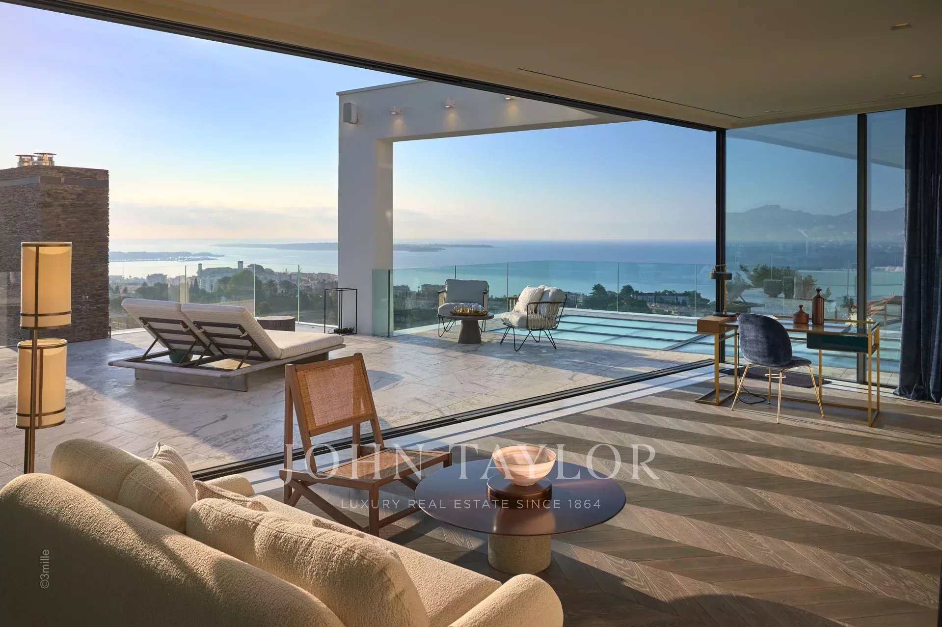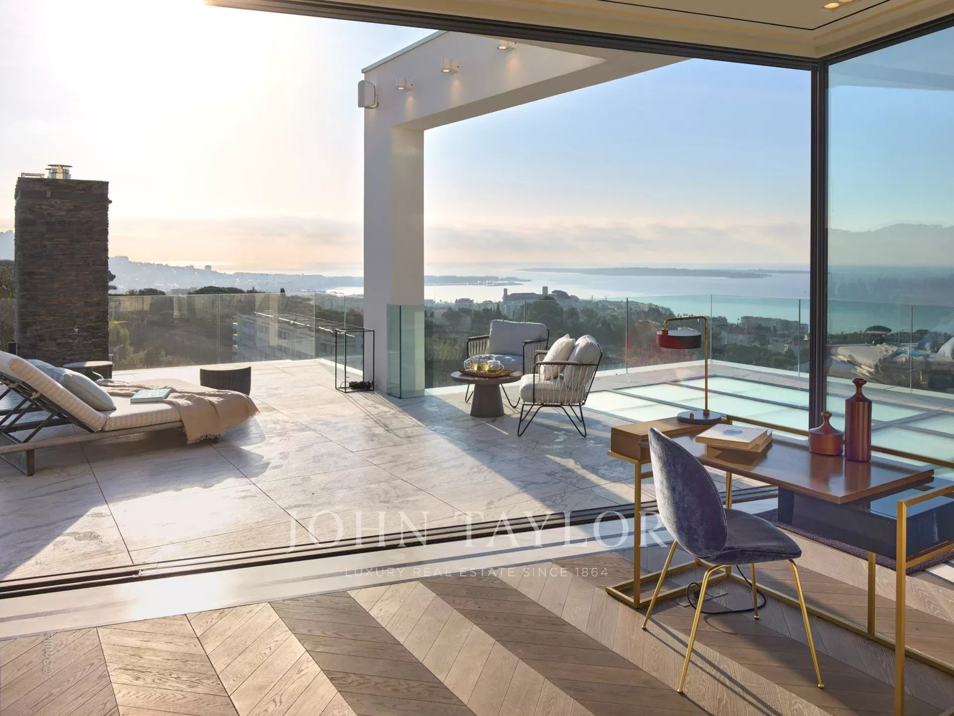 Le rooftop offre une vue panoramique imprenable sur la baie de Cannes, le Suquet et les Iles de Lérins, tandis que les équipements intérieurs comprennent un hammam, un sauna, un jacuzzi chauffé, une salle de fitness, une salle de projection/cinéma, un aquarium, un ascenseur panoramique, deux cheminées, une buanderie équipée, deux cuisines dont une professionnelle, une ligne internet dédiée, des iPad à disposition, un système centralisé de haut-parleurs, une vidéosurveillance et une alarme pour une tranquillité d'esprit absolue.