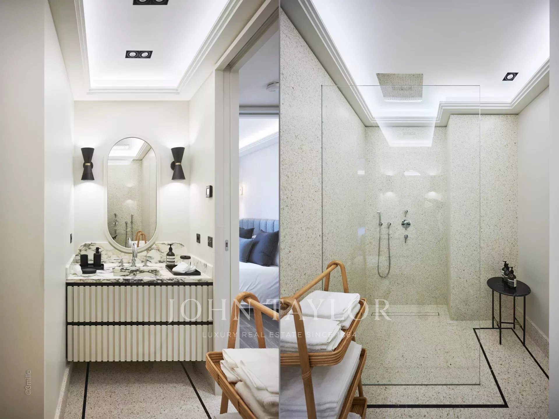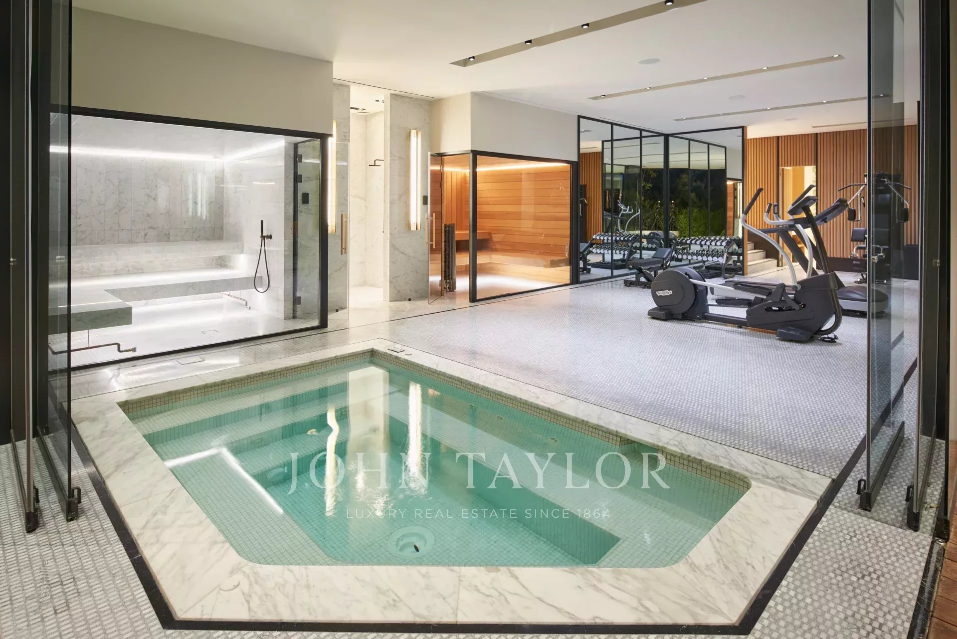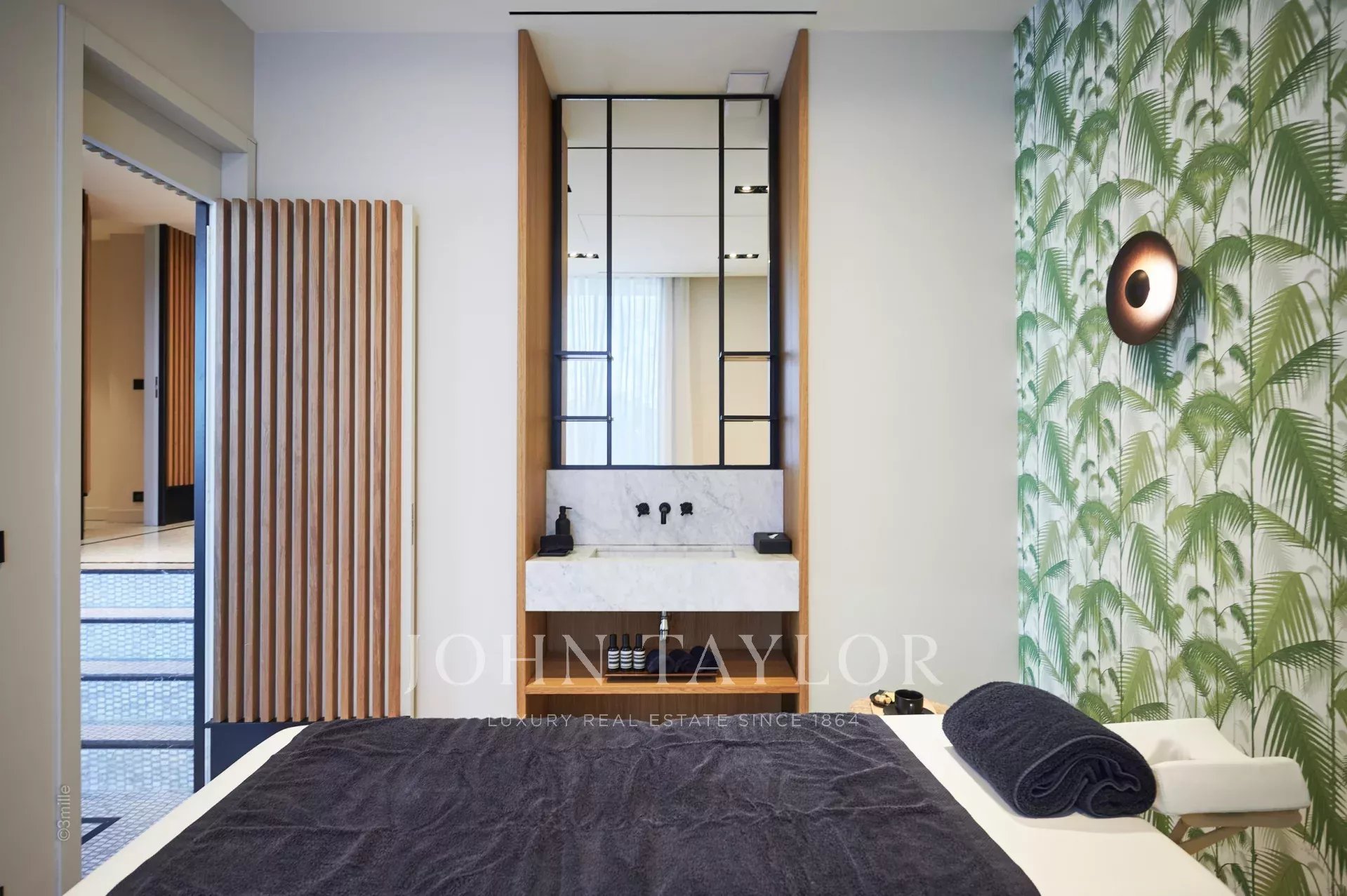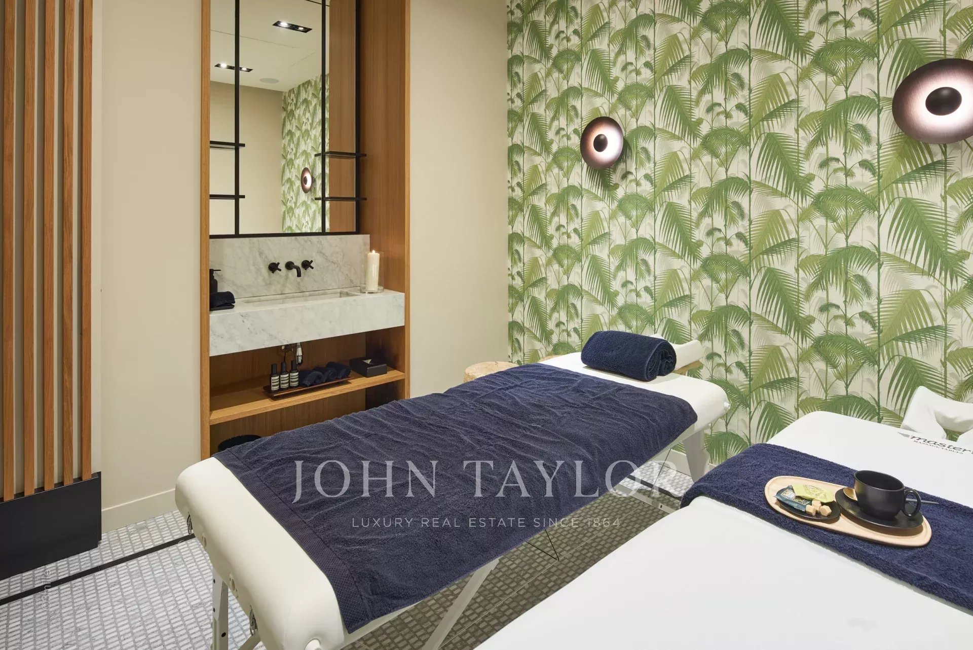 • Le rez-de-jardin comprend deux chambres en suite, deux chambres partageant une salle de bains, une salle de cinéma et un spa complet avec hammam, sauna, salle de massage et jacuzzi, ainsi qu'une salle de fitness pour les amateurs de bien-être.