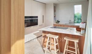 Cuisine entièrement équipée ouverte sur salle à manger et salon