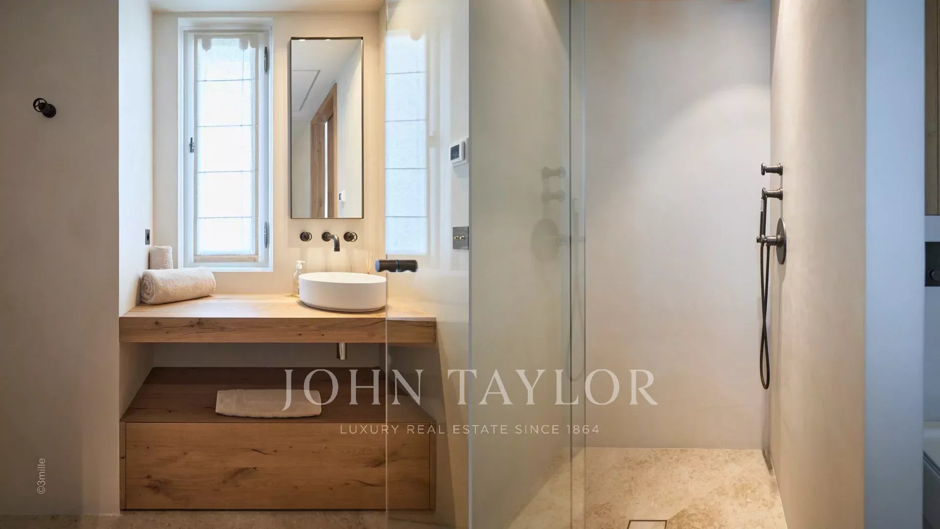 Dans un domaine privé sur les hauteurs de Cannes, élégante propriété, entièrement rénovée et climatisée, jouissant d'une belle vue sur la Baie de Cannes.