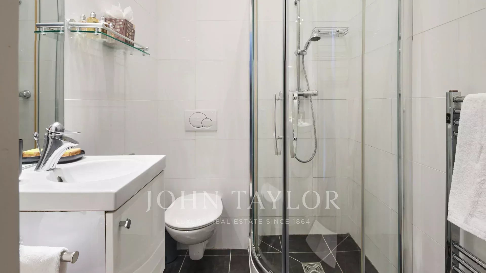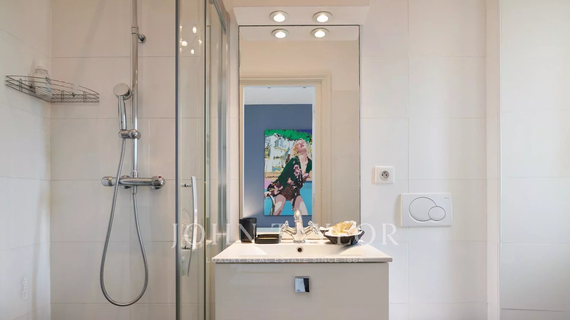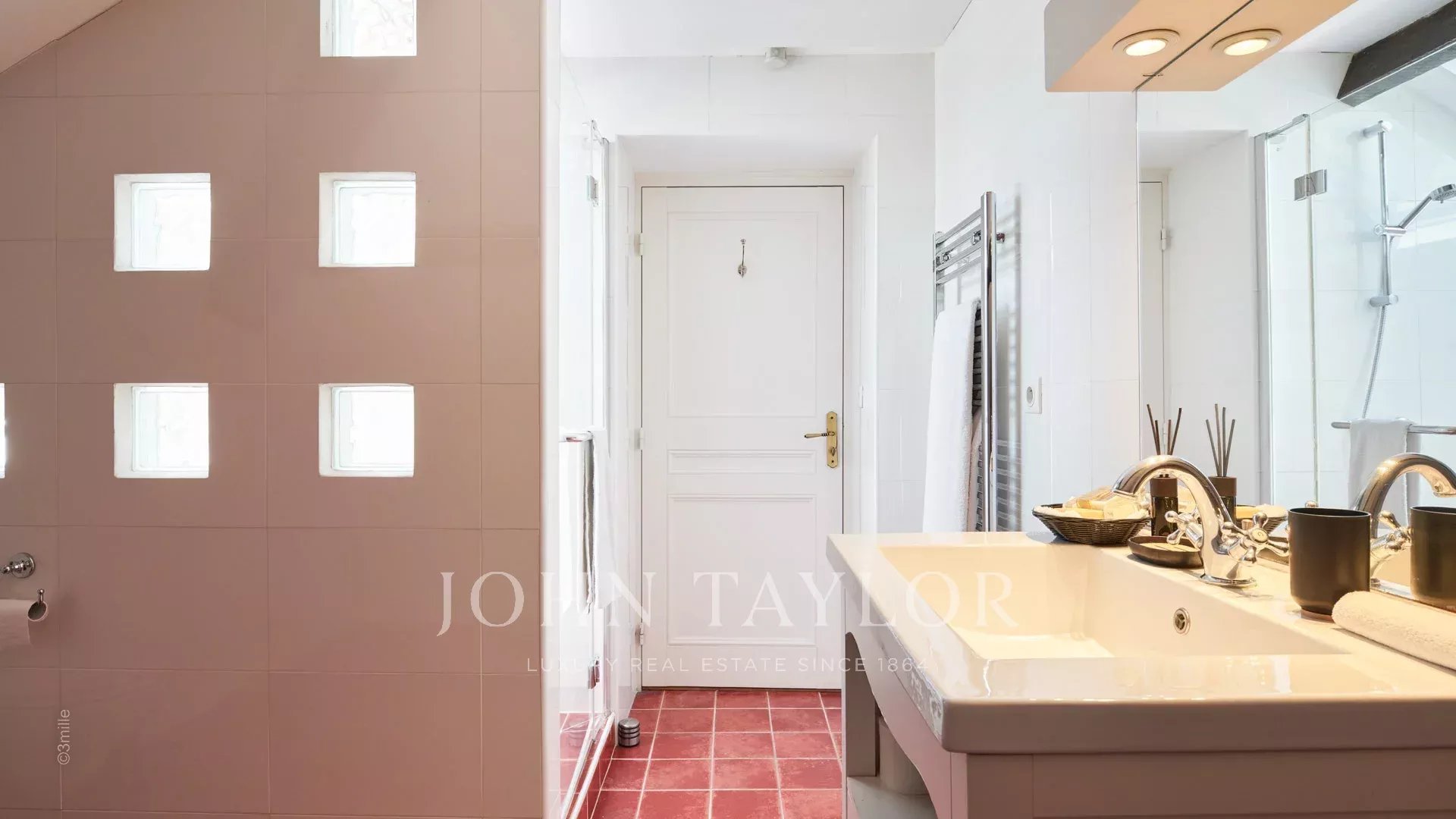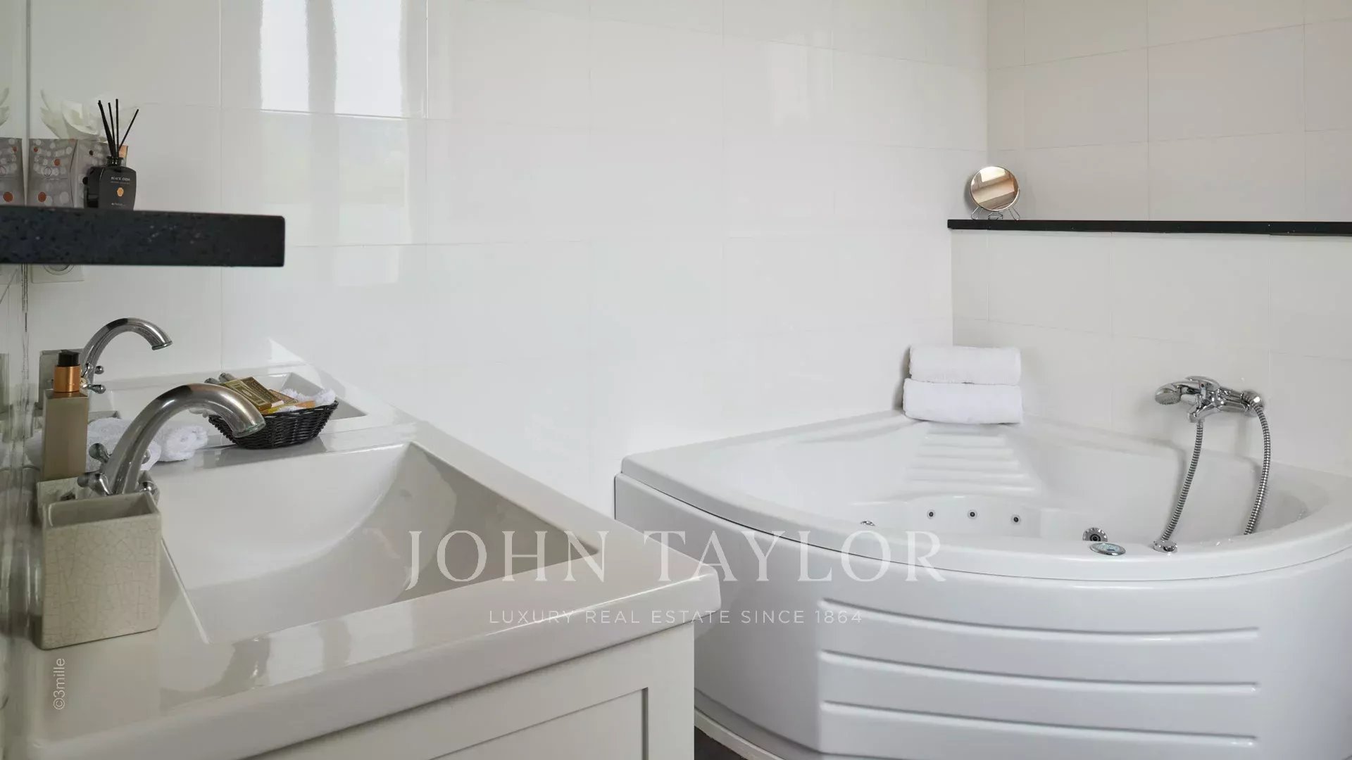 Elégant hall d’entrée menant à la triple réception, le tout s’ouvrant sur la terrasse de 60 m2 qui surplombe la piscine