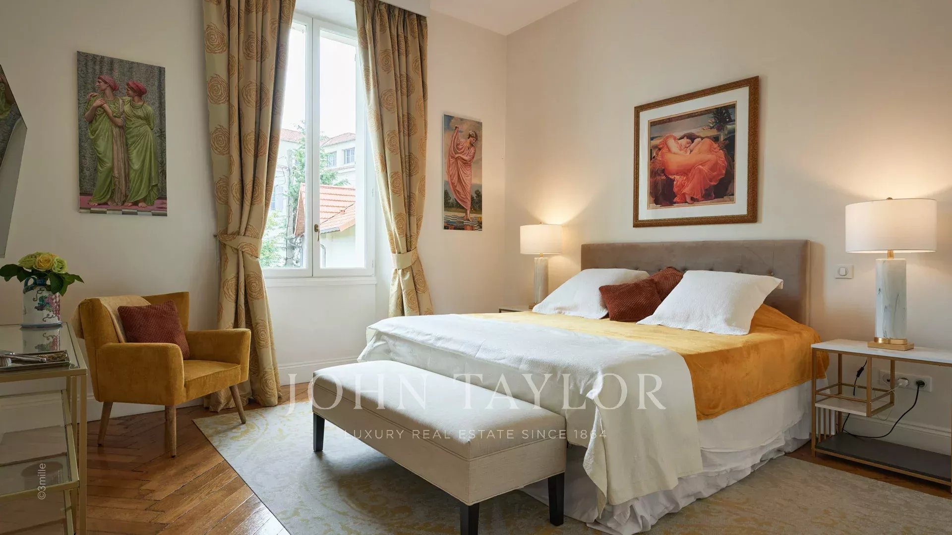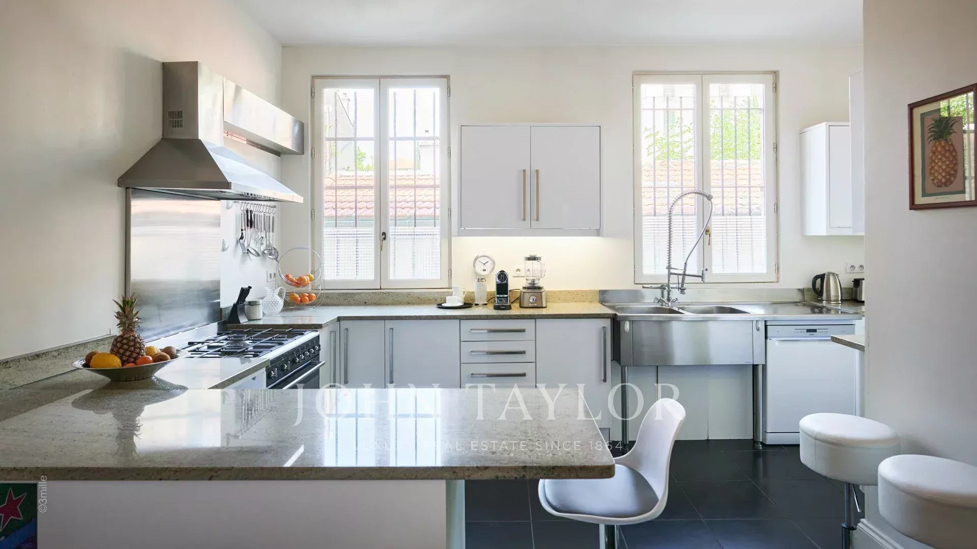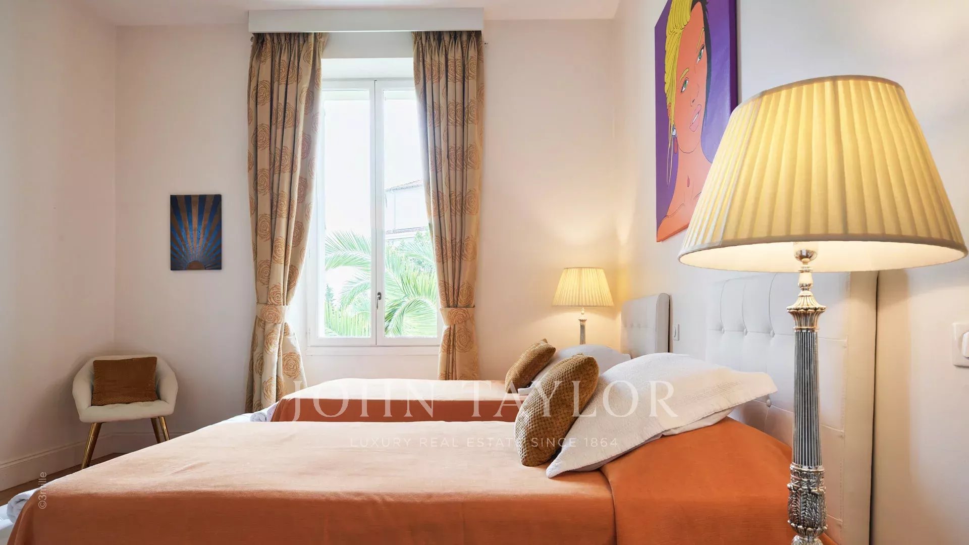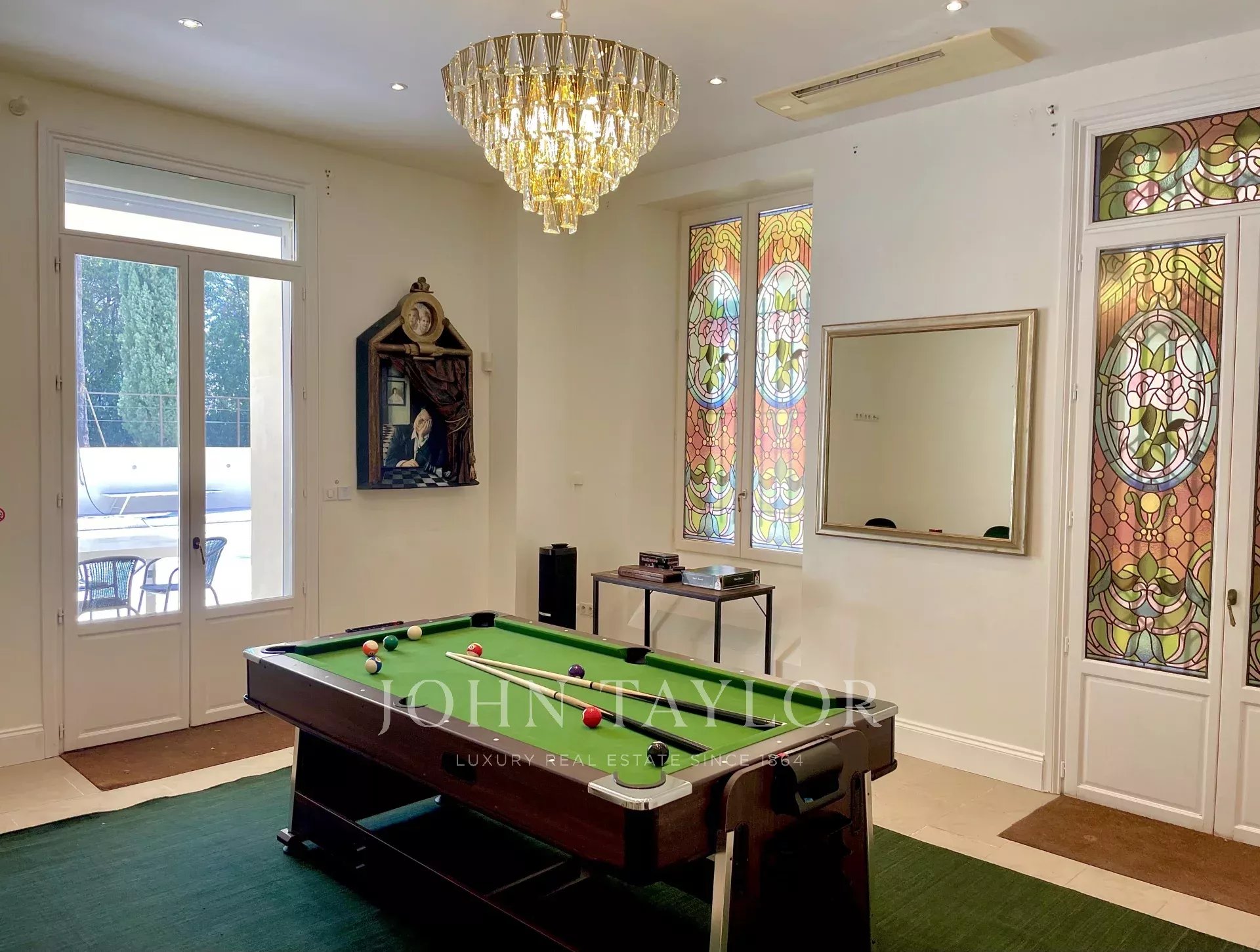Dans un quartier résidentiel, à deux pas du cœur de Cannes, 10 minutes à pied du Palais des Festivals, luxueuse villa « Belle Epoque » de 650 m2 habitables entièrement rénovés et climatisés, au cœur d’un parc de 2 500 m2.