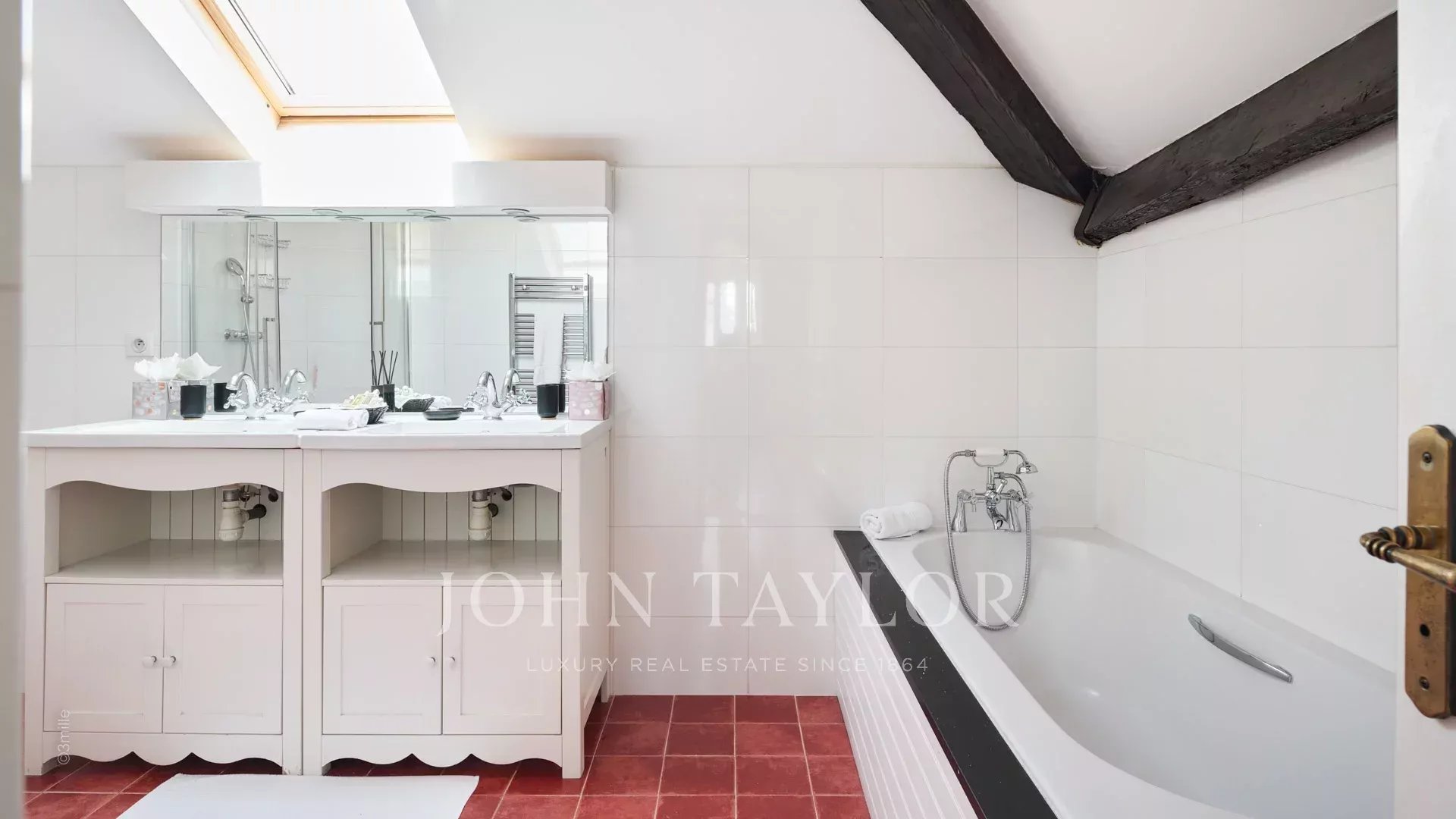 Chambre de Maître (lit 180 cm), TV / coffre-fort – Salle de bains / douche / WC