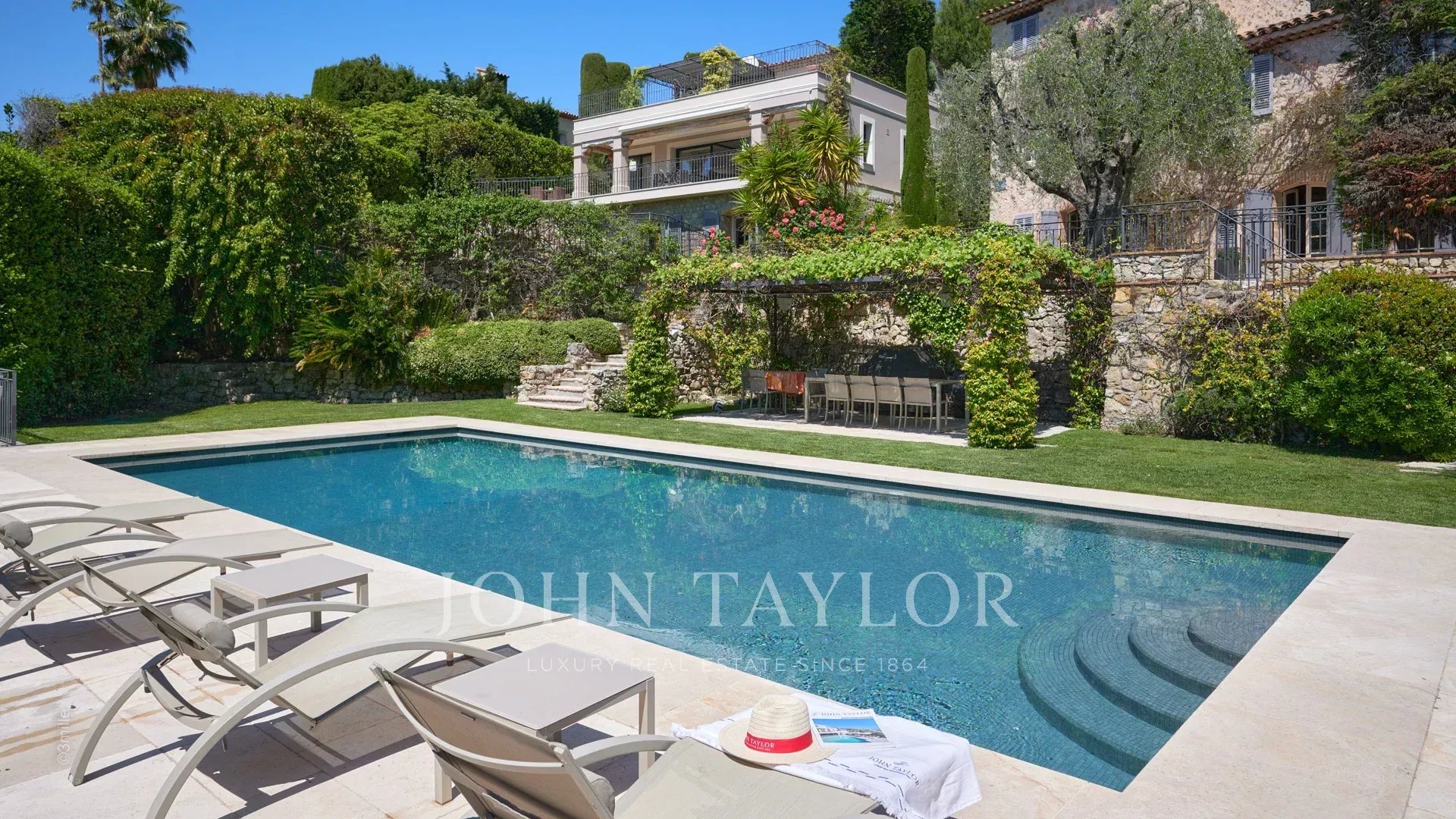 Proche du centre-ville de Cannes, superbe propriété composée d’une ancienne bastide et d’une maison d’invités au cœur d’un terrain de 2 500 m2.