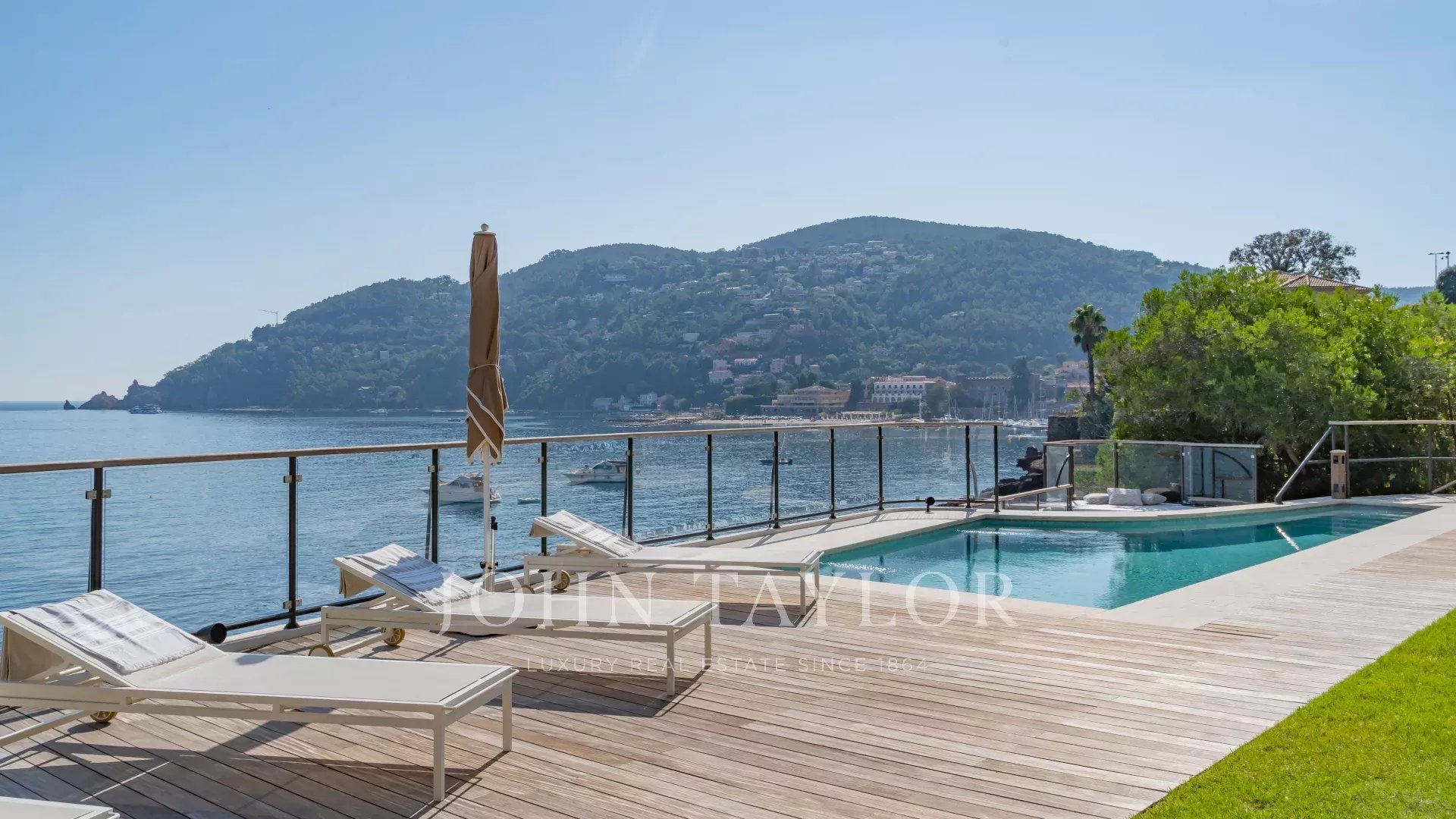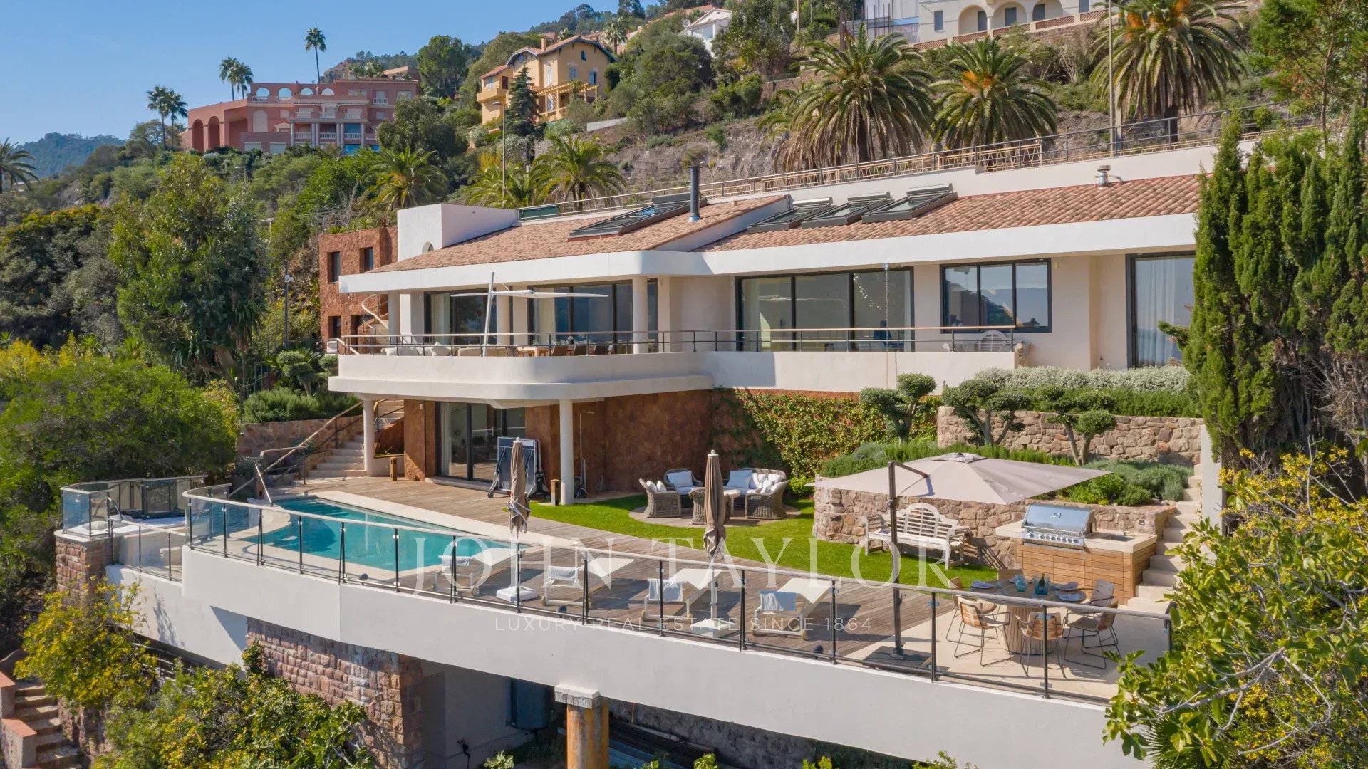 La propriété offre une vue spectaculaire sur la mer, les îles de Lérins, les plages de l'Aiguille, le Port de la Rague et l'Estérel.