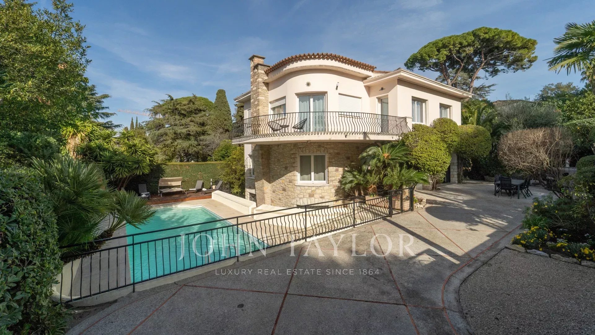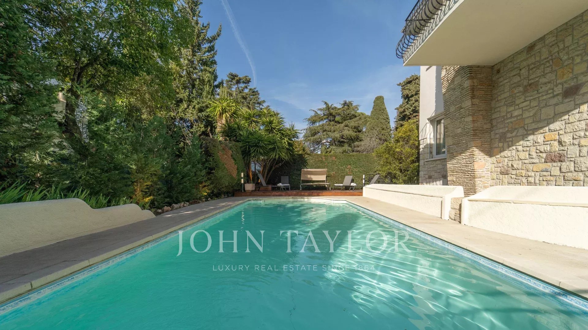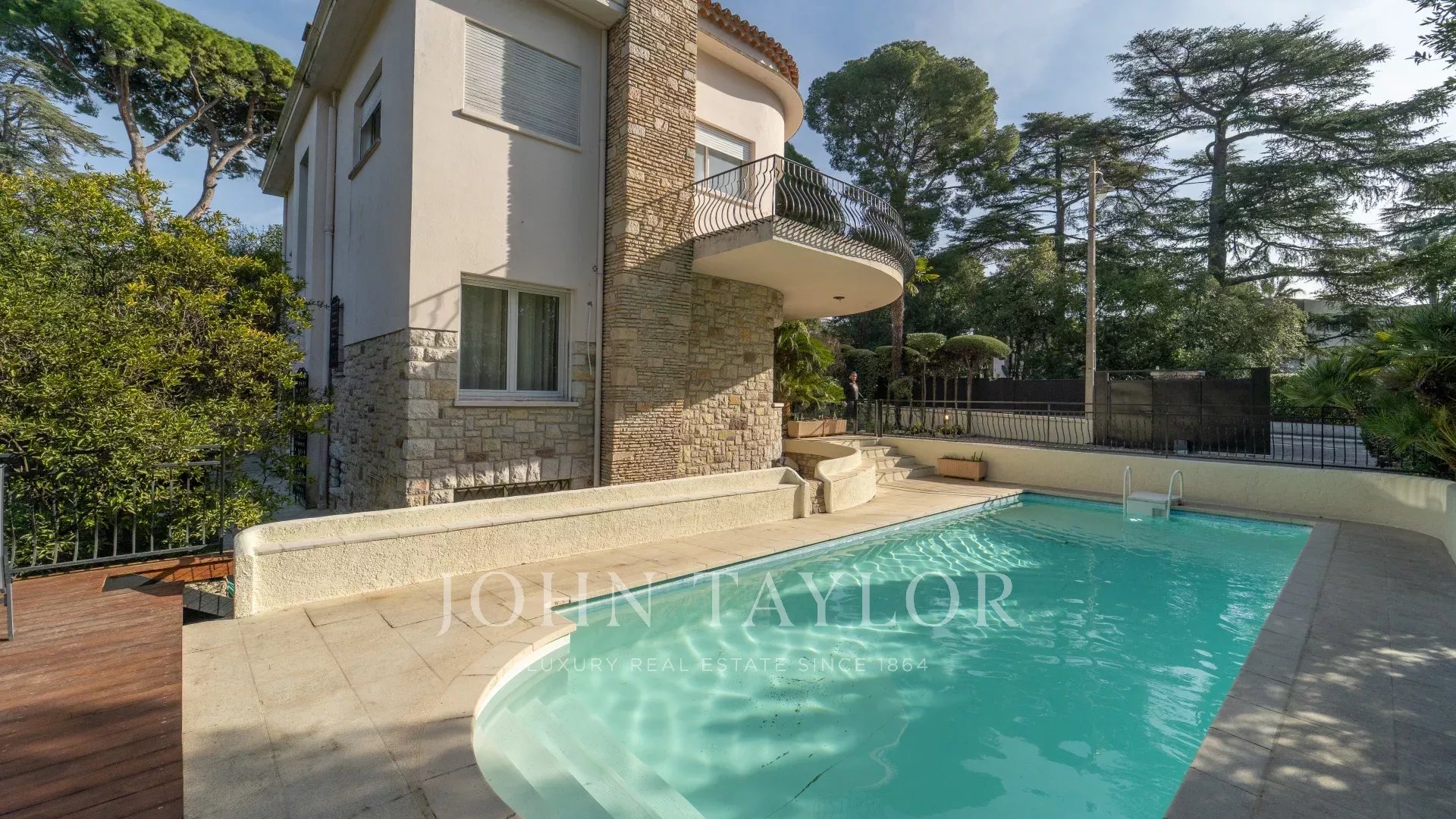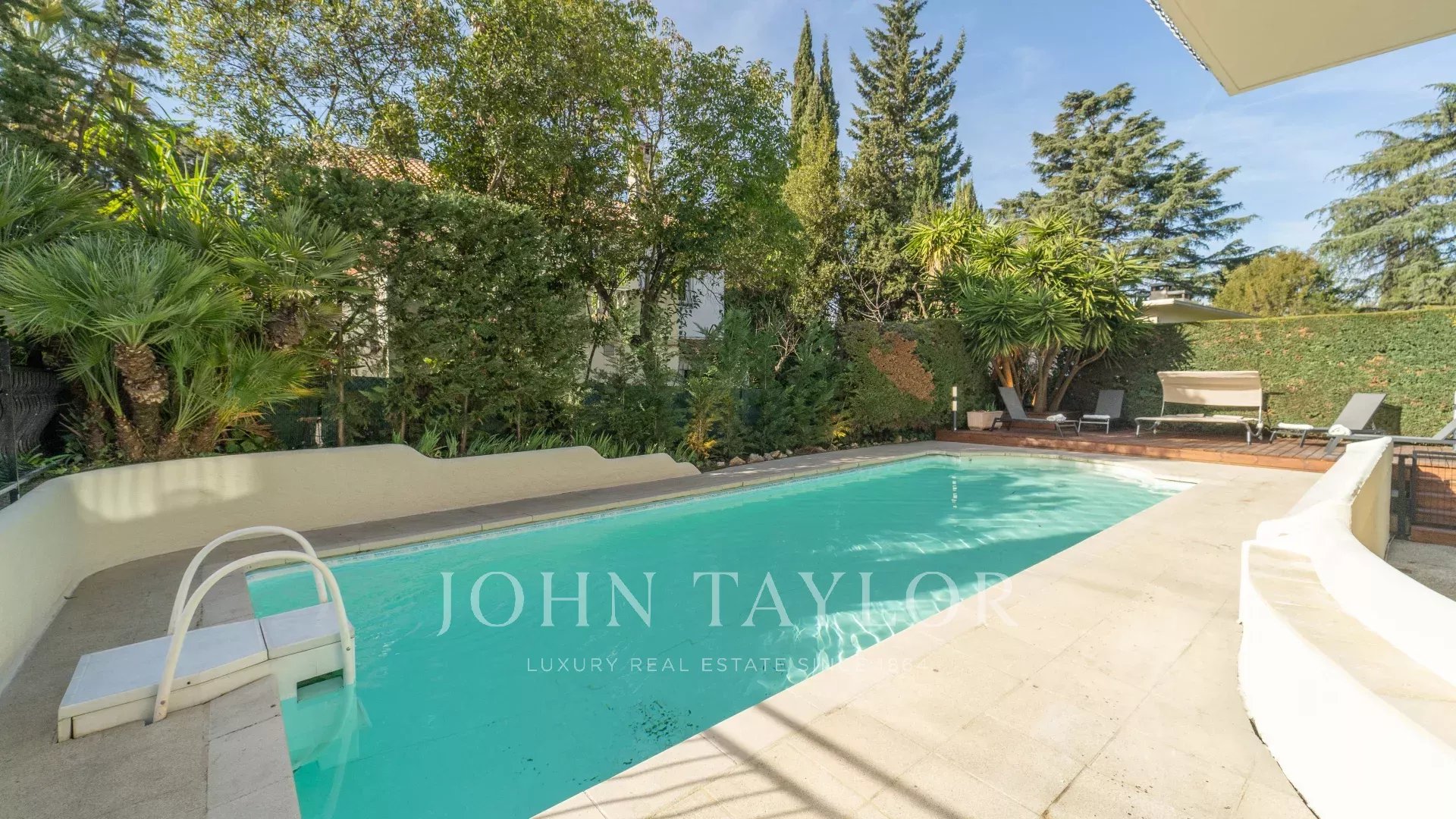 Dans le quartier résidentiel de Bénéfiat, proche du centre-ville de Cannes, villa néo-provençale de 200 m2 récemment rénovée et entièrement climatisée.