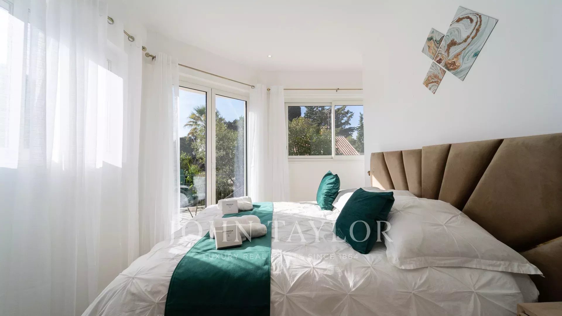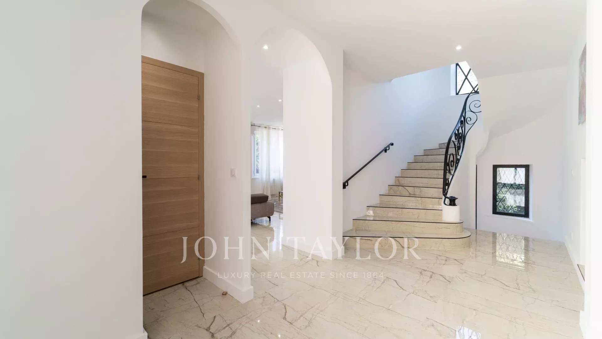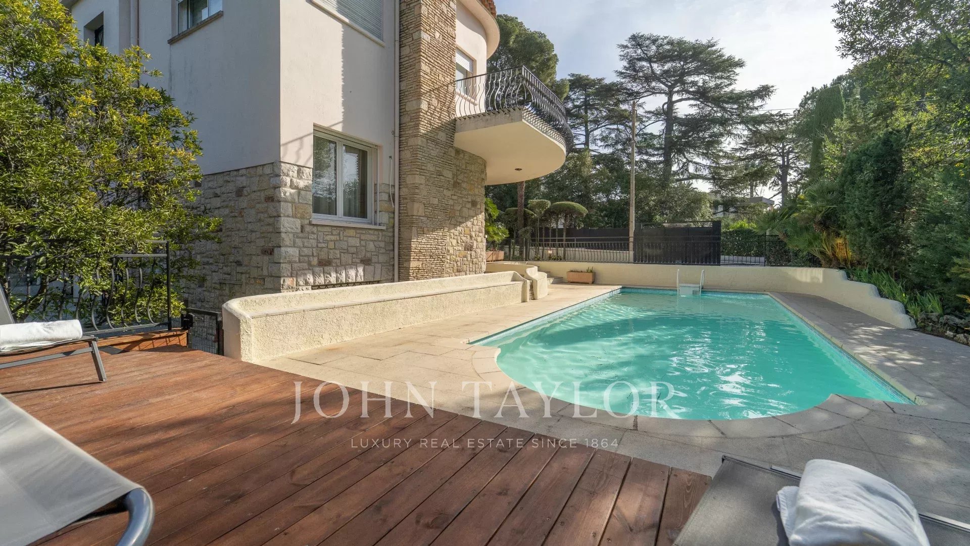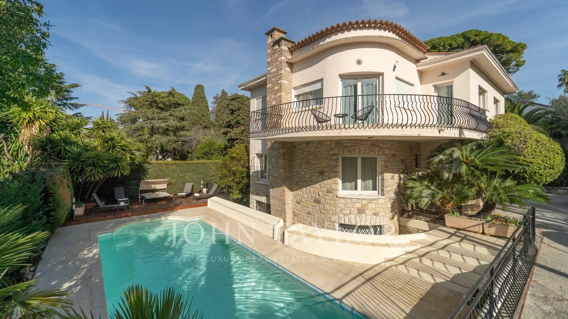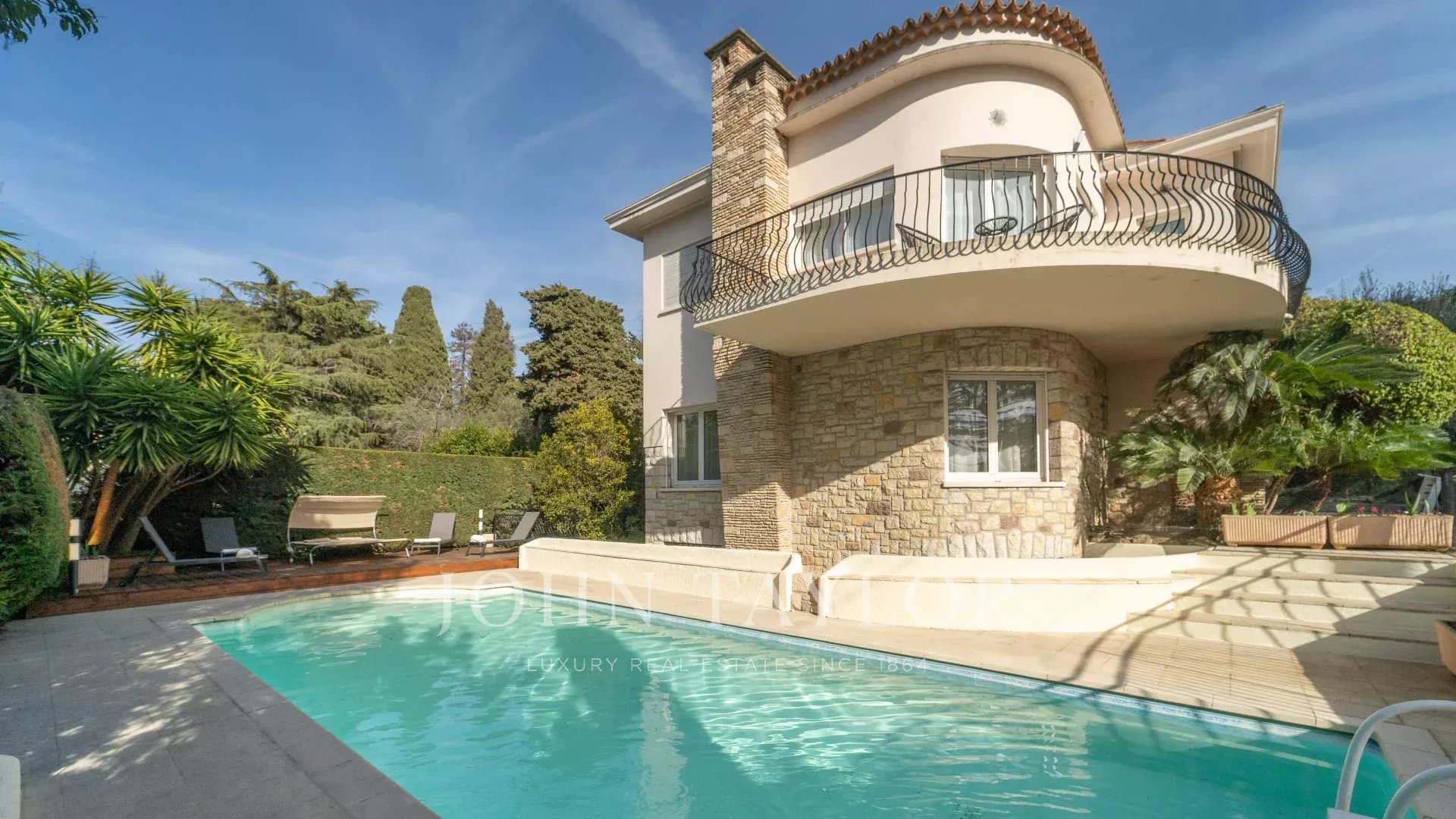 Dans le quartier résidentiel de Bénéfiat, proche du centre-ville de Cannes, villa néo-provençale de 200 m2 récemment rénovée et entièrement climatisée.