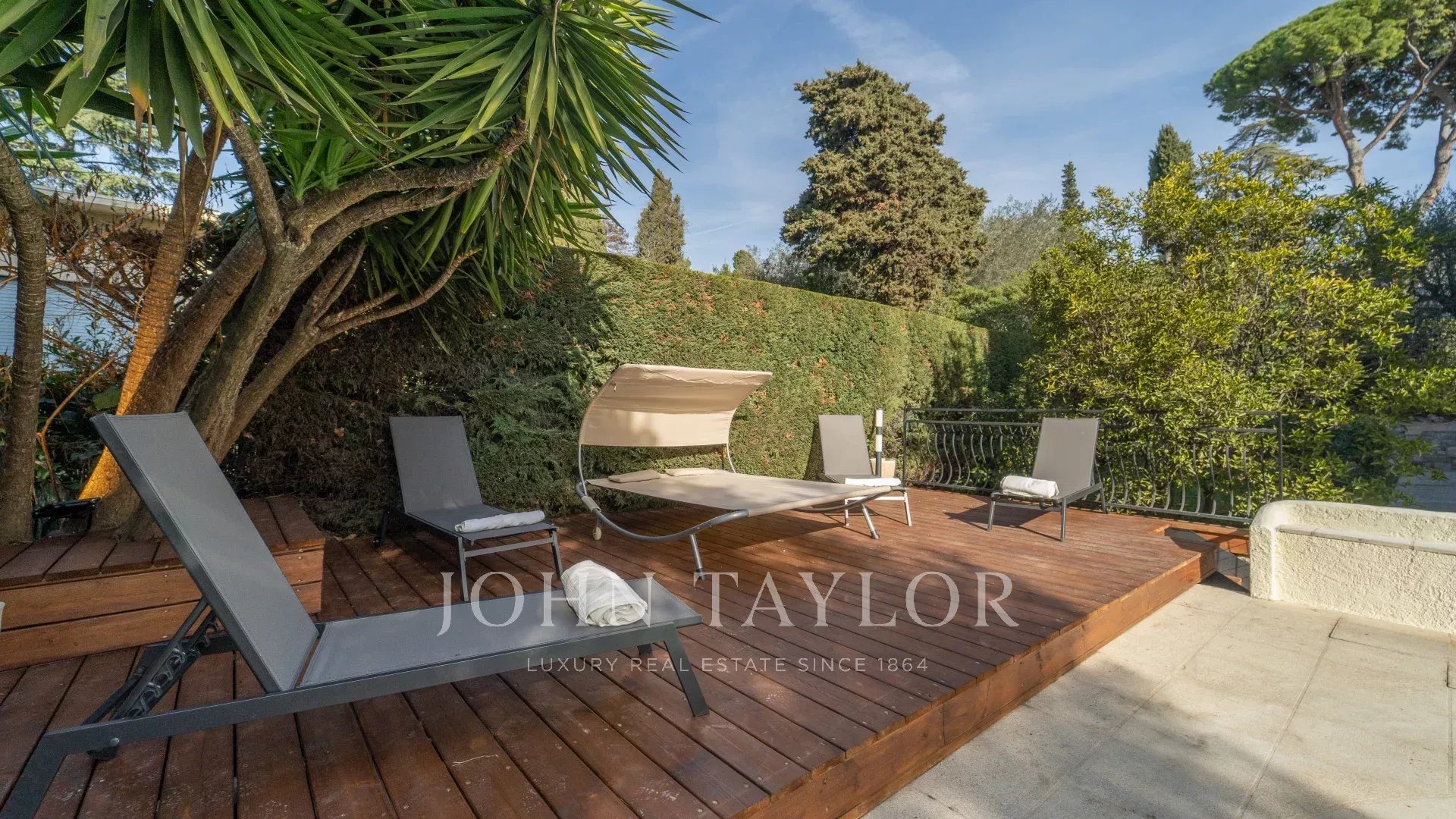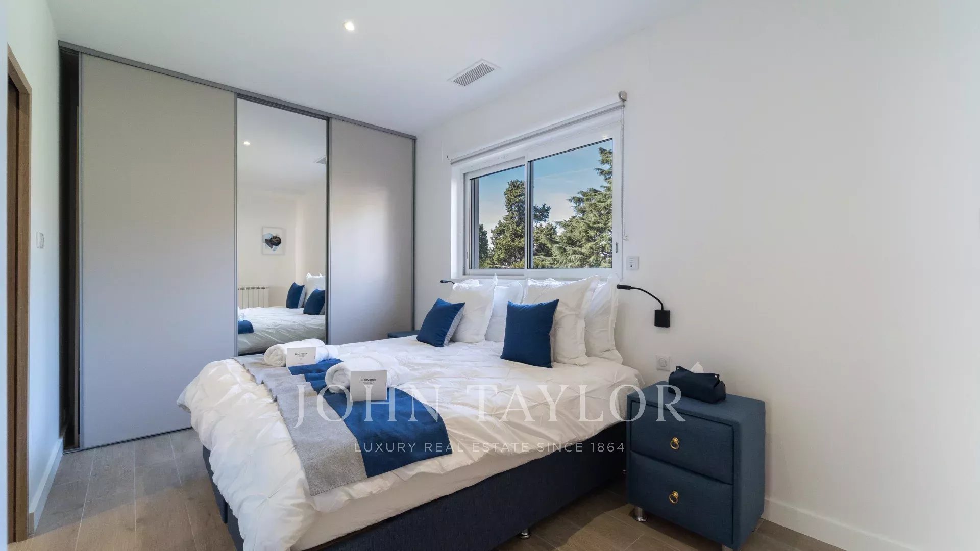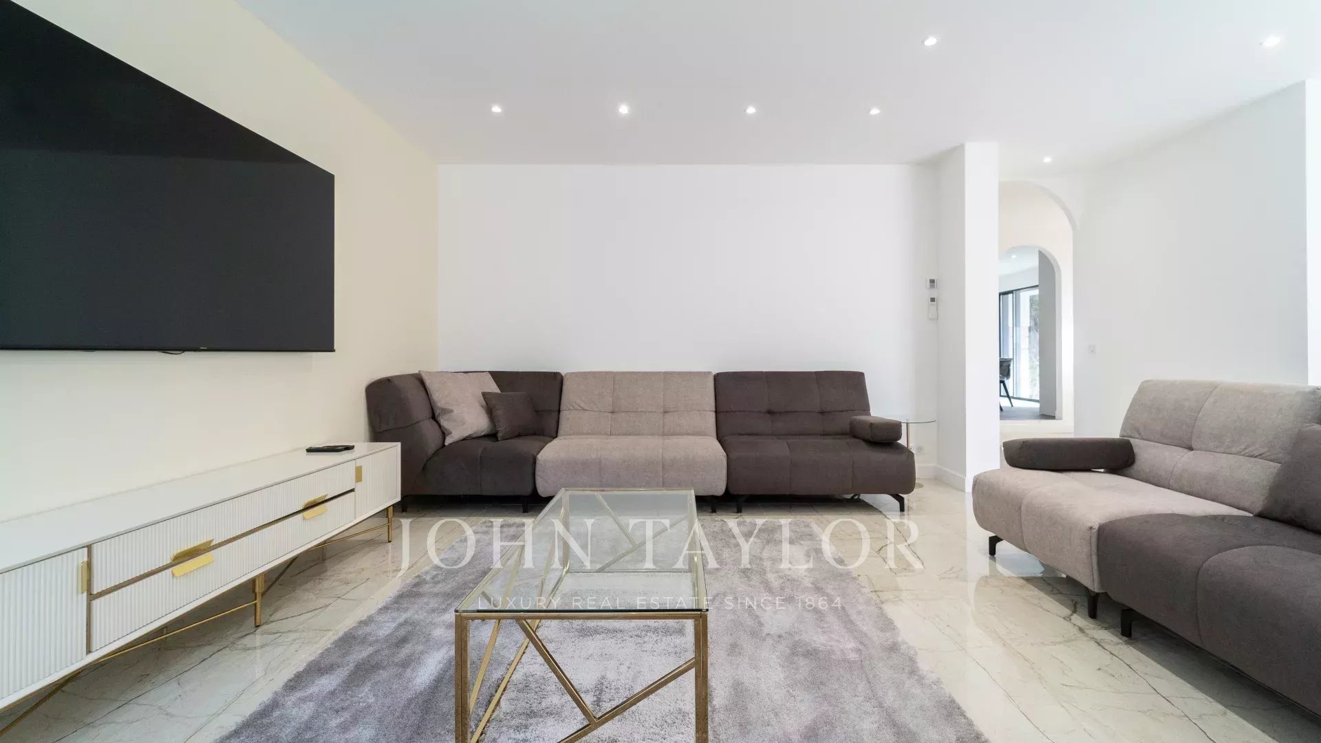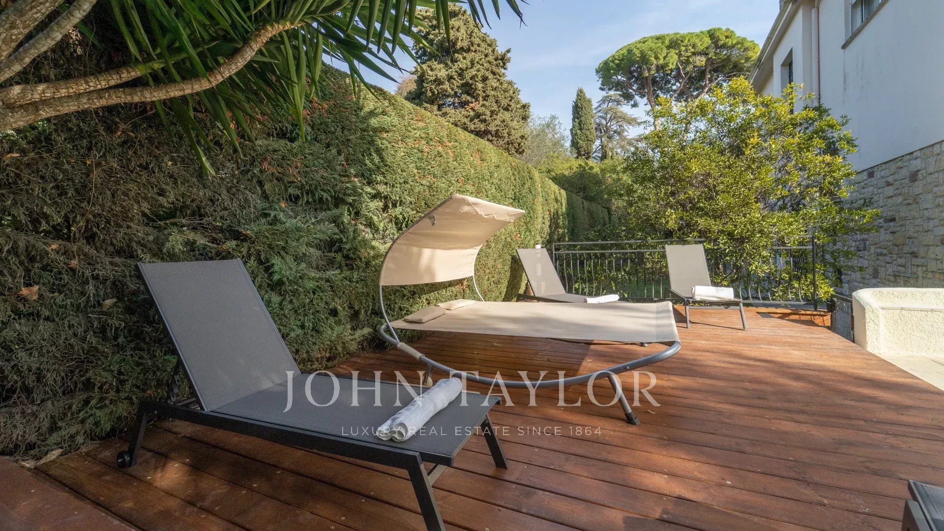 Dans le quartier résidentiel de Bénéfiat, proche du centre-ville de Cannes, villa néo-provençale de 200 m2 récemment rénovée et entièrement climatisée.