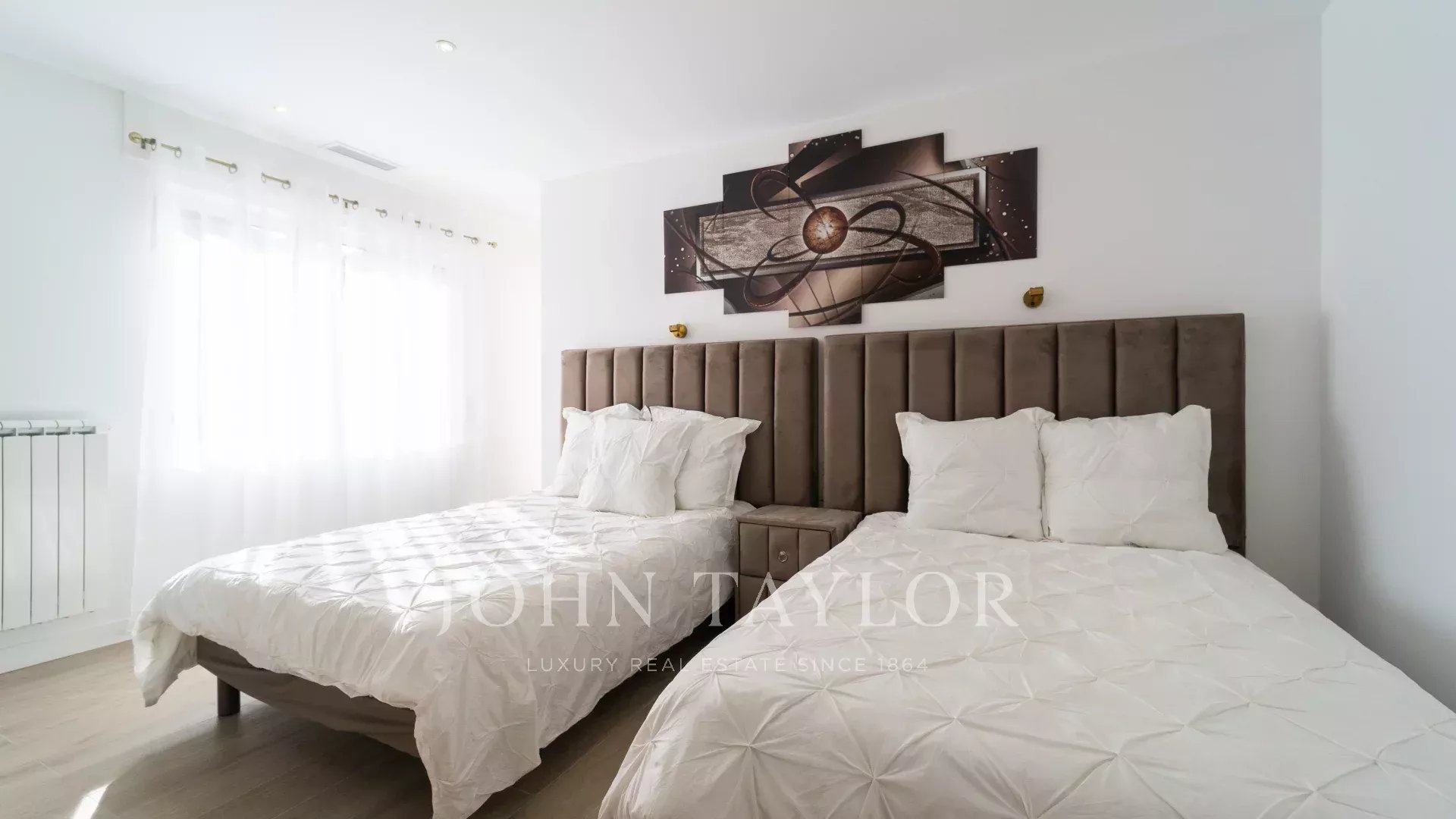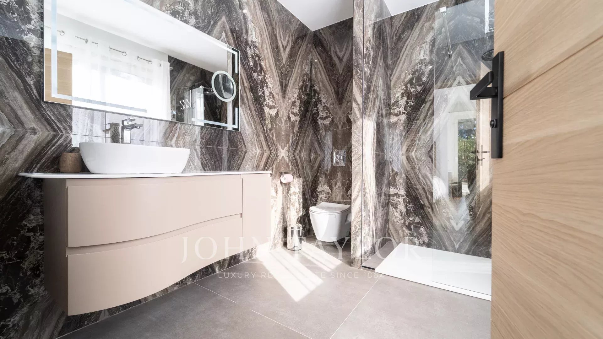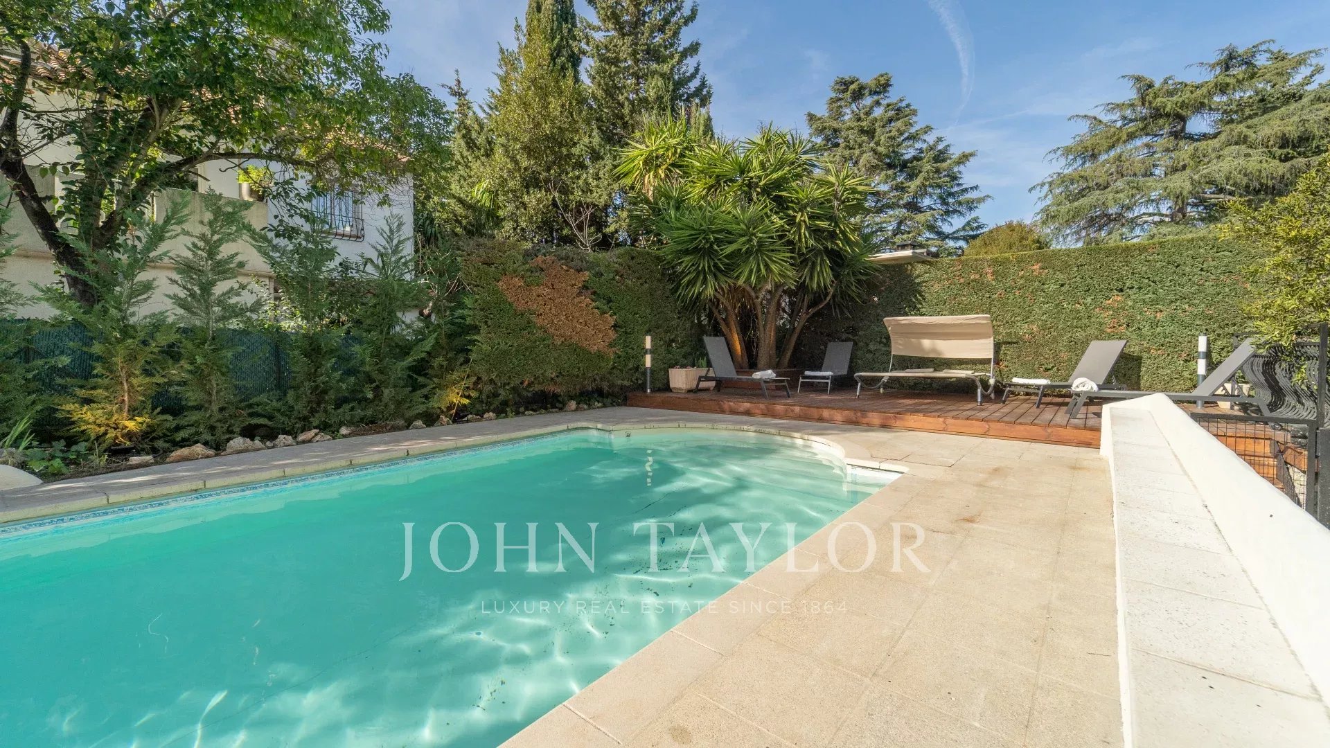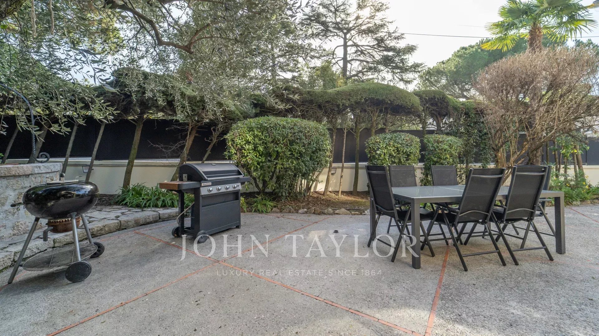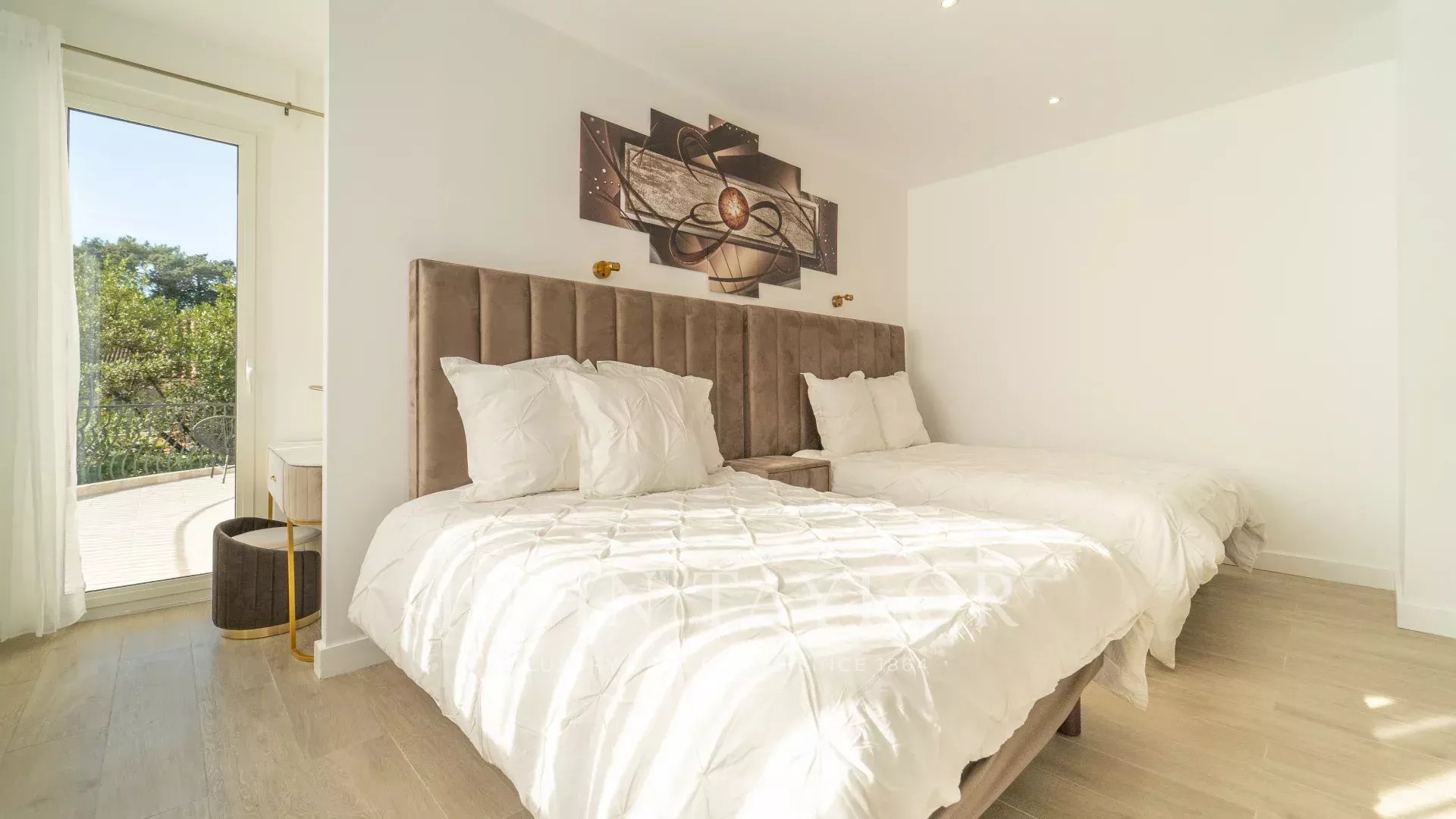Dans le quartier résidentiel de Bénéfiat, proche du centre-ville de Cannes, villa néo-provençale de 200 m2 récemment rénovée et entièrement climatisée.