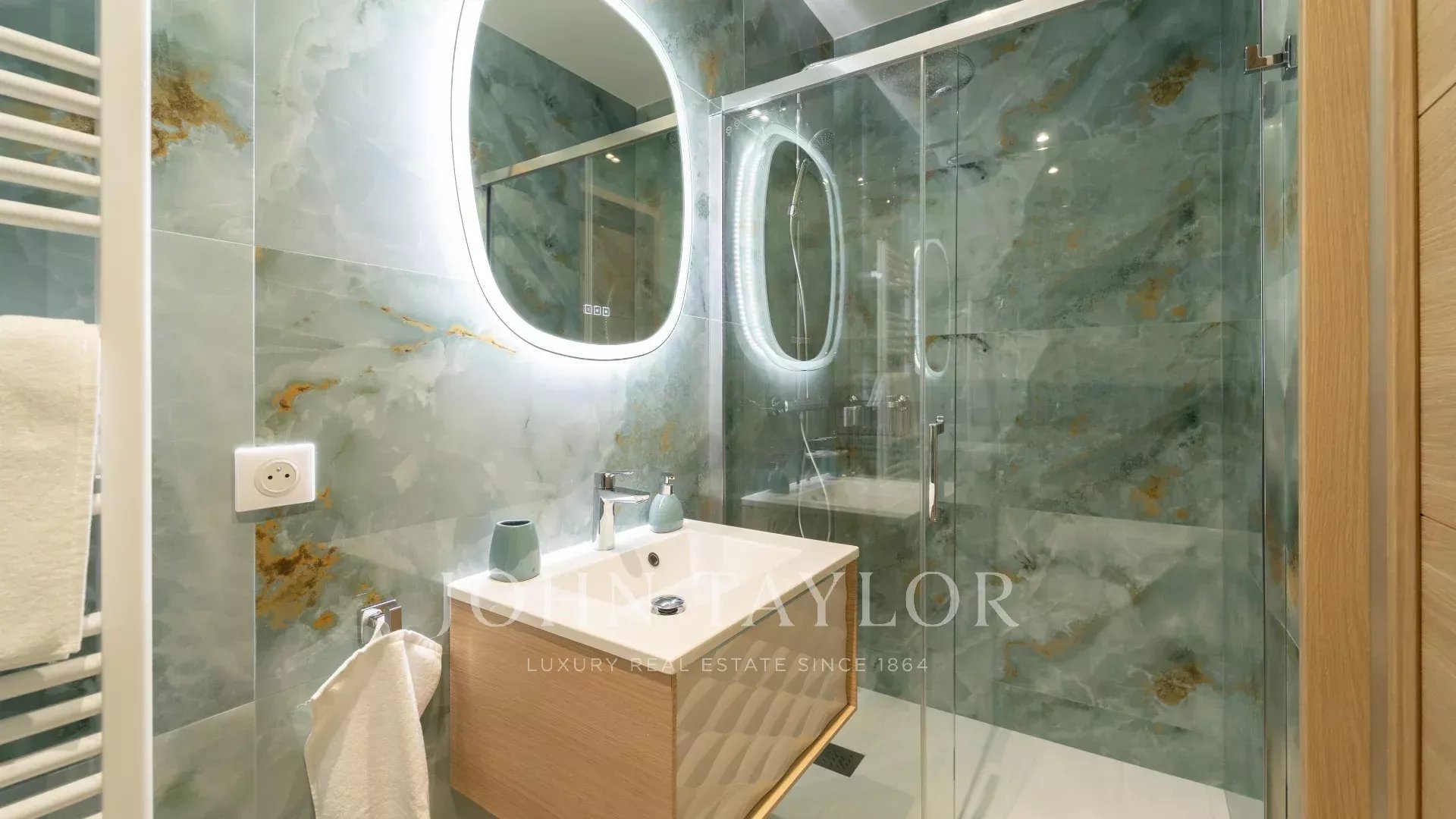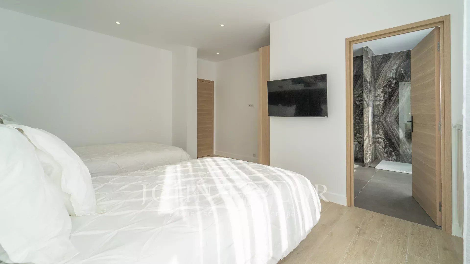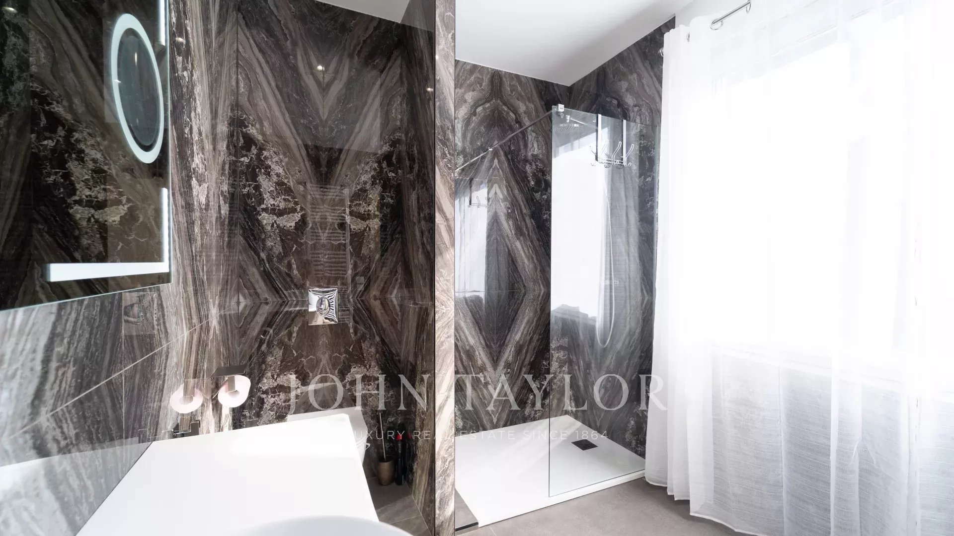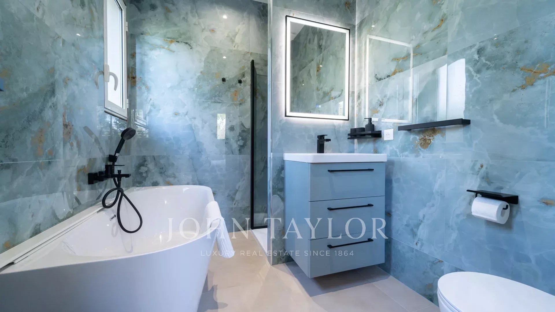 Dans le quartier résidentiel de Bénéfiat, proche du centre-ville de Cannes, villa néo-provençale de 200 m2 récemment rénovée et entièrement climatisée.