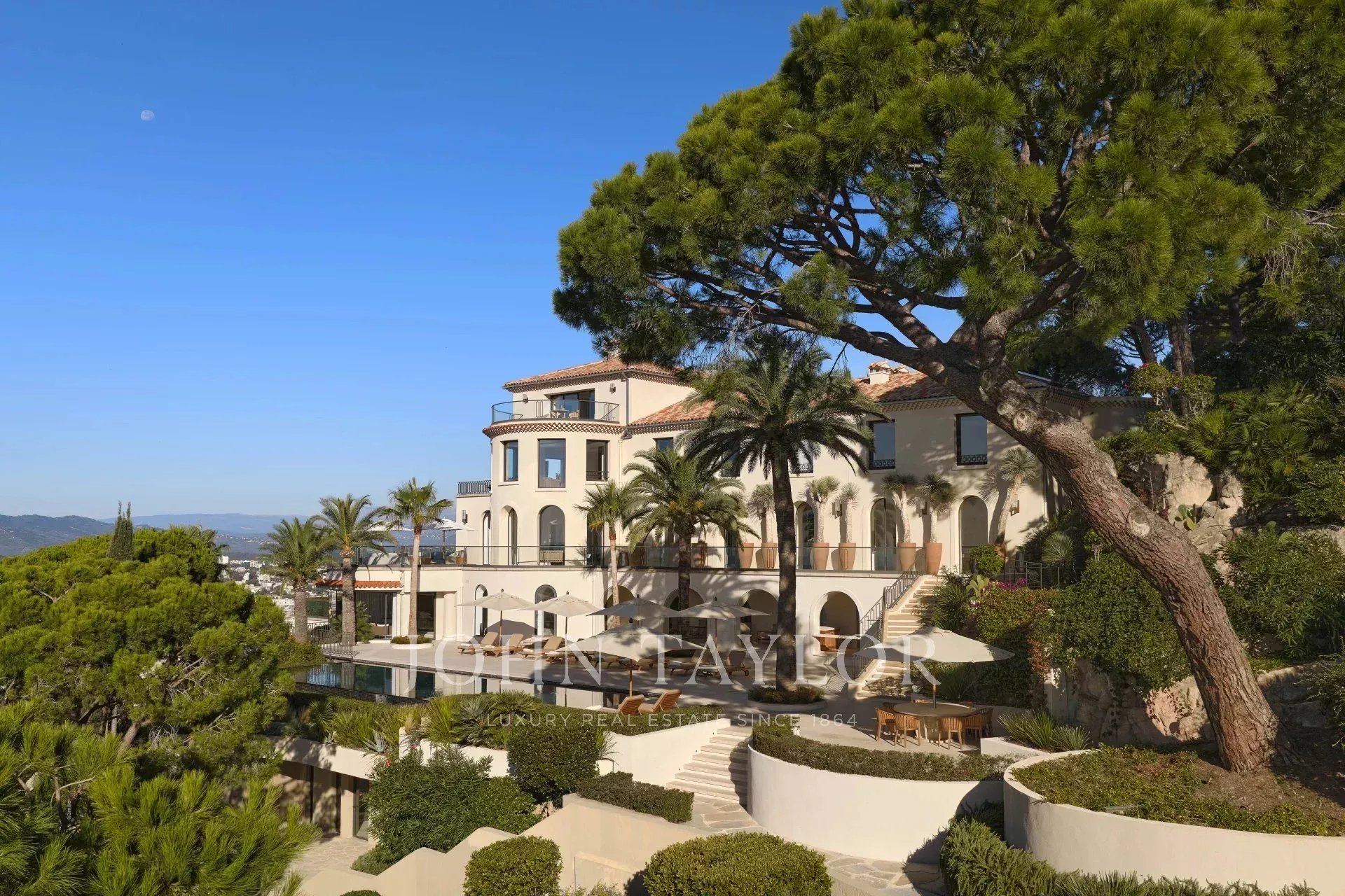 Nichée au sommet des collines de Cannes, Bagatelle est une propriété d’exception où l’élégance intemporelle de la Belle Époque se conjugue harmonieusement au confort contemporain. Véritable écrin de prestige, la villa offre une vue panoramique spectaculaire sur la baie de Cannes et les îles de Lérins, dans un environnement rare, intime et entièrement sécurisé. Implantée au cœur d’un parc paysager de près d’un hectare, Bagatelle est bien plus qu’une résidence : c’est une expérience, une invitation à l’art de vivre azuréen, où chaque détail a été pensé pour offrir discrétion, sérénité et raffinement absolu.