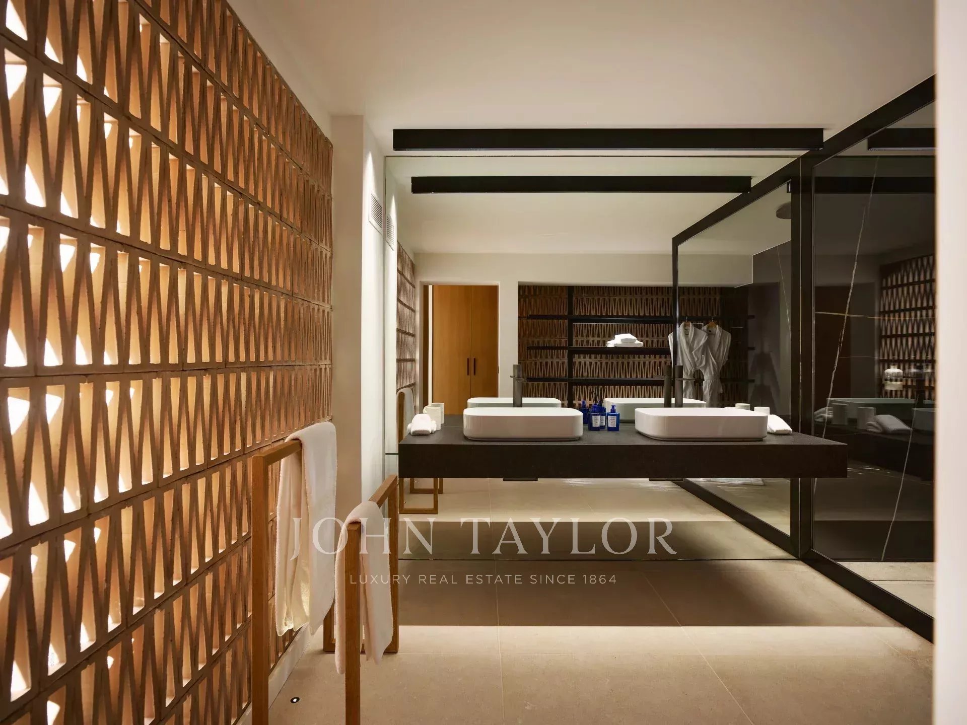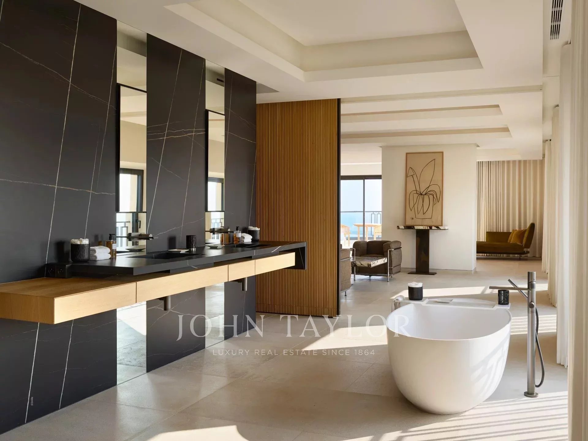 Les suites, réparties sur différents niveaux, offrent un confort absolu et une intimité totale. Chacune a été pensée comme un véritable refuge, baigné de lumière et ouvert sur la nature environnante. La master suite, avec sa terrasse privée et sa vue mer panoramique, incarne l’essence même du luxe discret et du bien-être.
