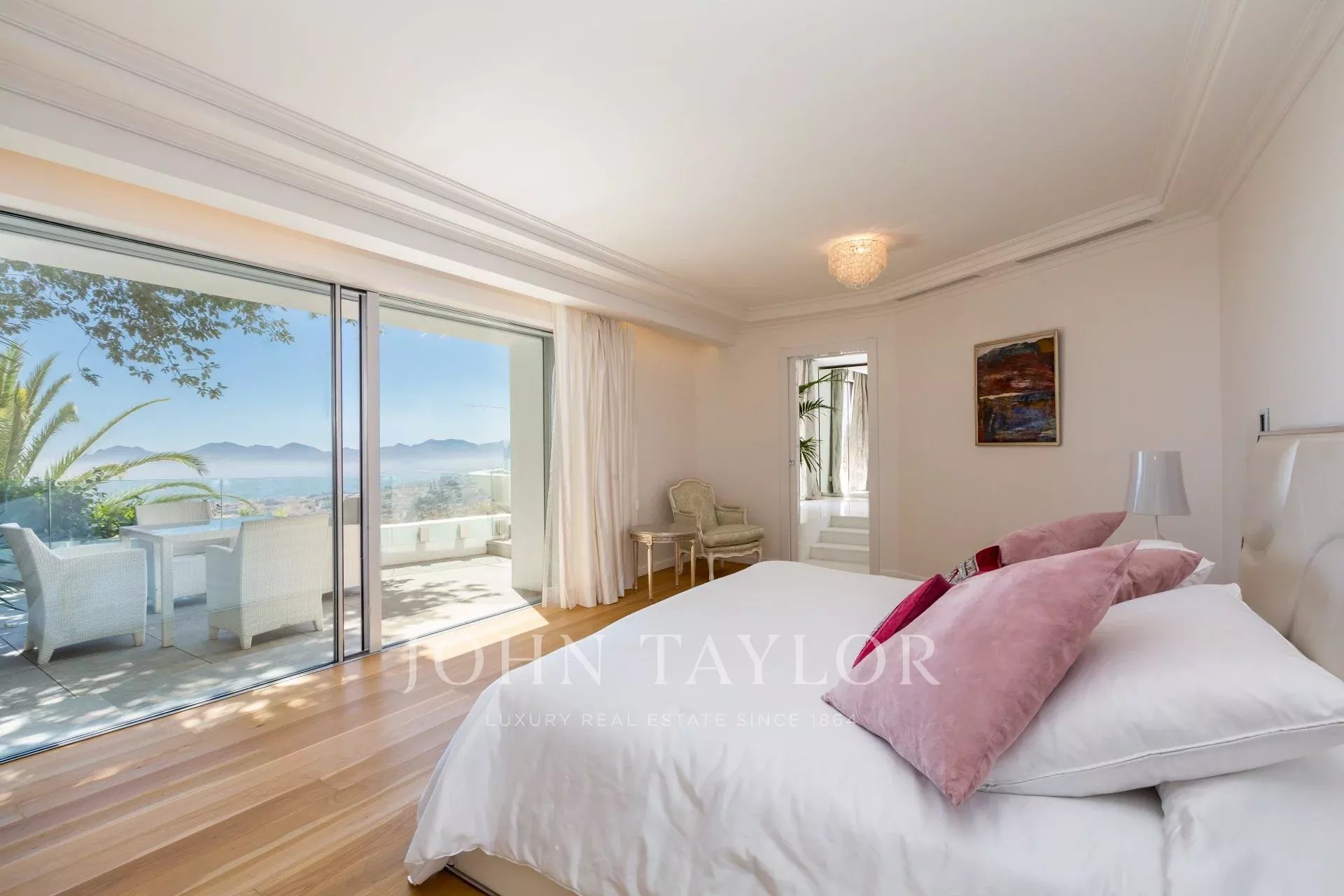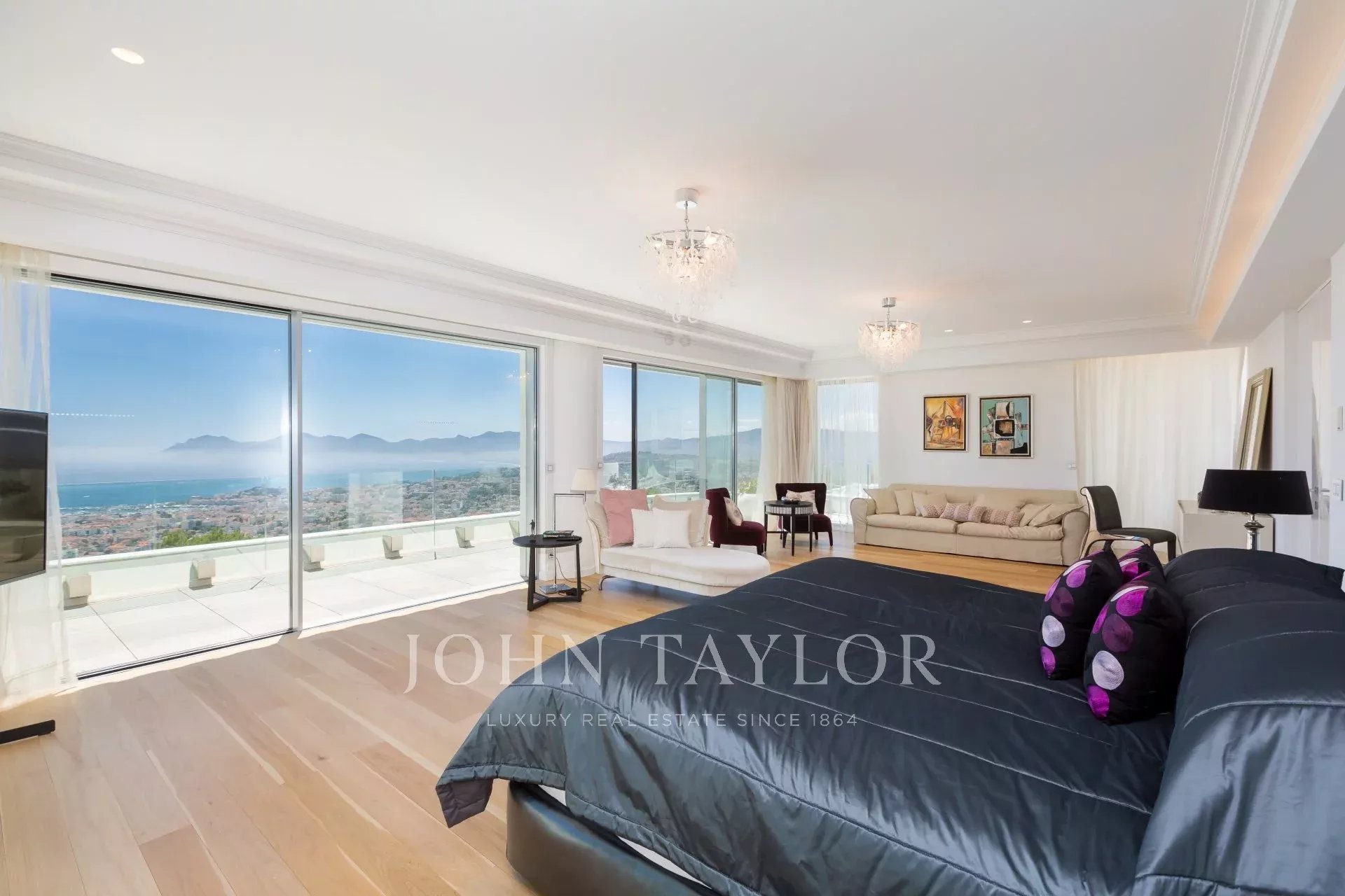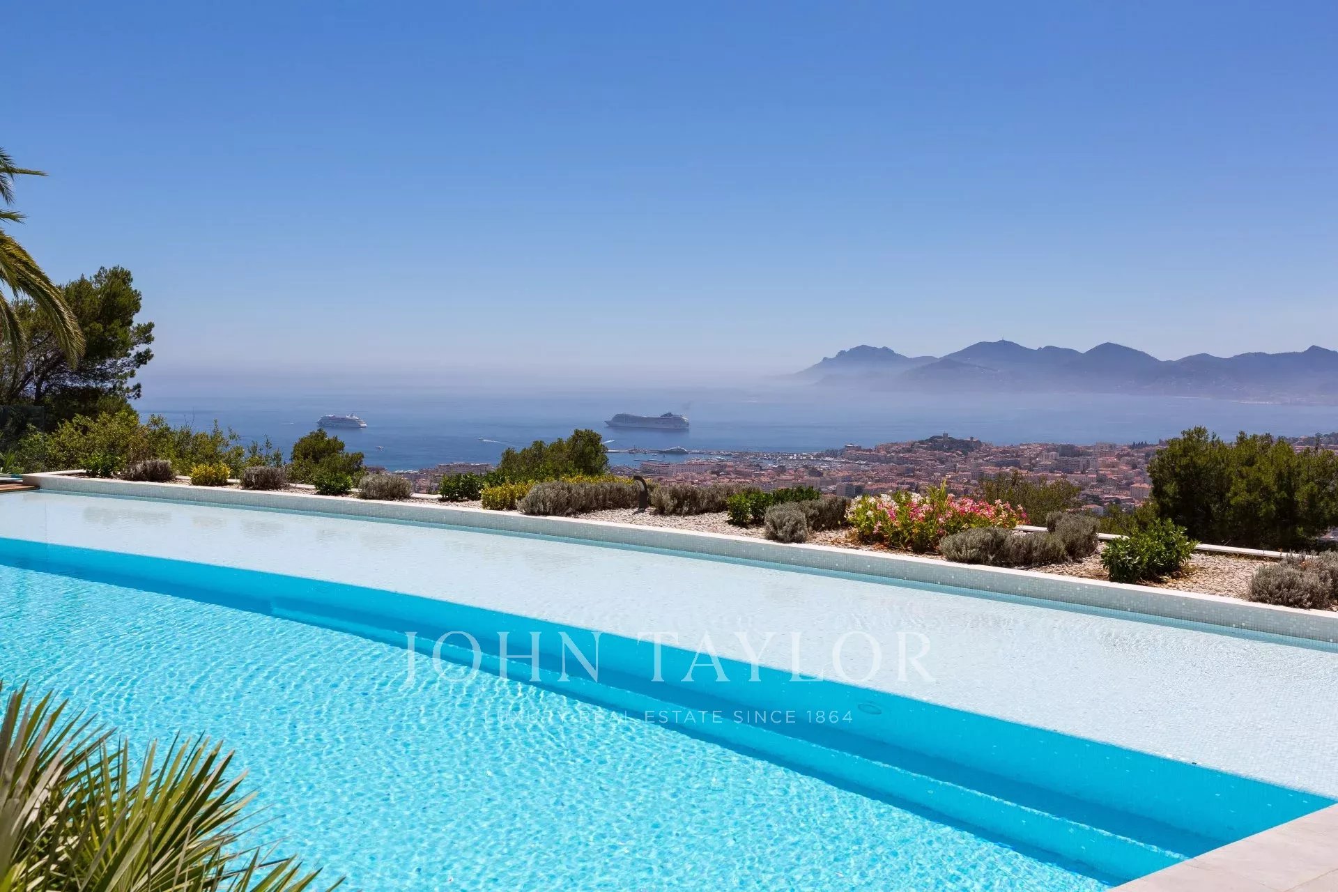 Sur les hauteurs de Cannes et surplombant la Baie, exceptionnelle et unique propriété de plus de 2 000 m2 habitables au coeur d’un terrain d’environ 13 750 m2, chacune des chambres jouissant de superbes vues mer.