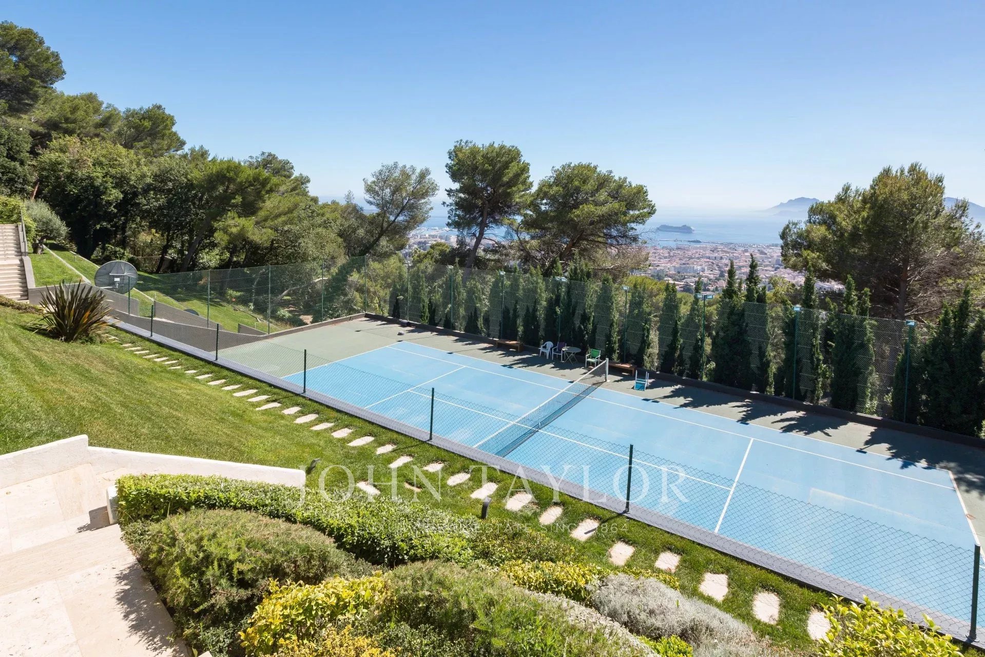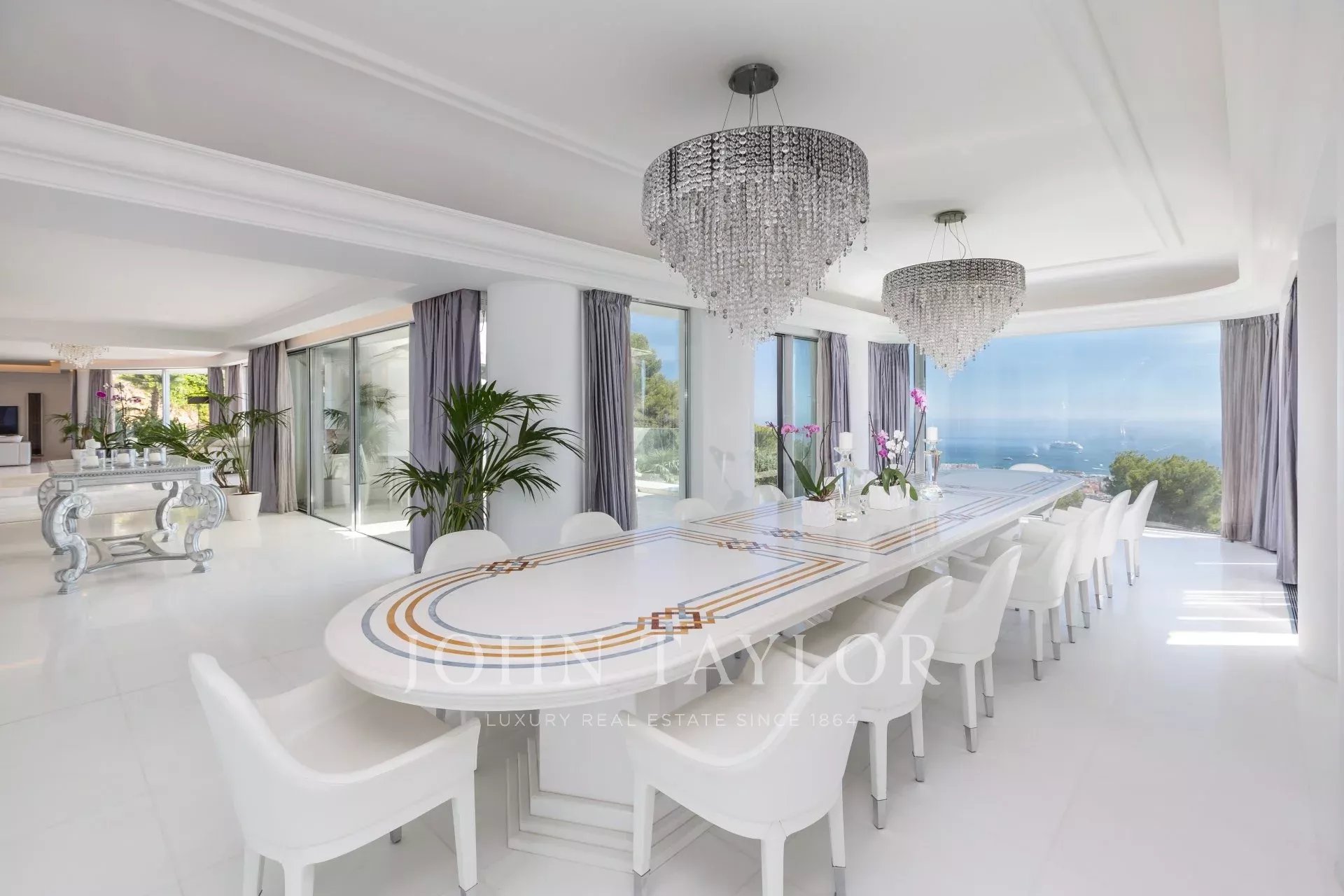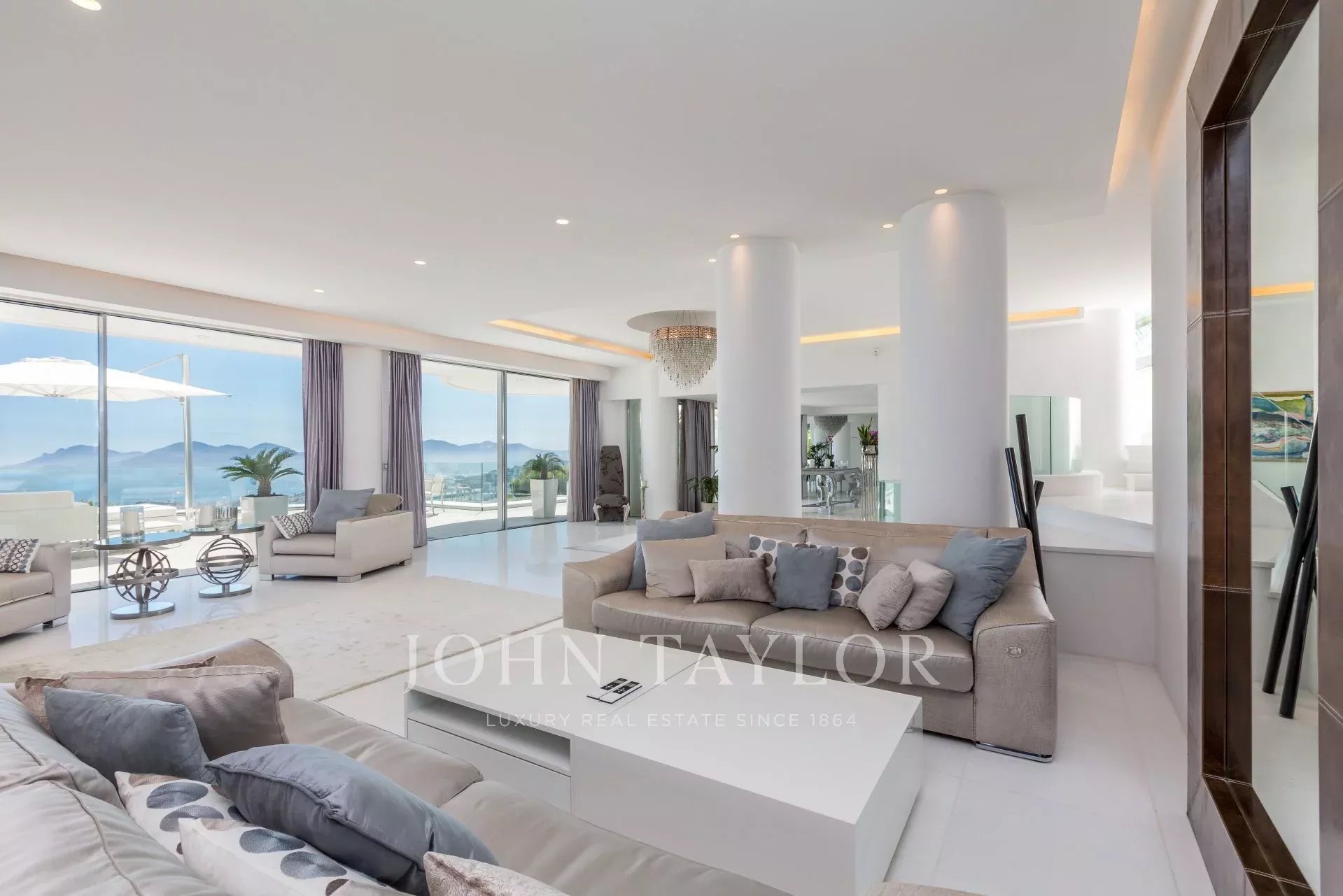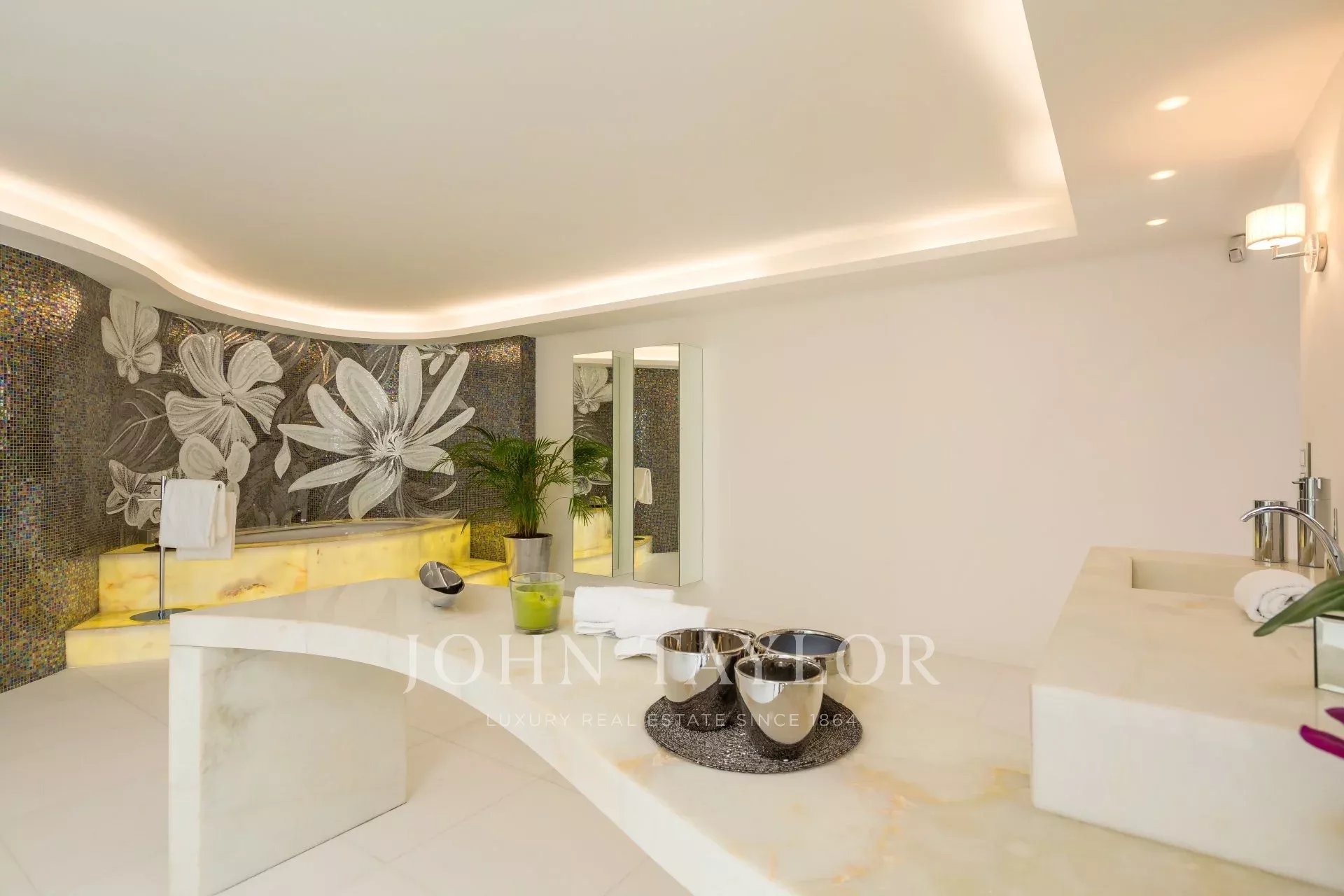 Sur les hauteurs de Cannes et surplombant la Baie, exceptionnelle et unique propriété de plus de 2 000 m2 habitables au coeur d’un terrain d’environ 13 750 m2, chacune des chambres jouissant de superbes vues mer.
