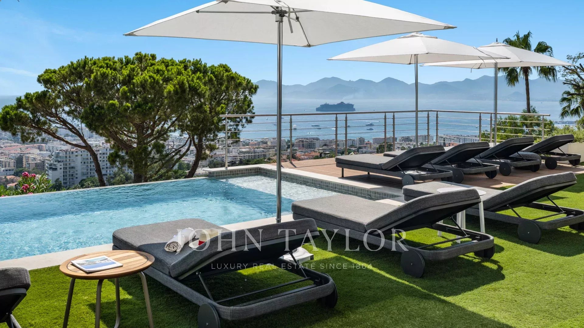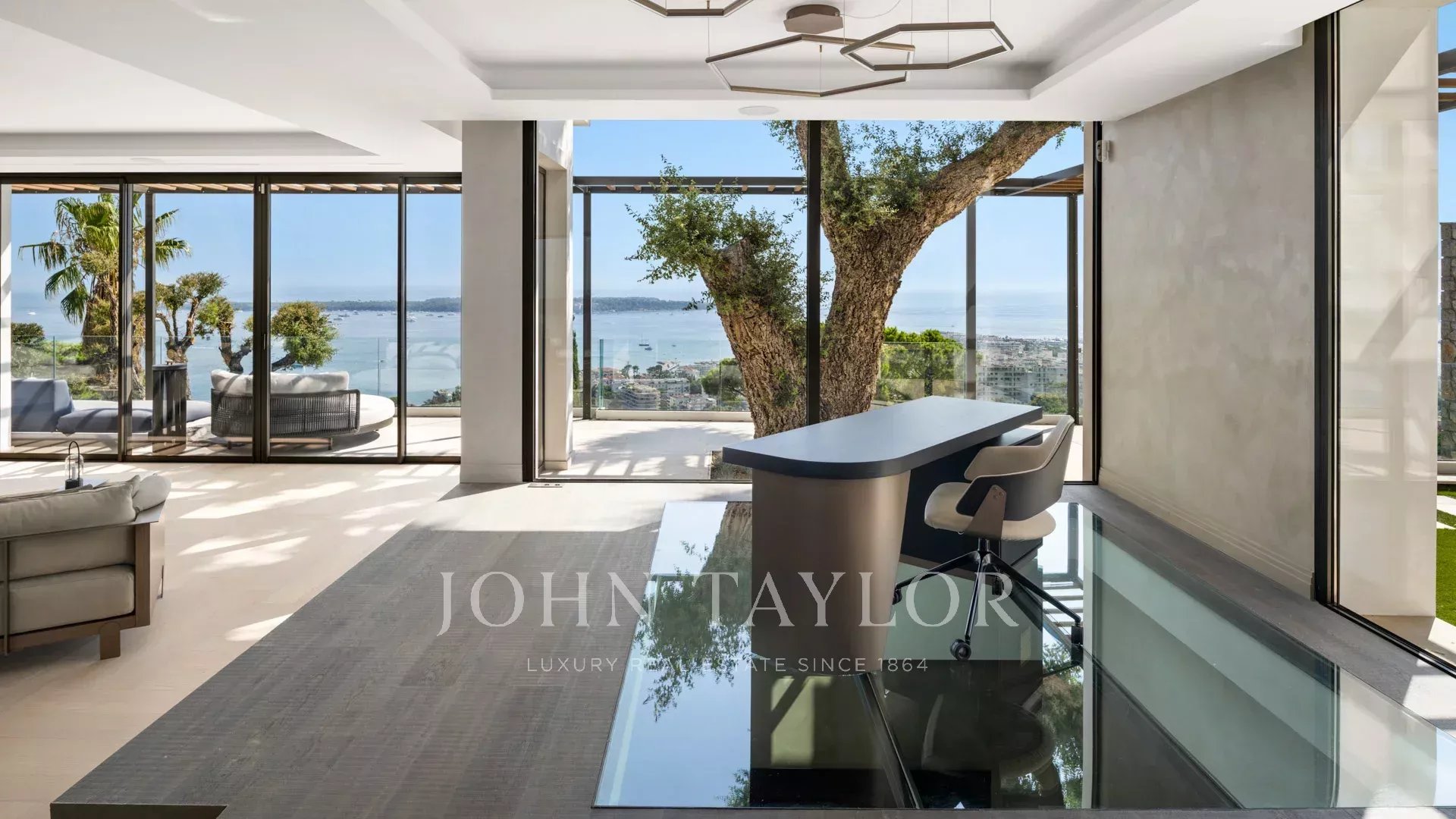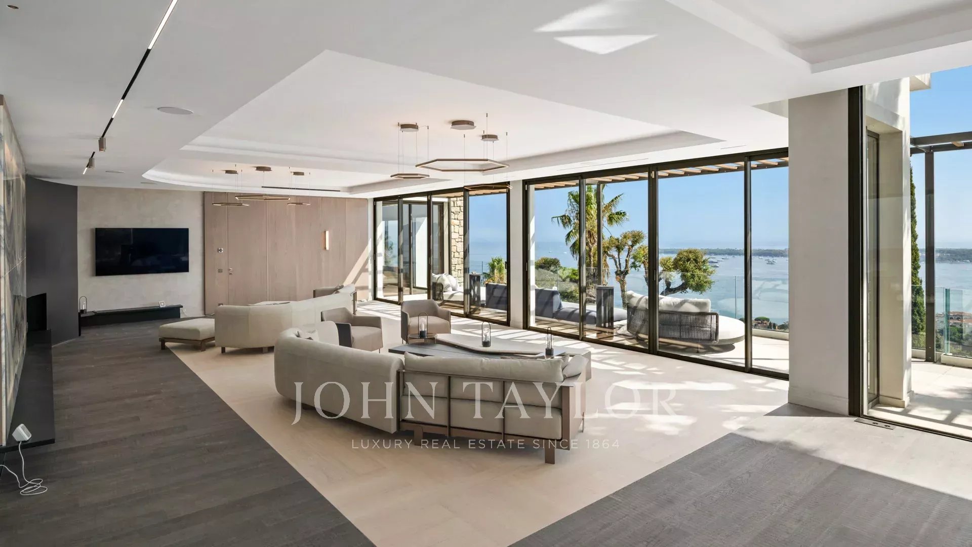 Avec ses 550 m² habitables, la villa dévoile une décoration sophistiquée et offre une vue imprenable sur la Baie de Cannes et les Îles de Lérins, garantissant ainsi des panoramas à couper le souffle.