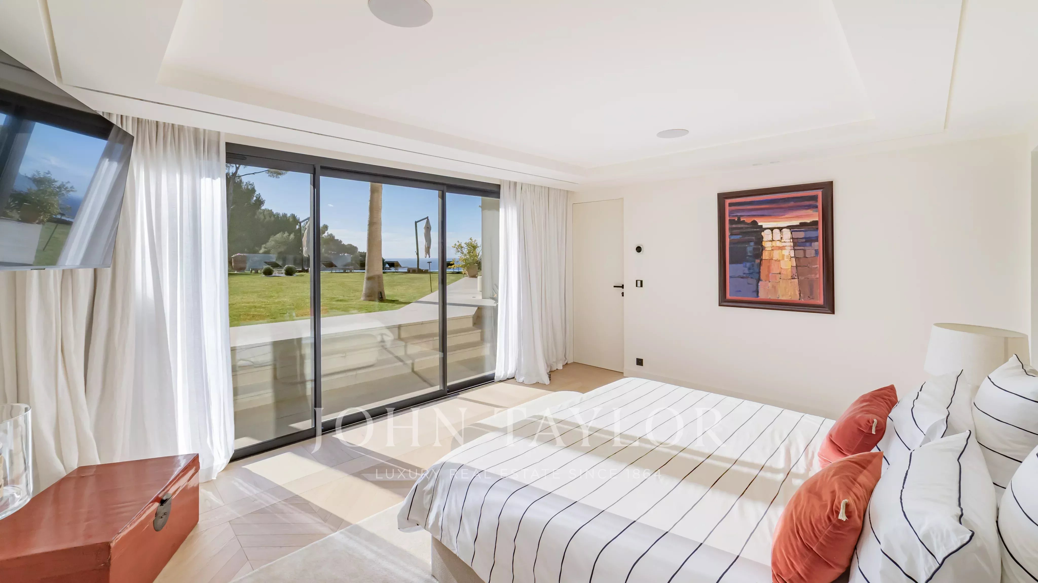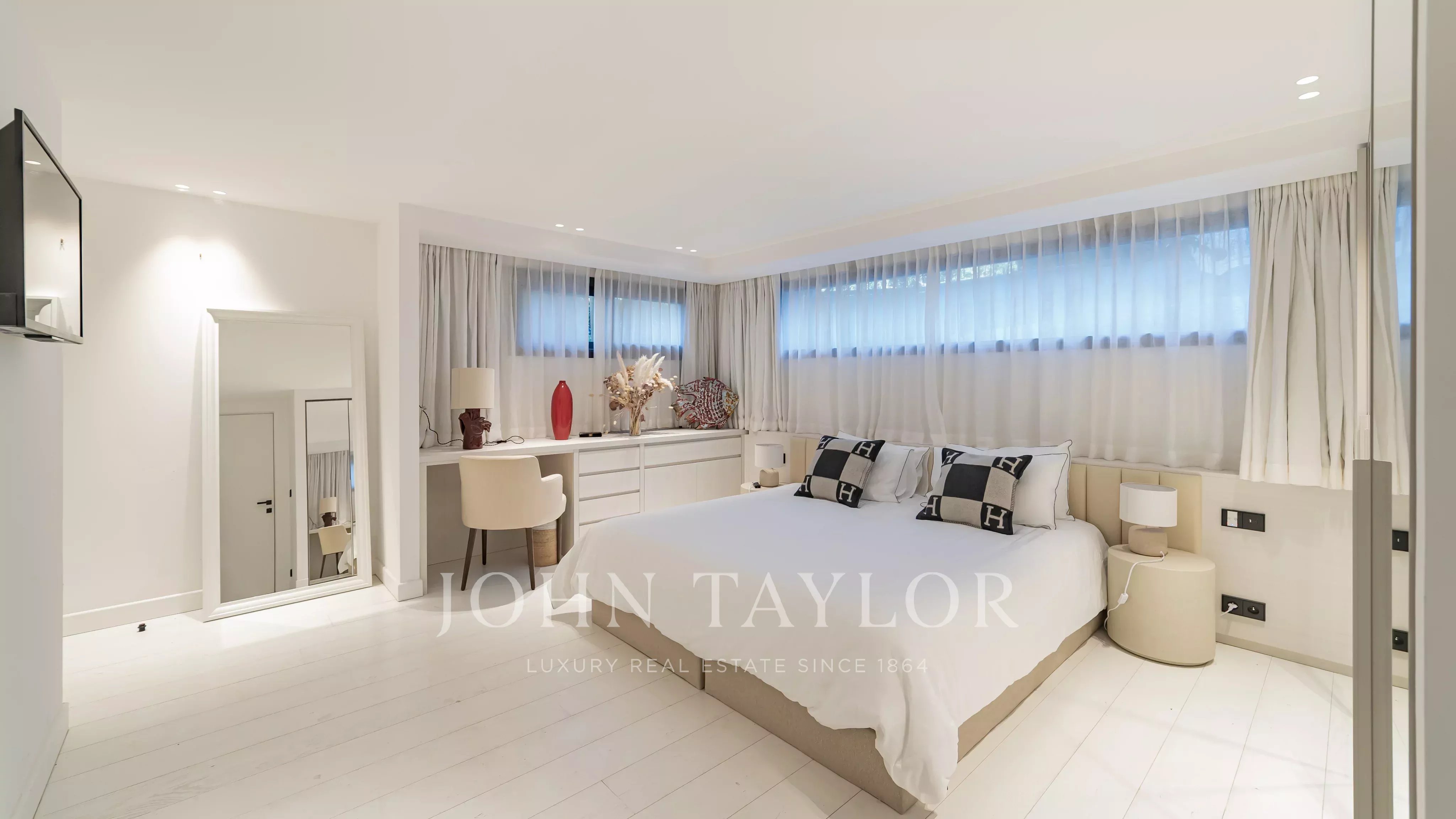 Par son emplacement d’exception et ses prestations haut de gamme, cette villa offre un véritable havre de raffinement face à la mer, idéale pour des vacances exclusives ou lors des congrès internationaux cannois.