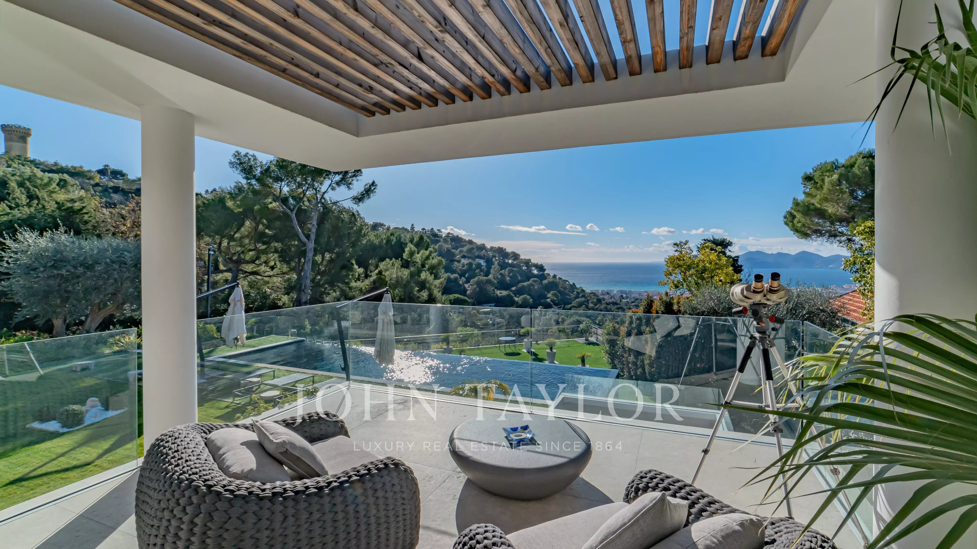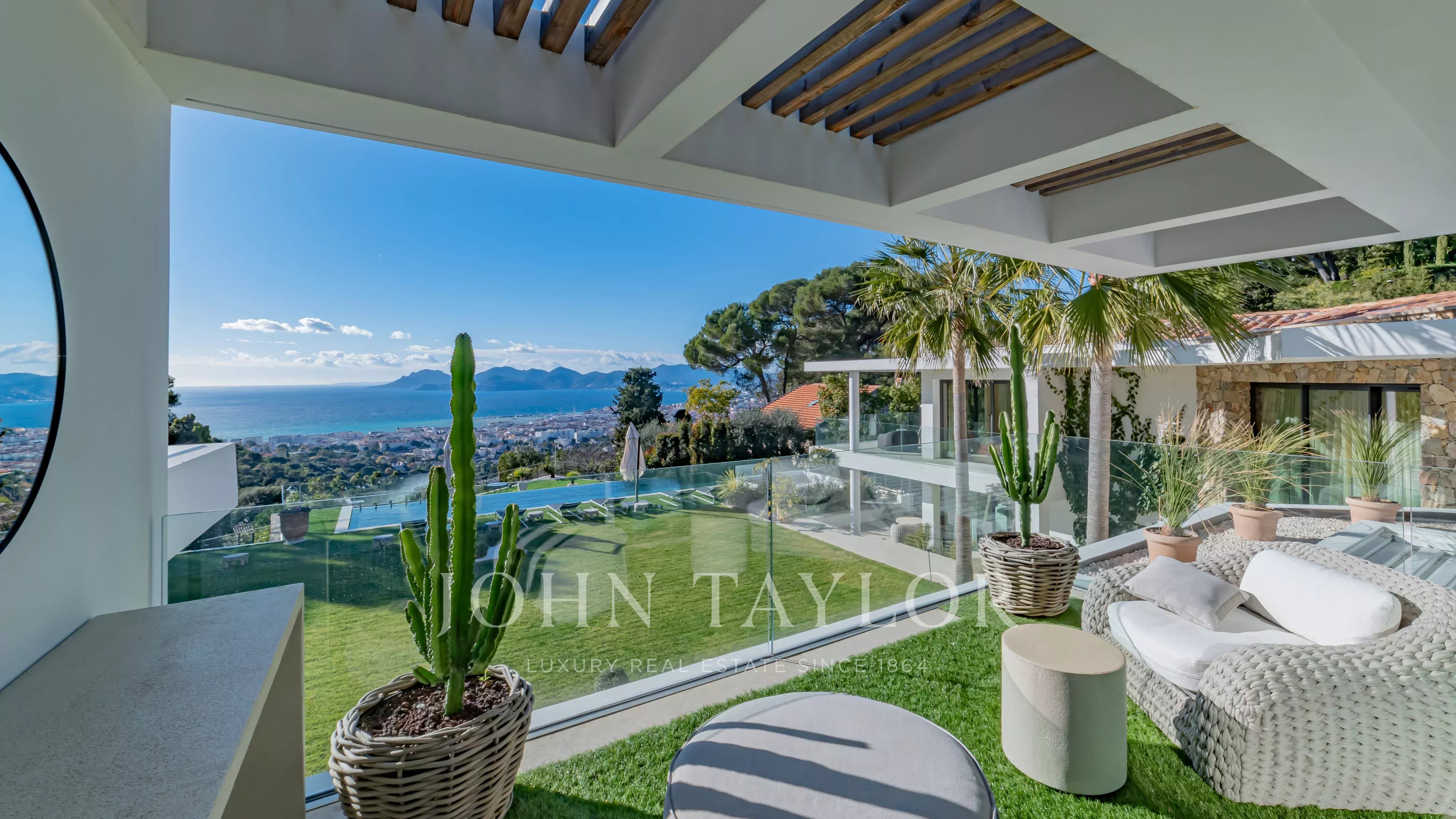 Située au sein du très prisé quartier de la Californie, en position dominante surplombant la baie de Cannes et le massif de l’Estérel, cette propriété contemporaine d’exception a fait l’objet d’une rénovation complète et récente, réalisée par un architecte de renom.