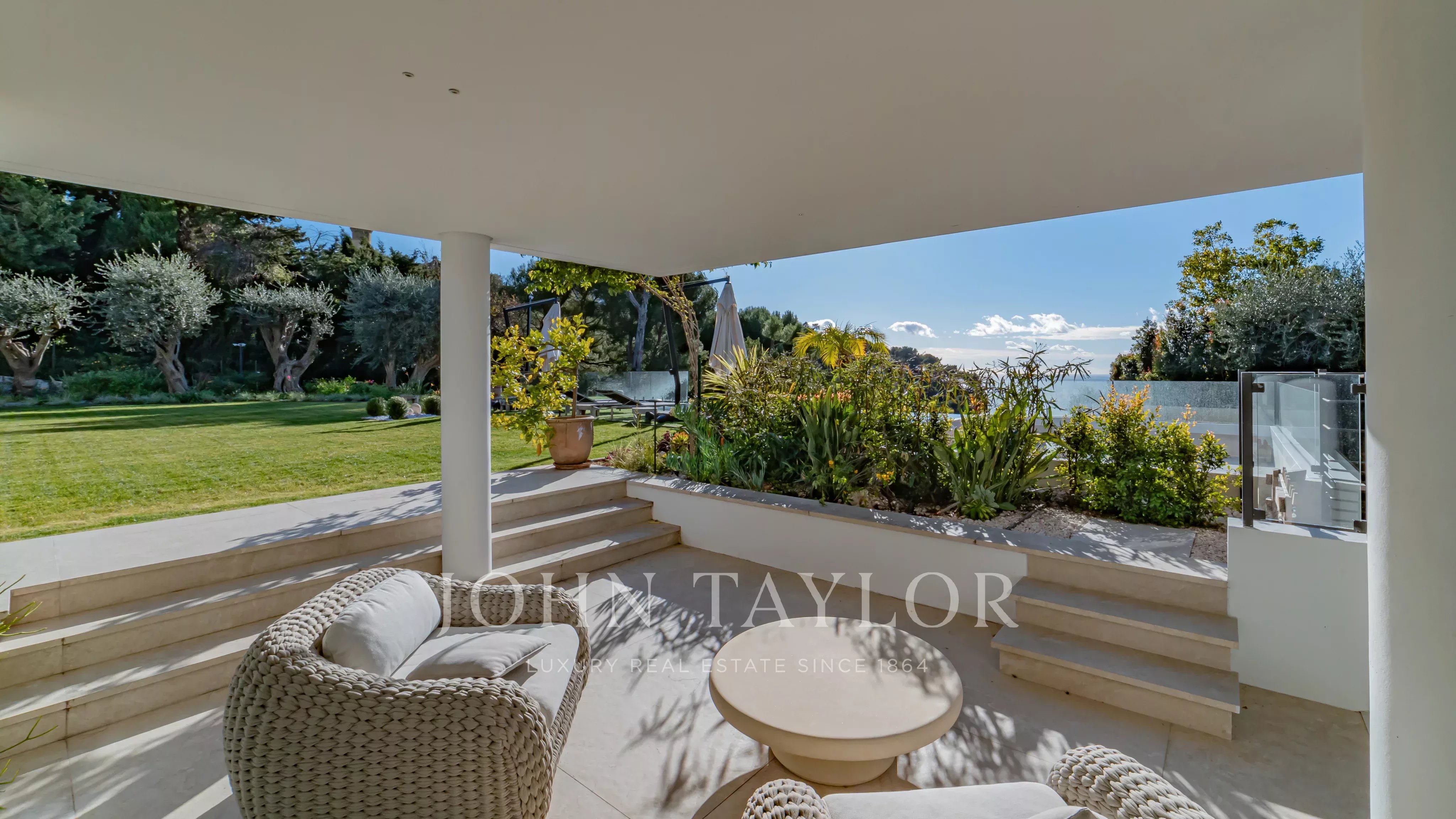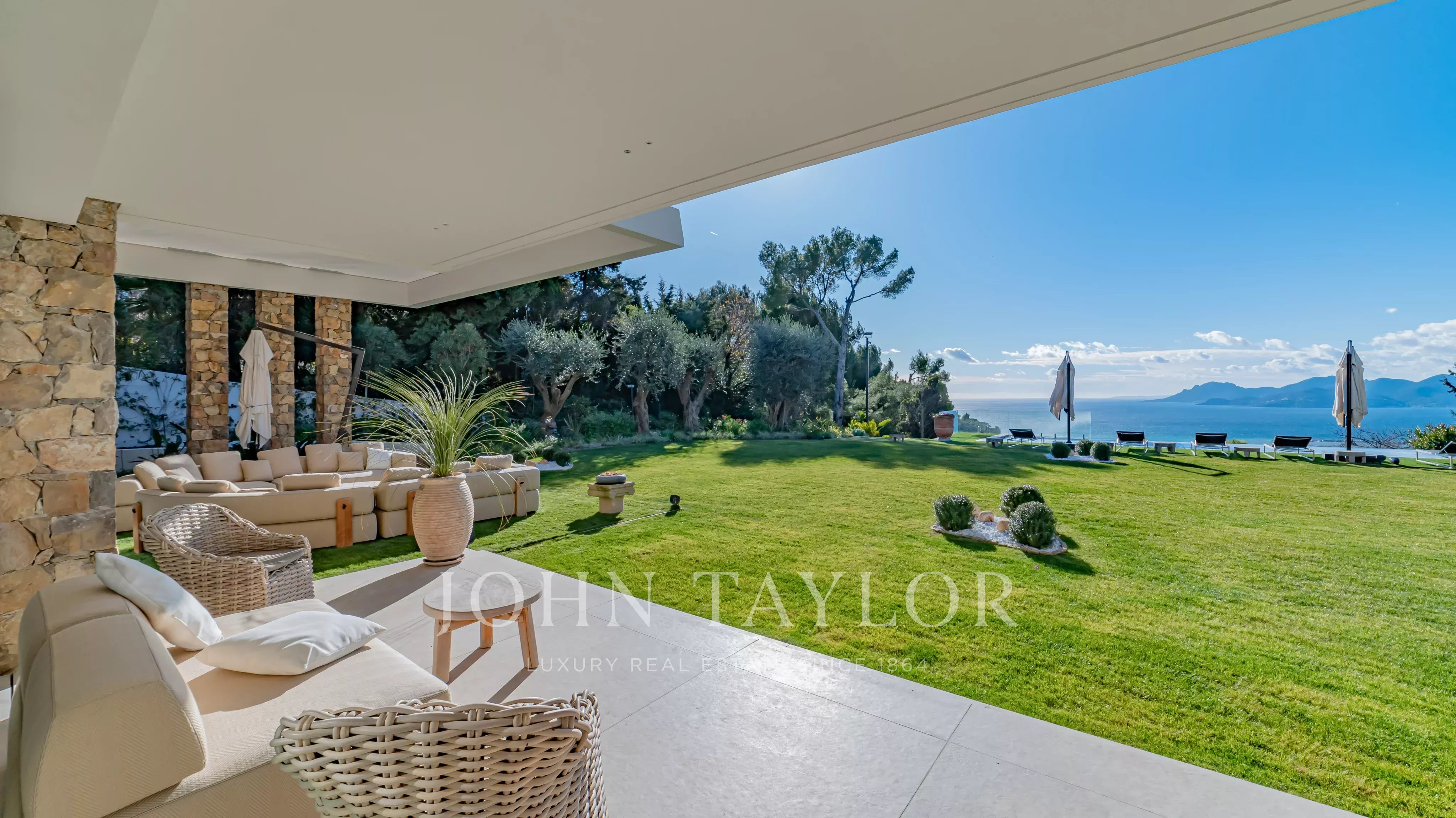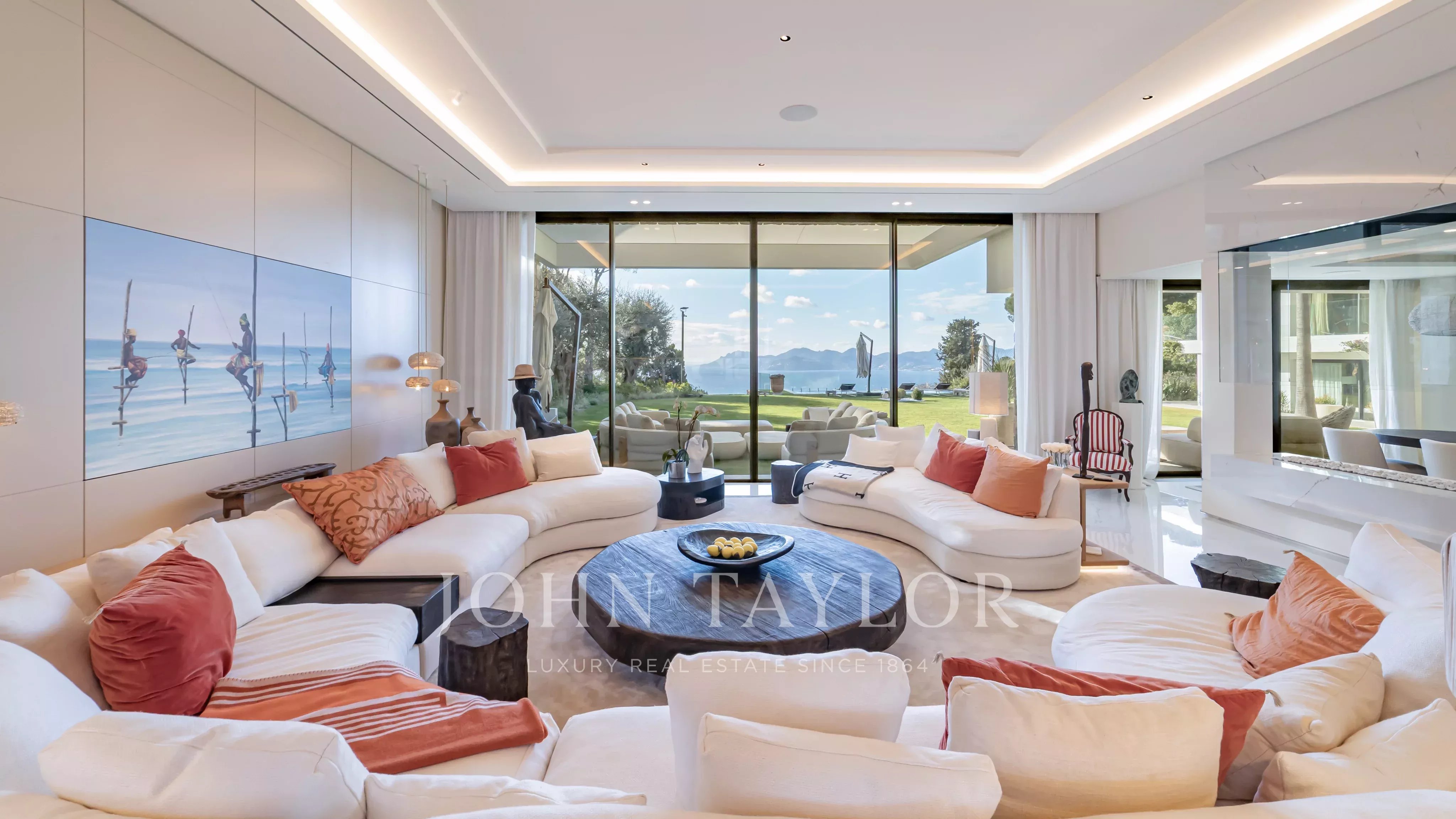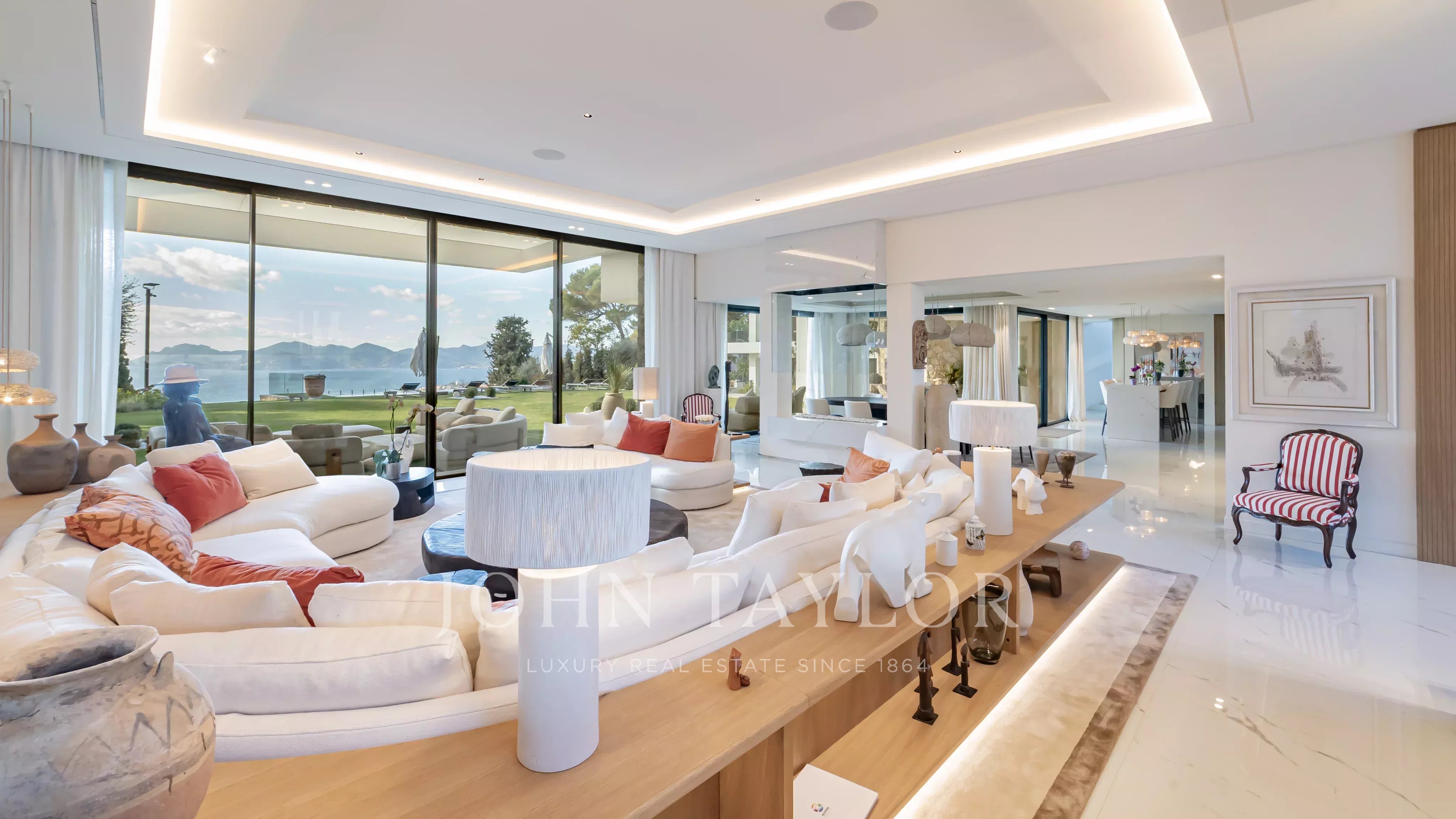 D’une superficie d’environ 660 m², la villa propose de somptueux espaces de réception baignés de lumière, ouverts sur de vastes terrasses face à la mer. Elle bénéficie d’un élégant jardin paysager ainsi que d’une piscine à débordement offrant une continuité visuelle saisissante avec la Méditerranée.