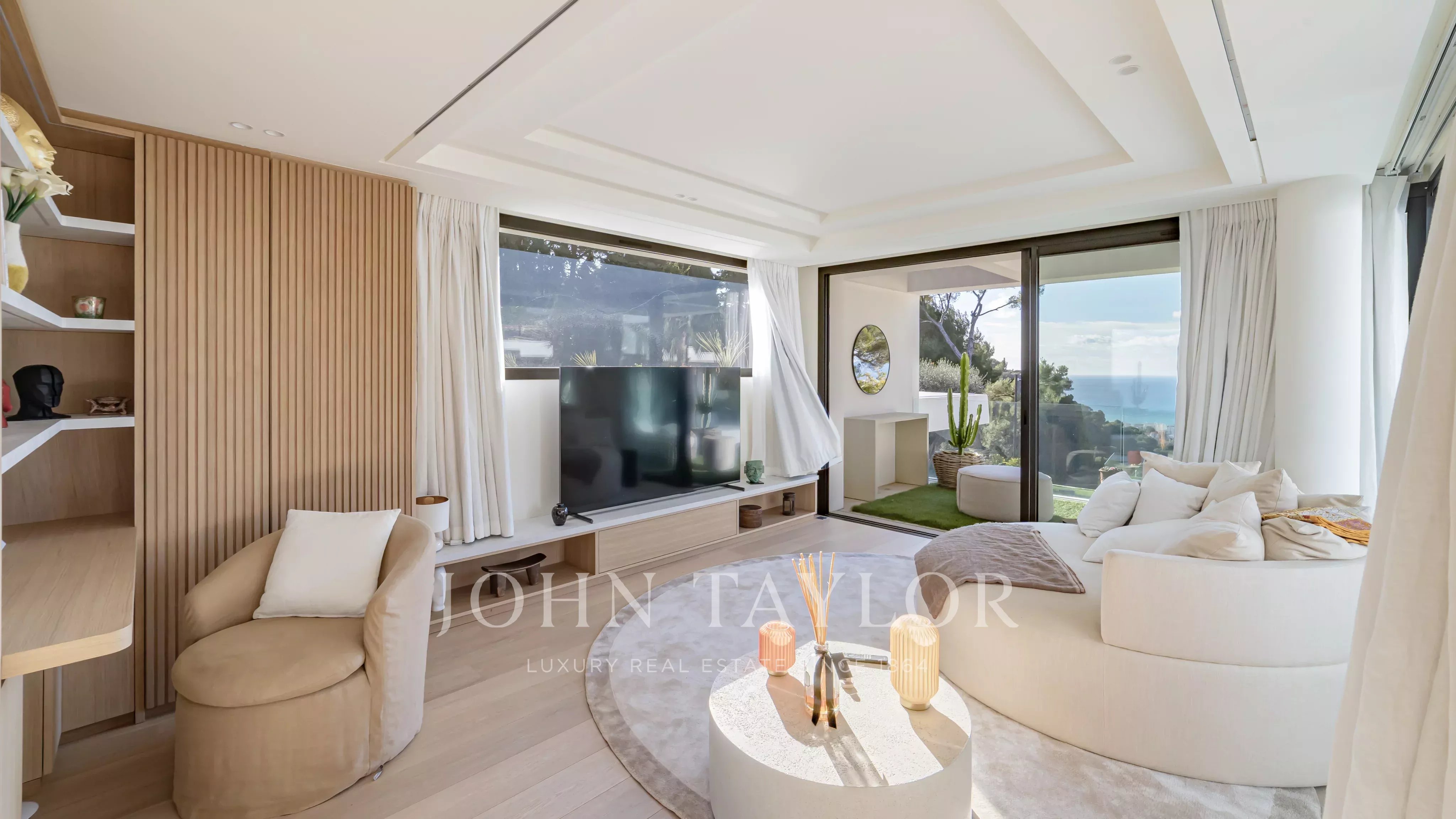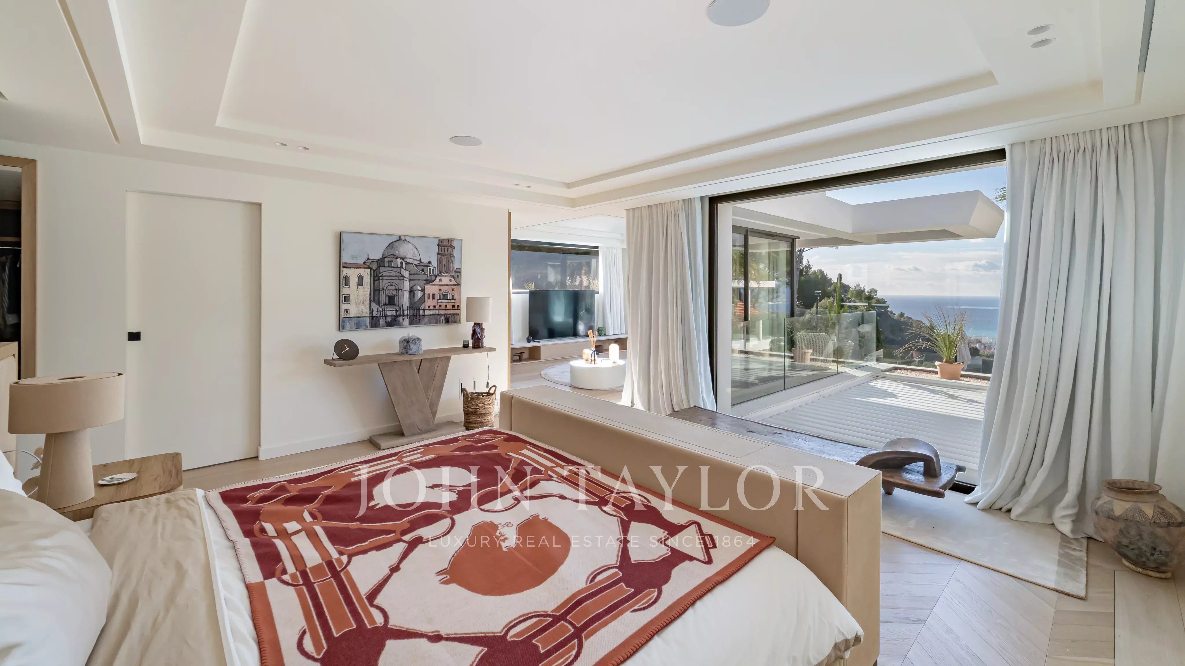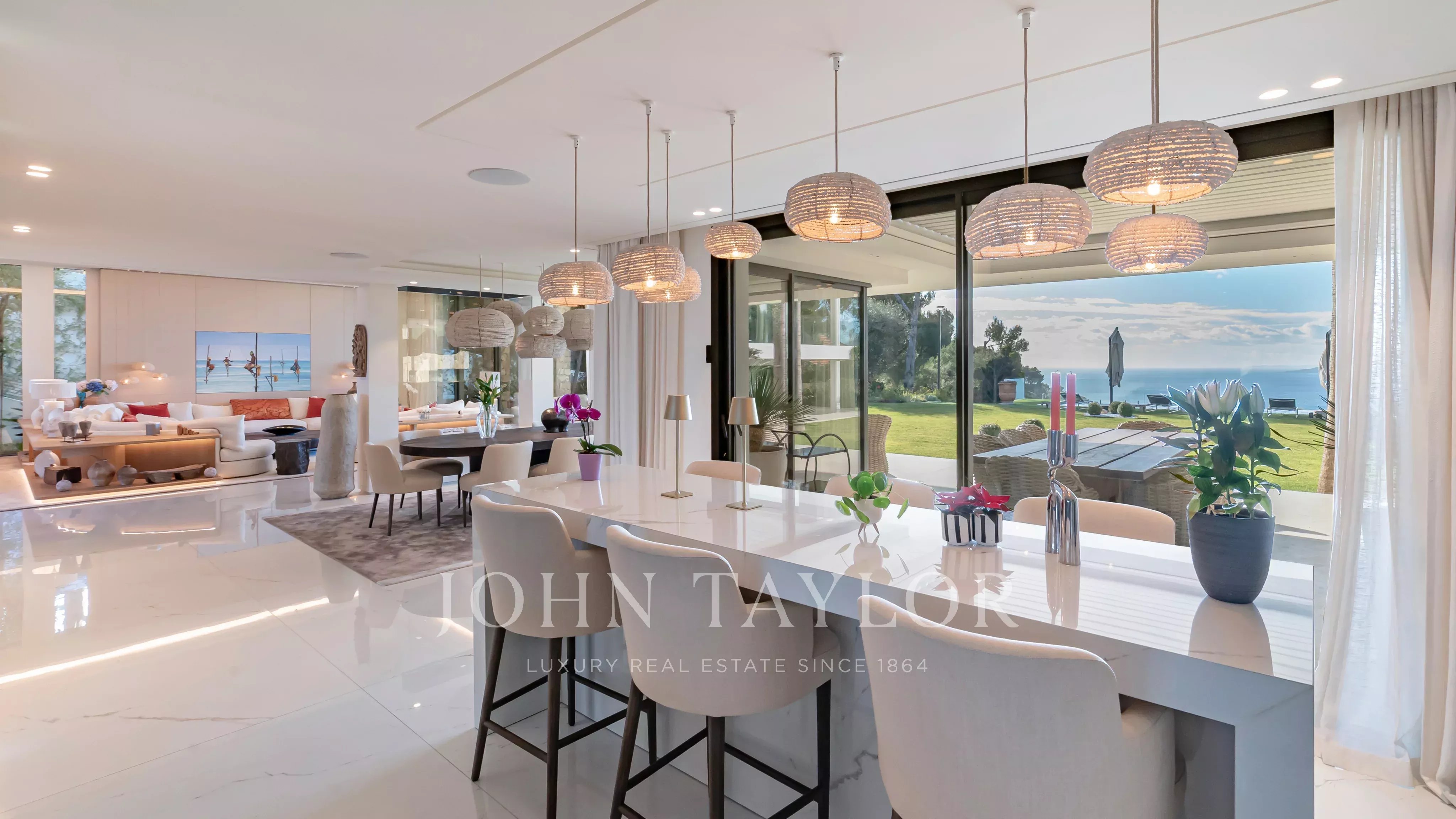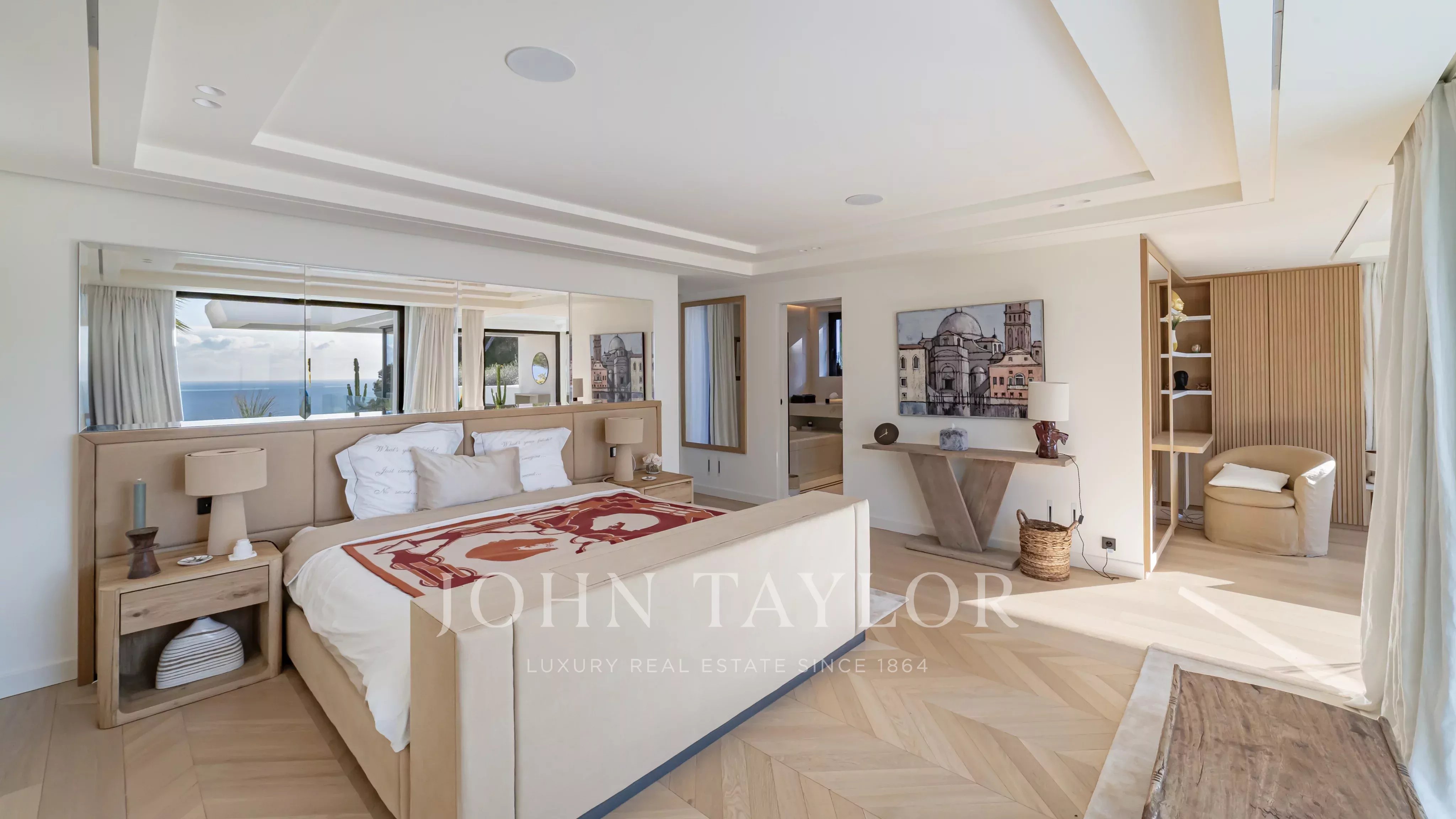 D’une superficie d’environ 660 m², la villa propose de somptueux espaces de réception baignés de lumière, ouverts sur de vastes terrasses face à la mer. Elle bénéficie d’un élégant jardin paysager ainsi que d’une piscine à débordement offrant une continuité visuelle saisissante avec la Méditerranée.