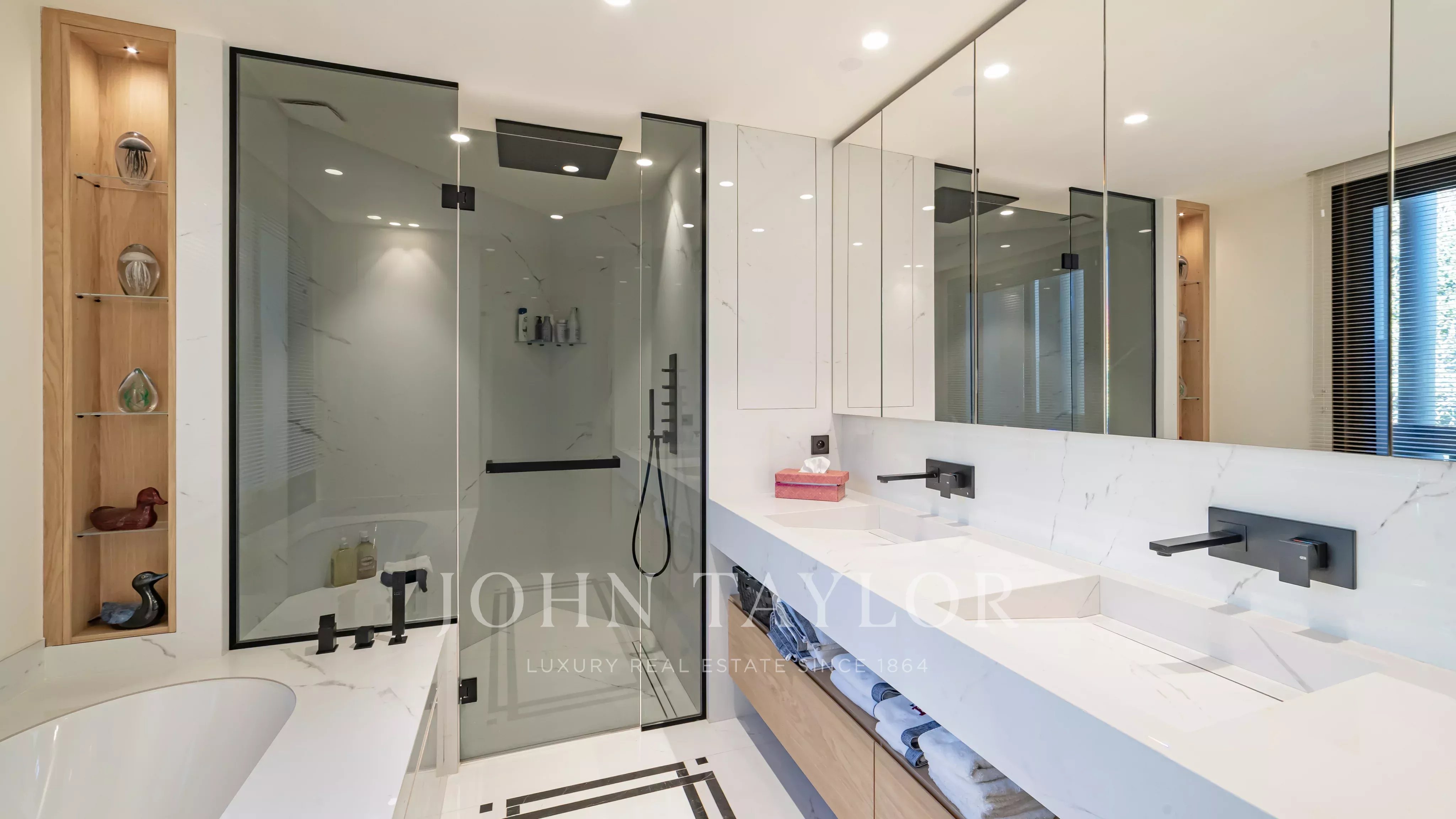 Elle comprend un vaste salon, une élégante salle à manger, un salon extérieur couvert, une salle à manger d’été ainsi qu’une cuisine entièrement équipée, disposant d’un accès indépendant pour les livraisons. Un ascenseur dessert l’ensemble des niveaux.