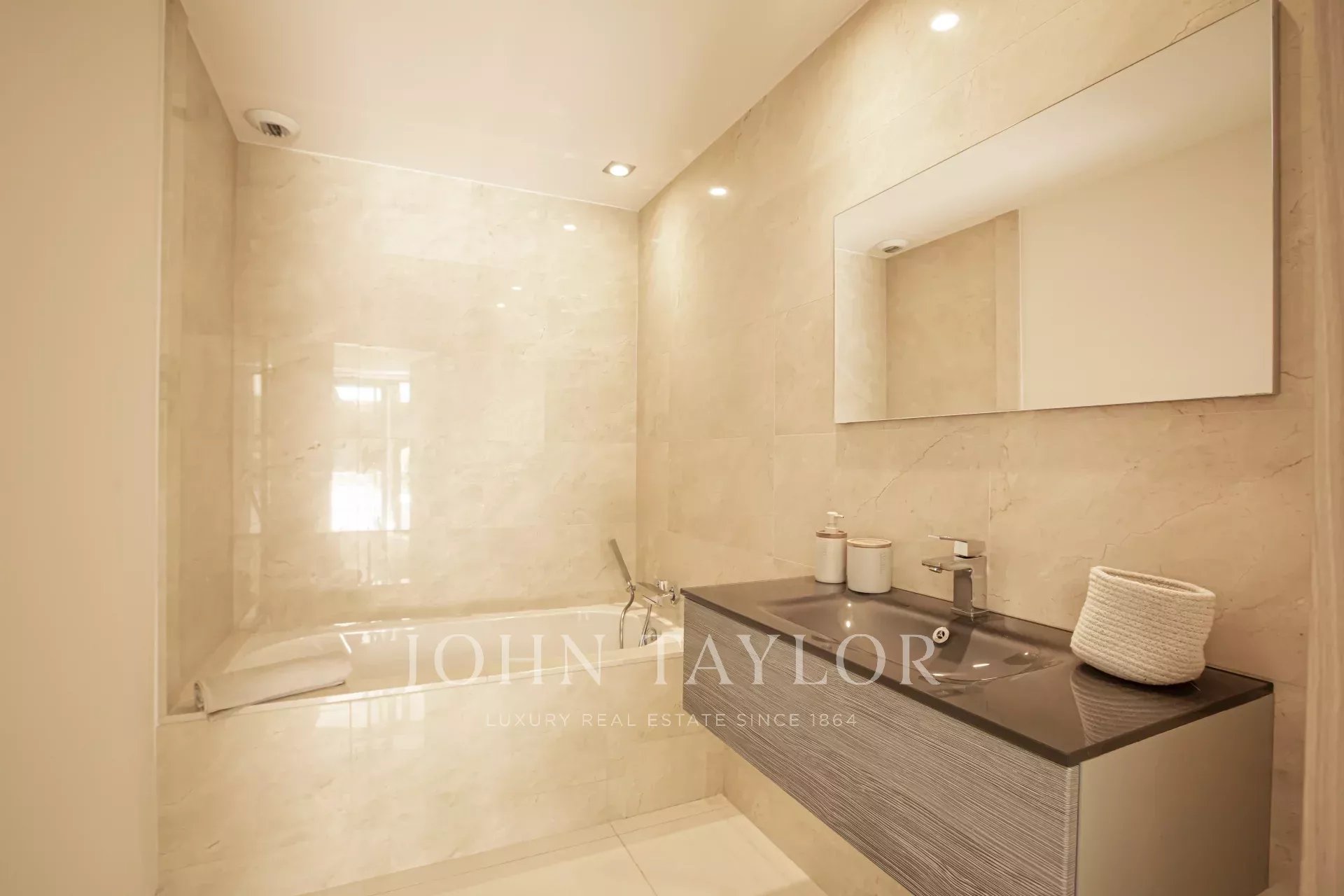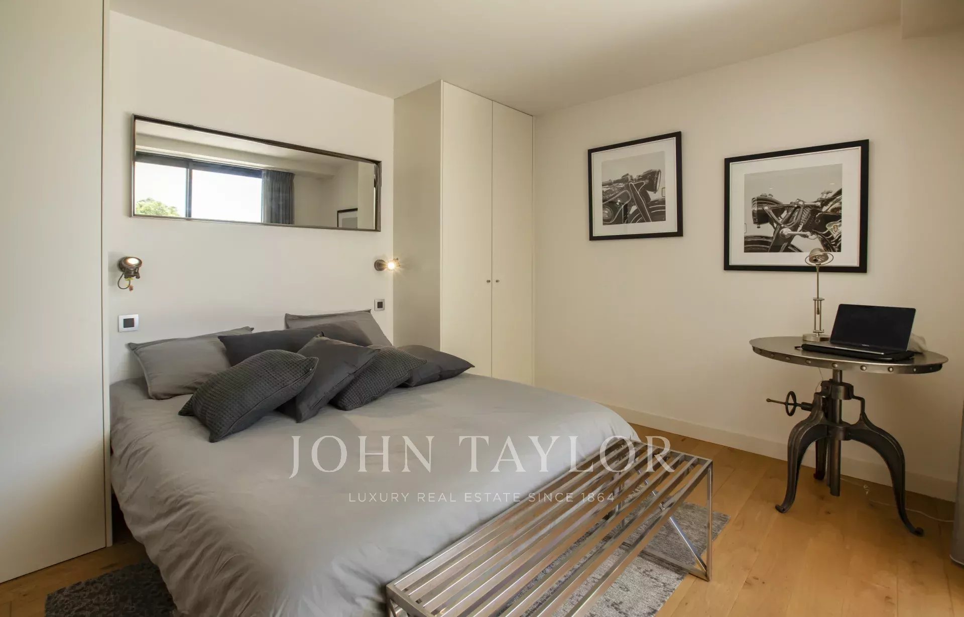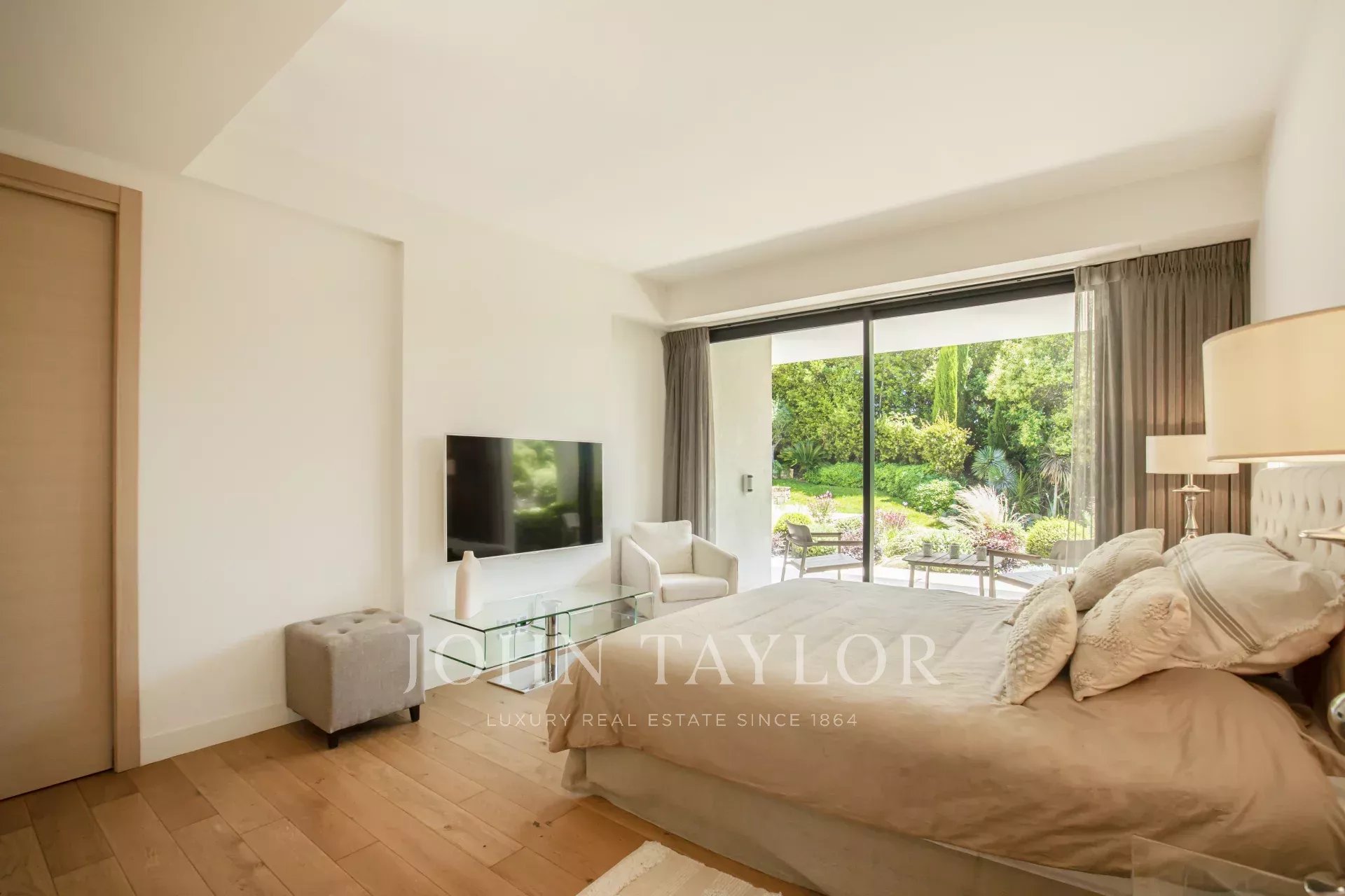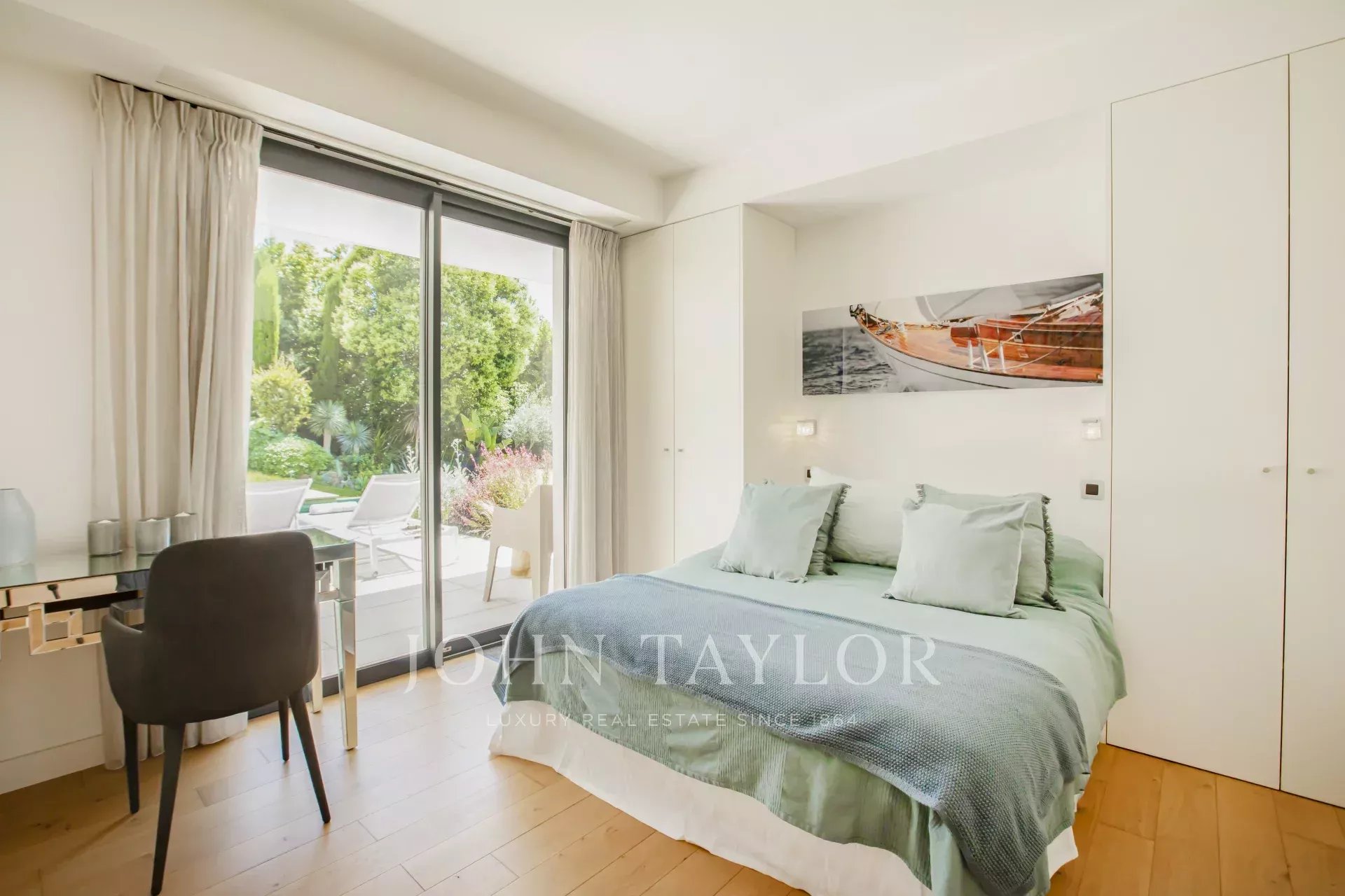 Sur les hauteurs de Cannes, dans un quartier résidentiel à proximité du vieux village du Cannet, belle villa contemporaine entièrement climatisée d’environ 240 m2 habitables au cœur d’un terrain arboré et exotique de 1 374 m2.