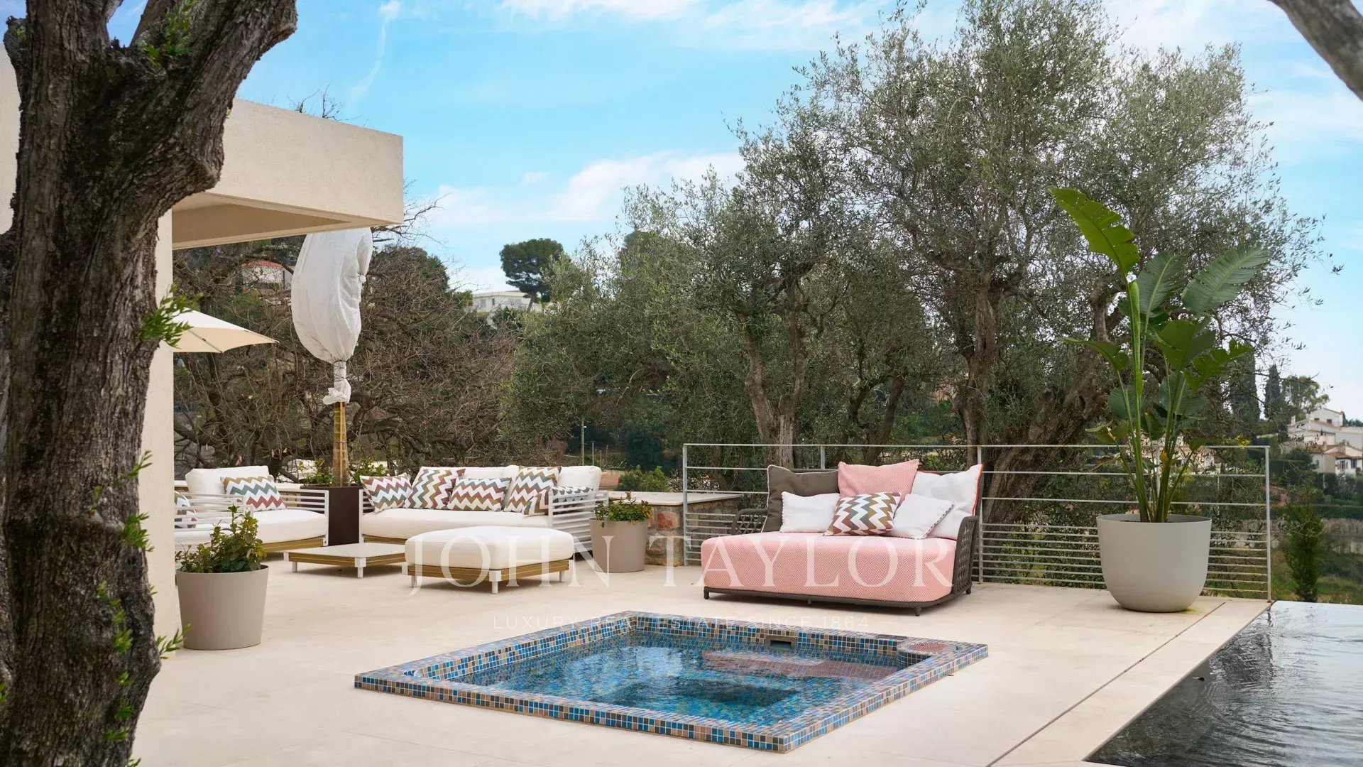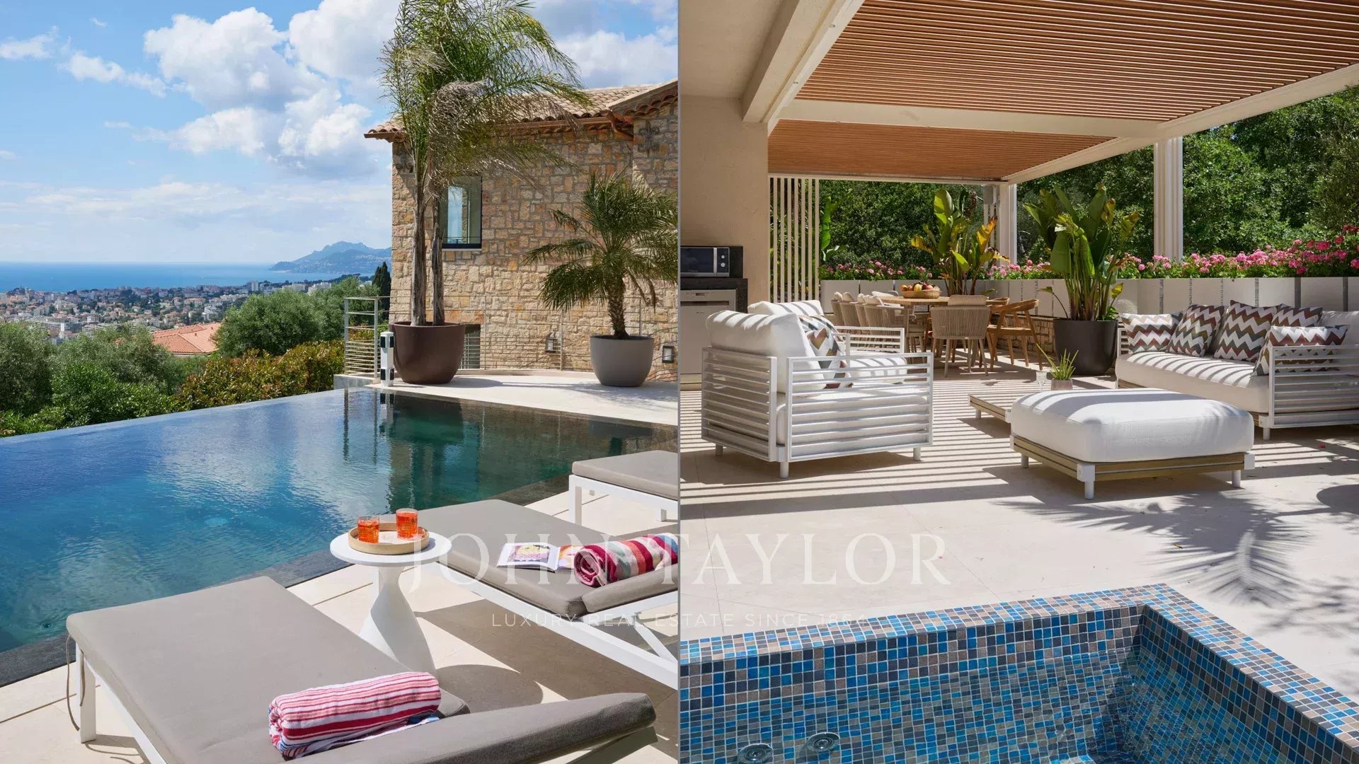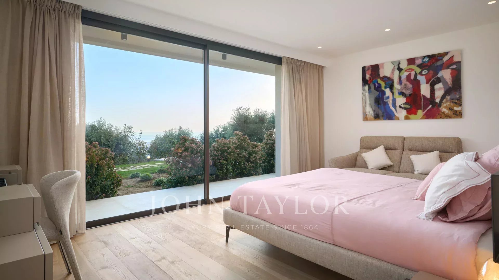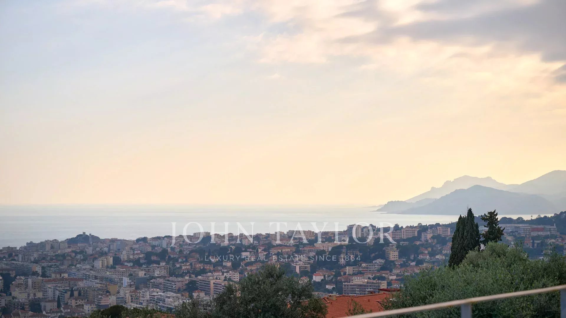 Sur les hauteurs de Cannes, superbe villa contemporaine d’environ 440 m2 habitables, entièrement climatisée, bénéficiant d'une très belle vue mer sur la Baie de Cannes et le massif de l'Estérel.