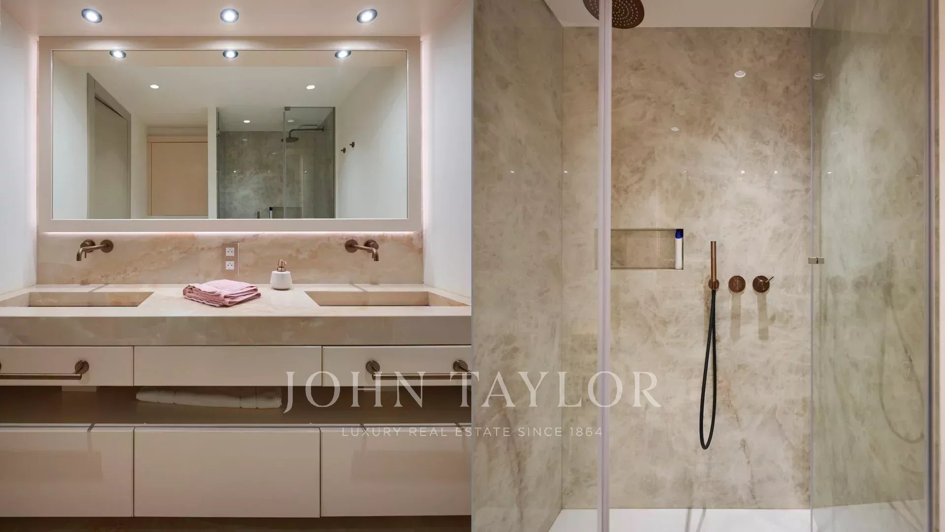 Chambre de Maître (lit king size) s’ouvrant sur terrasse – Dressing – Salle de bains / double vasque / douche – Toilettes indépendantes (douchette)