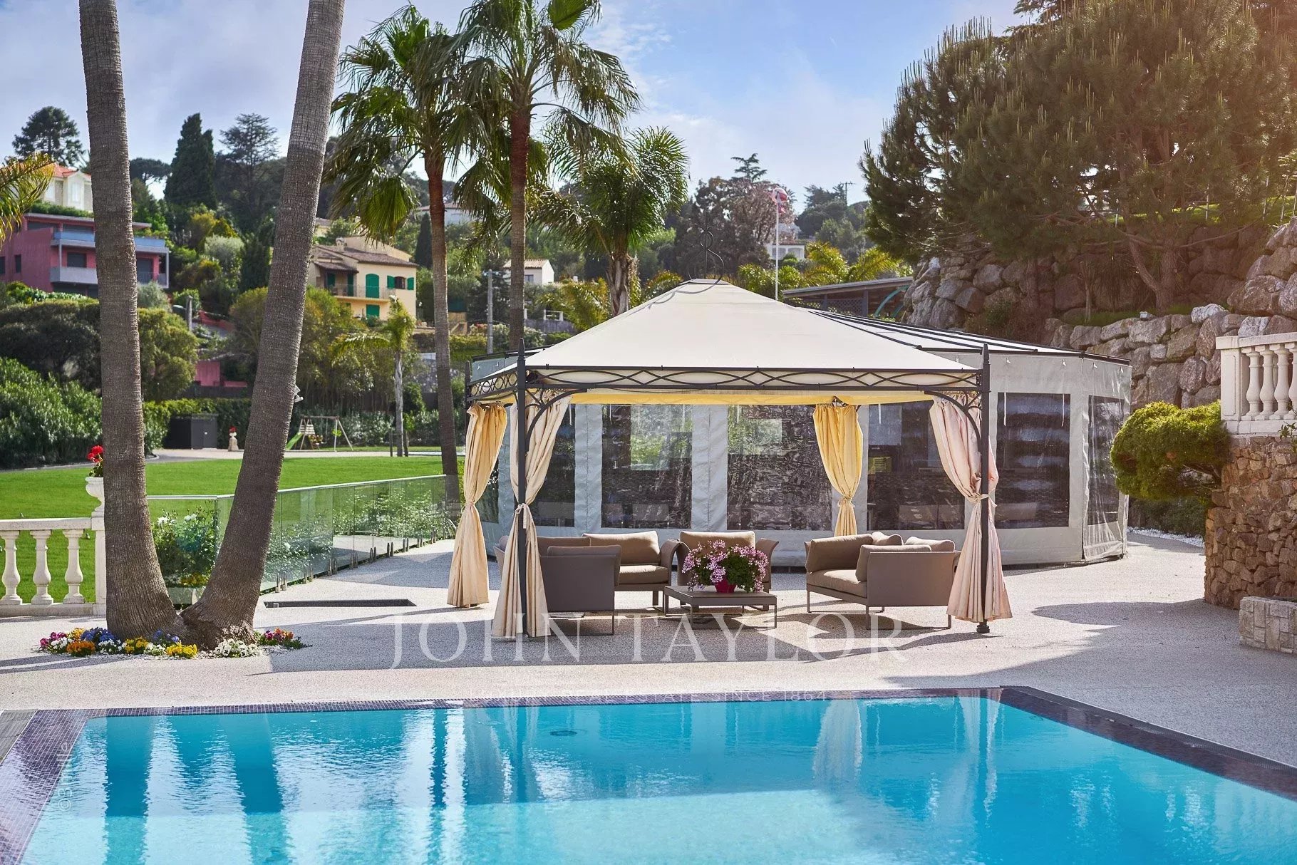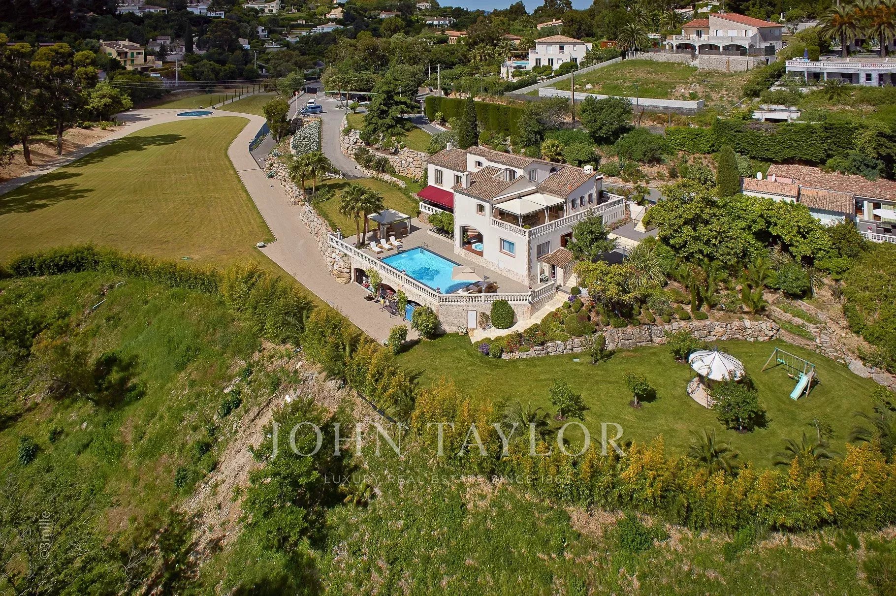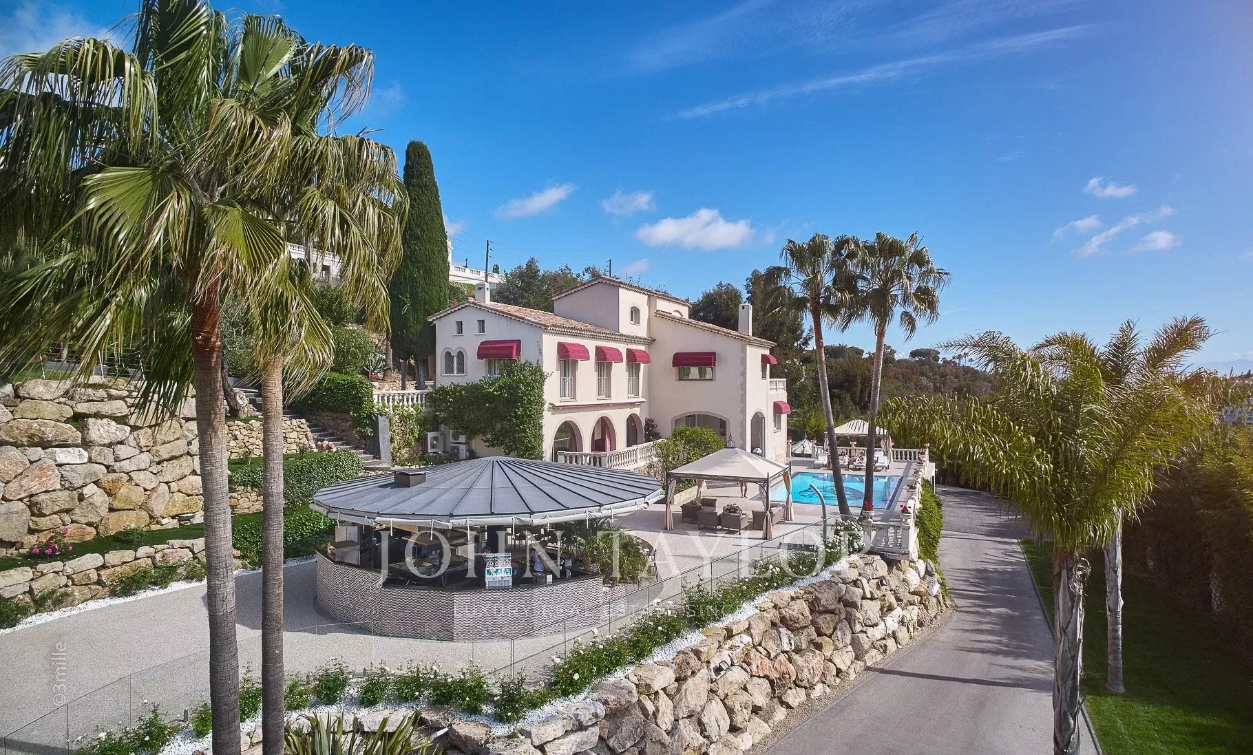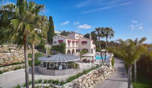 Dans le quartier de Super Cannes, magnifique villa située dans un lieu calme et protégé sur les collines de Cannes, entourée d'un vaste terrain de 20 000 m2 arboré de différentes essences (eucalyptus, mimosas, pins).