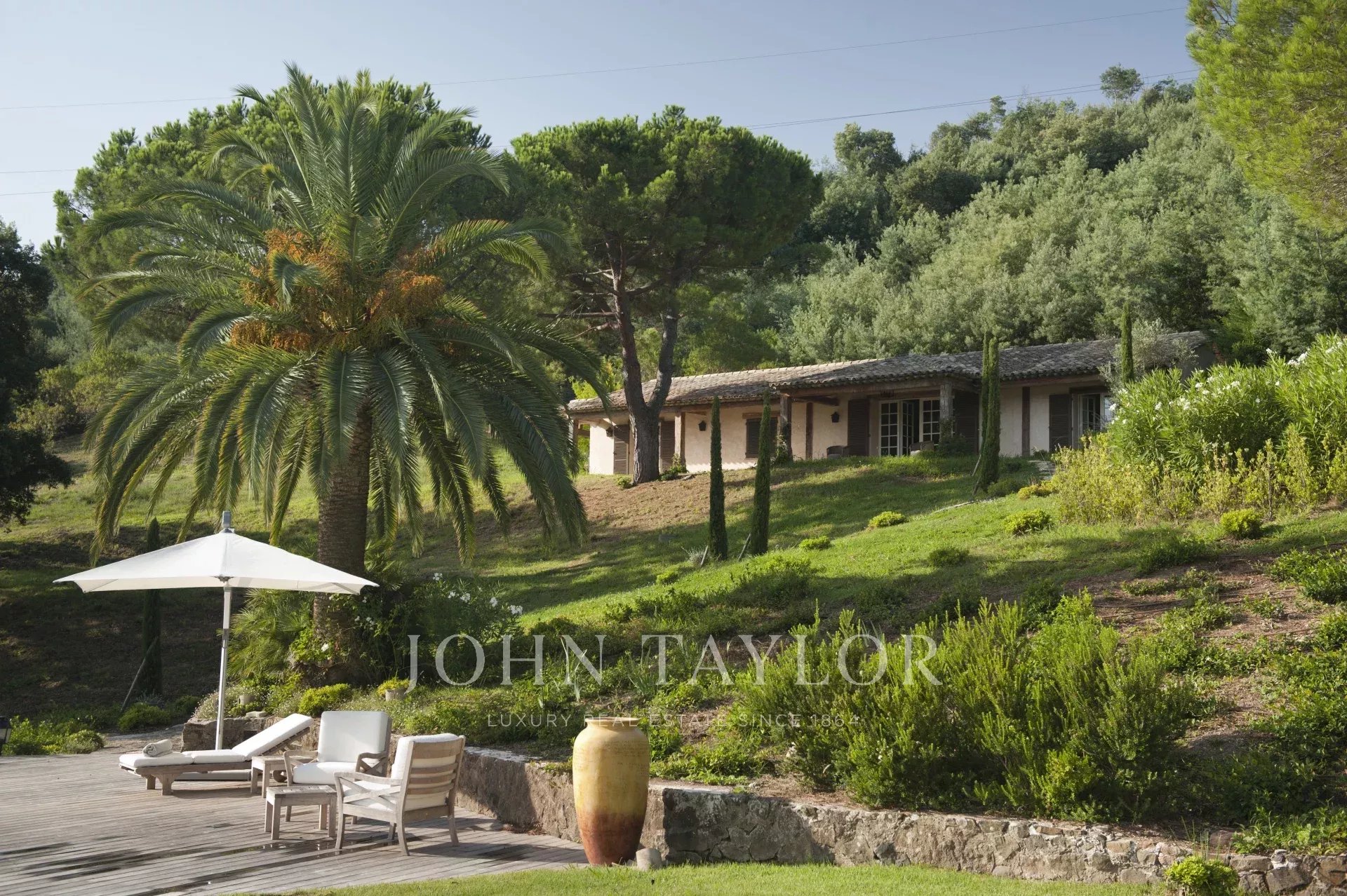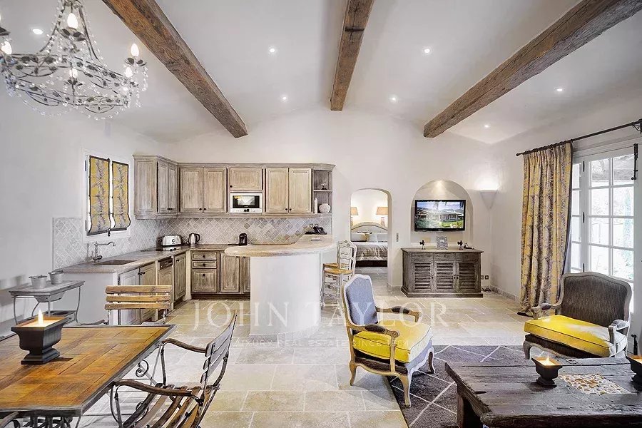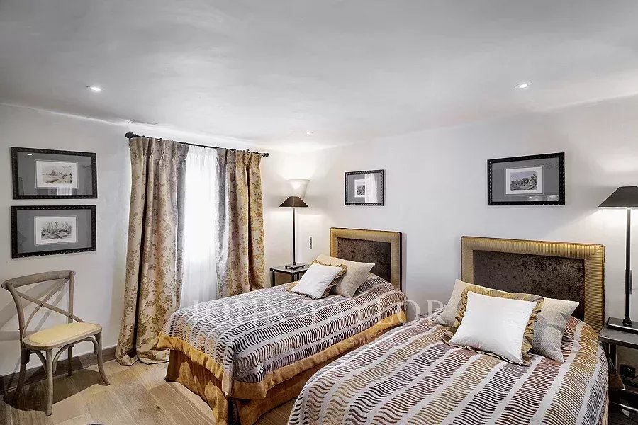 Cet étonnant domaine se trouve dans un parc de 30 hectares, planté d'oliviers et de lavande, à seulement 20 minutes de la Croisette, 10 minutes de l'aéroport de Cannes Mandelieu et 30 minutes de l'aéroport international Nice Côte d'Azur. La propriété est accessible par hélicoptère et est idéale pour des vacances en toute intimité. Véritable havre de paix dans un écrin de verdure.