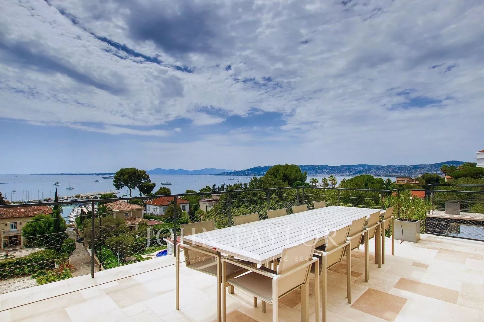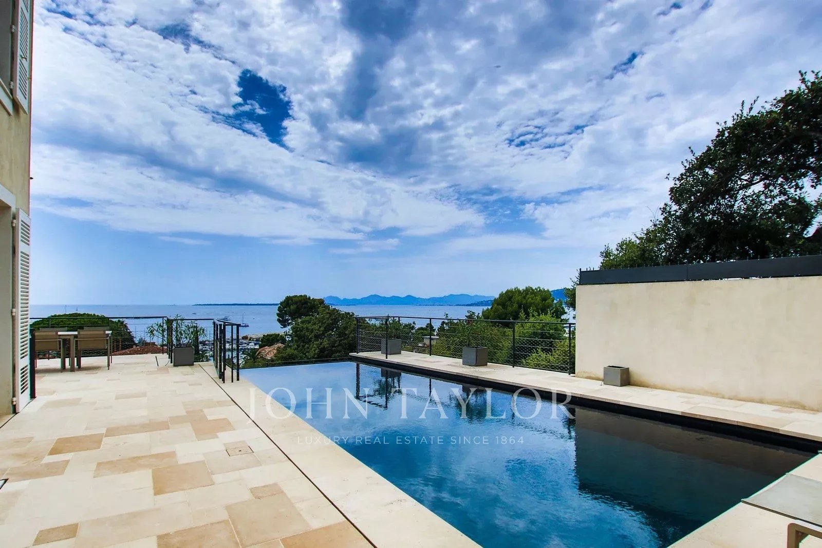 Belle propriété neuve de 350 m² sur un terrain de 800 m² avec piscine et vue mer panoramique. Proche des plages et commerces du Cap d’Antibes et Juan les Pins.