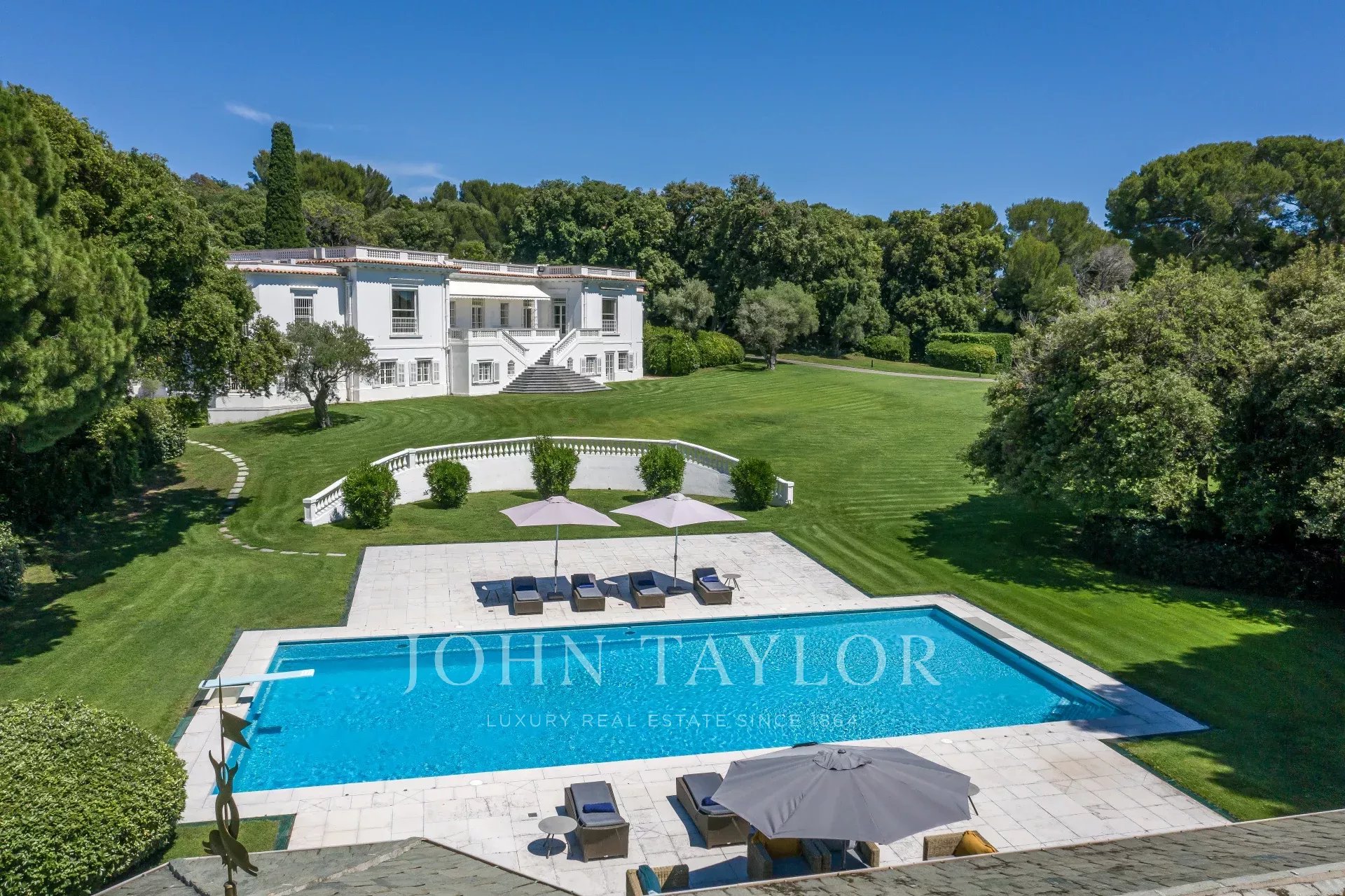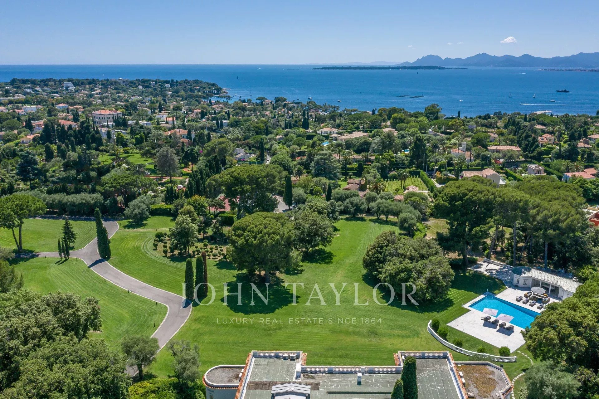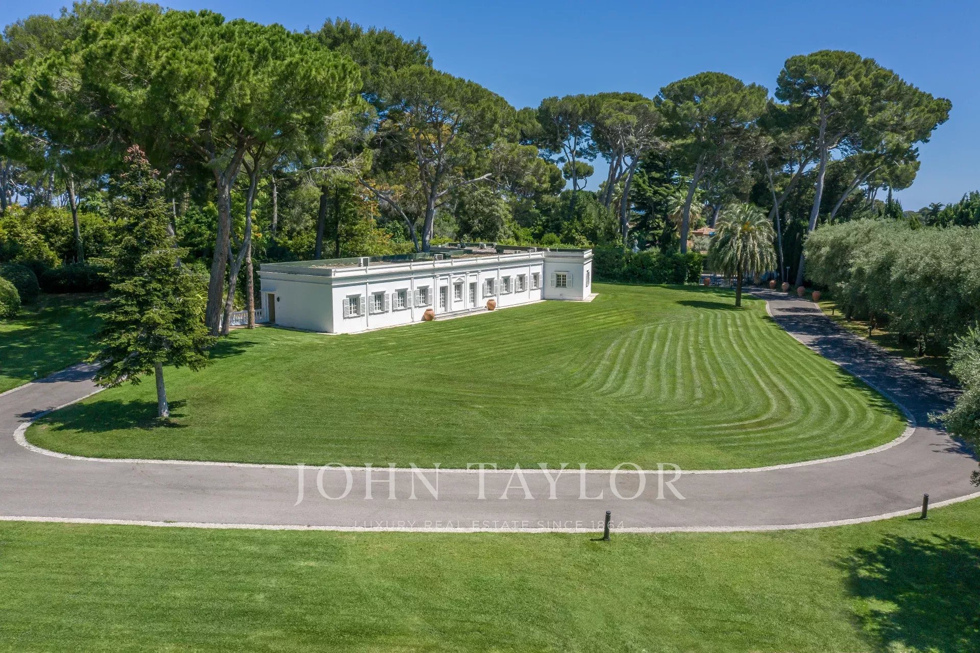 Superbe exemple de l'architecture des années Vingt, cette exceptionnelle propriété est située sur la partie la plus élevée du Cap d'Antibes, au cour d'un parc de plus de 4,5 hectares presque entièrement couvert d'un merveilleux gazon anglais.