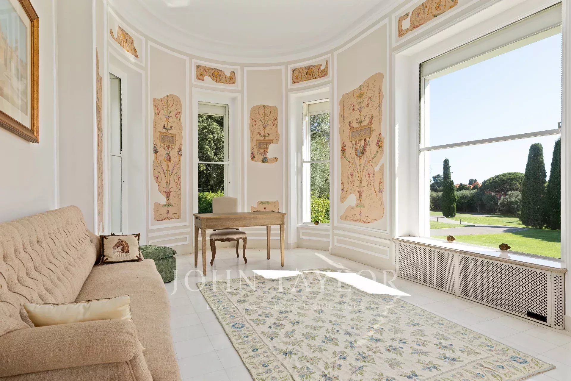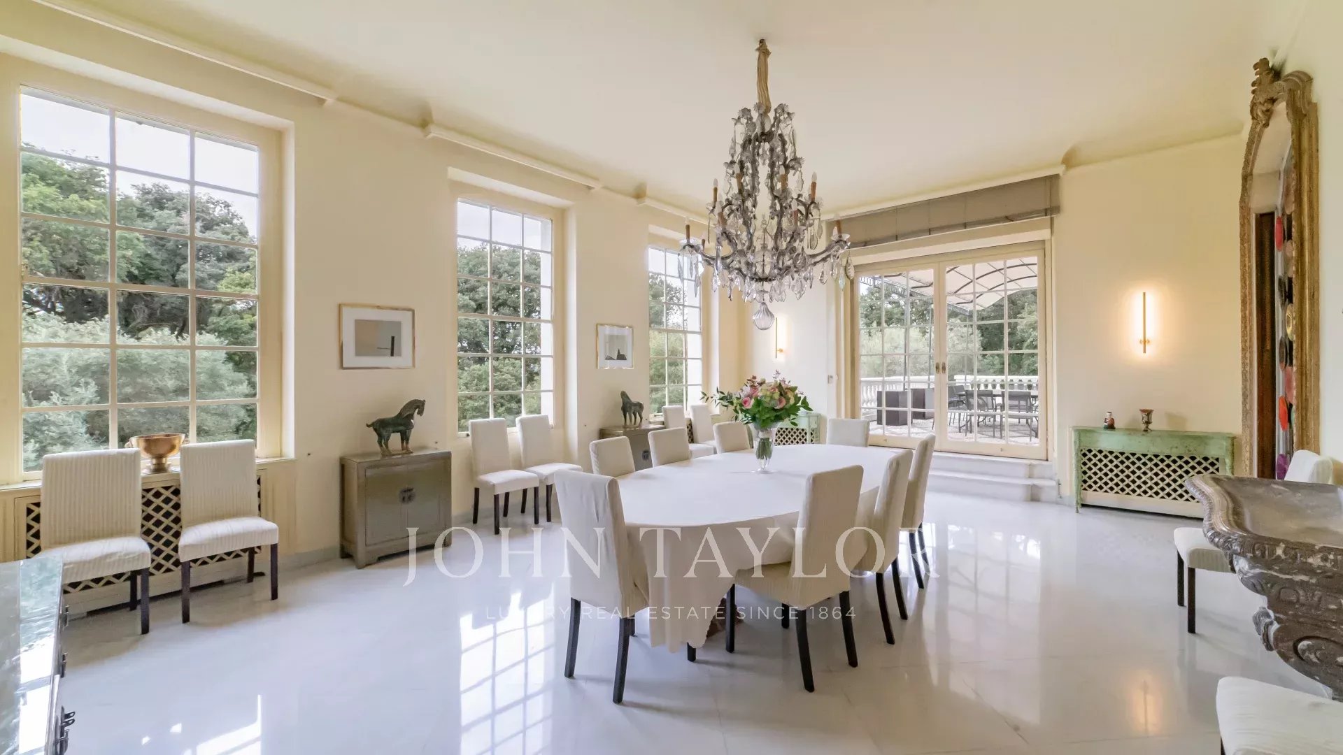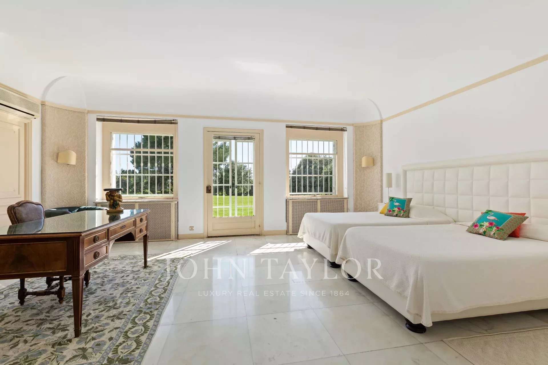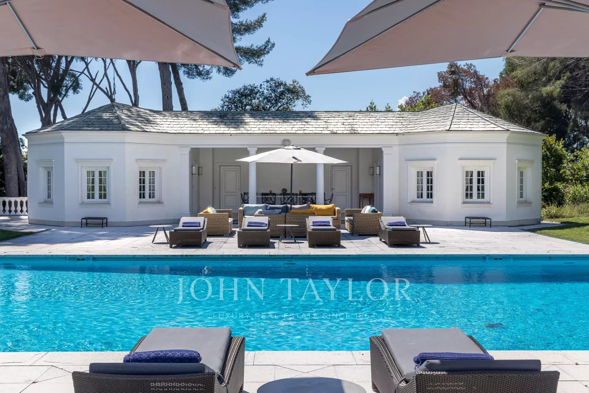 Superbe exemple de l'architecture des années Vingt, cette exceptionnelle propriété est située sur la partie la plus élevée du Cap d'Antibes, au cour d'un parc de plus de 4,5 hectares presque entièrement couvert d'un merveilleux gazon anglais.