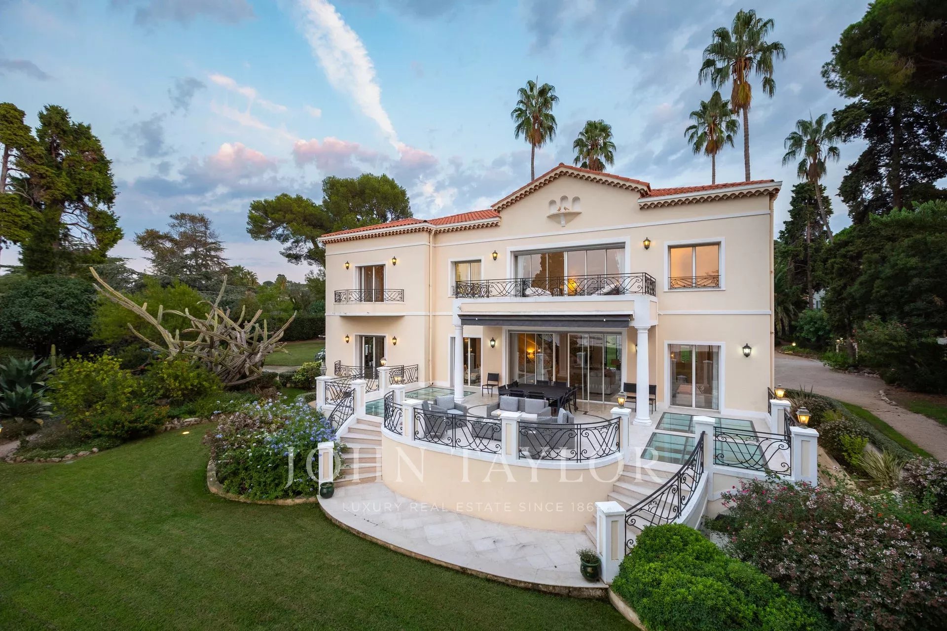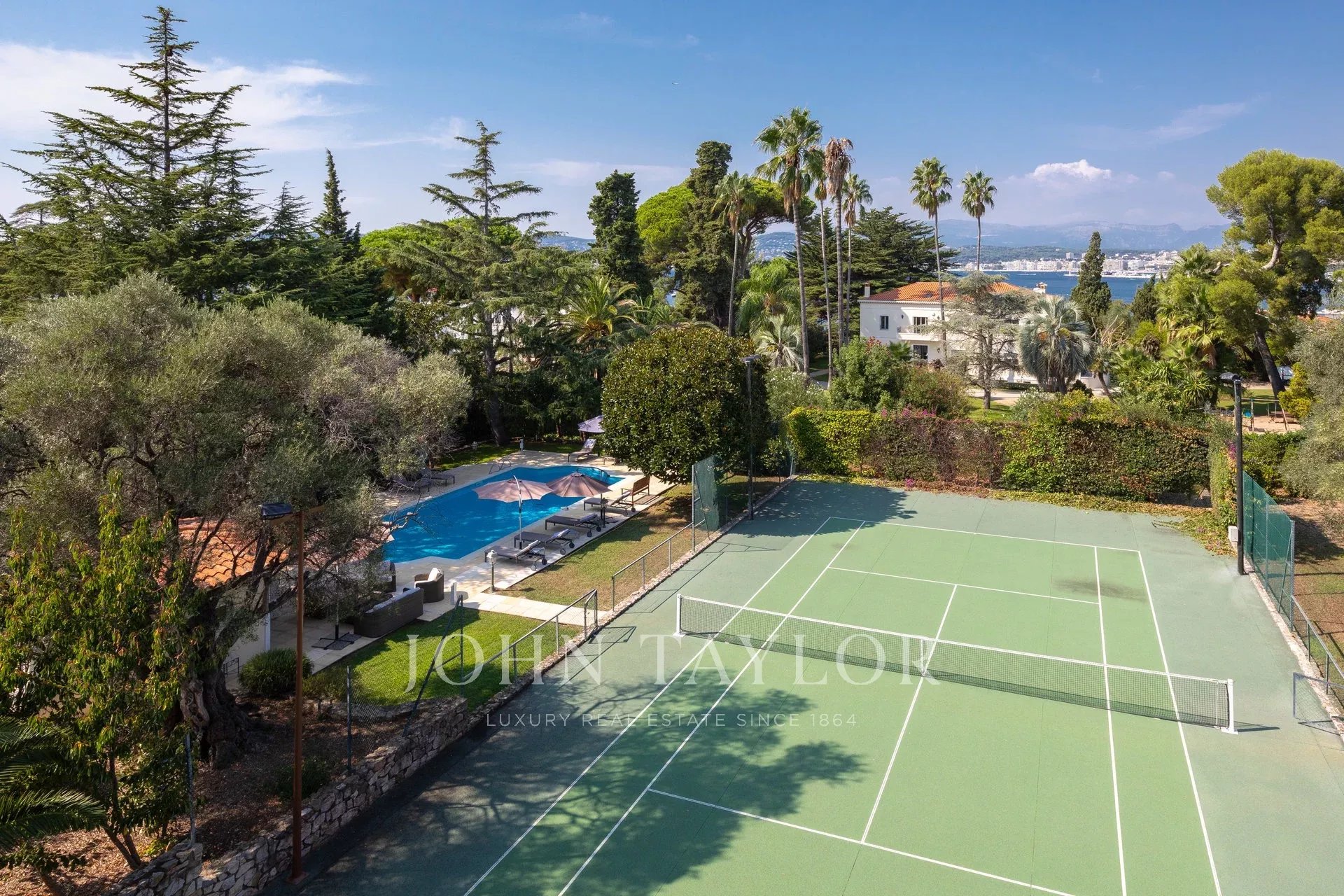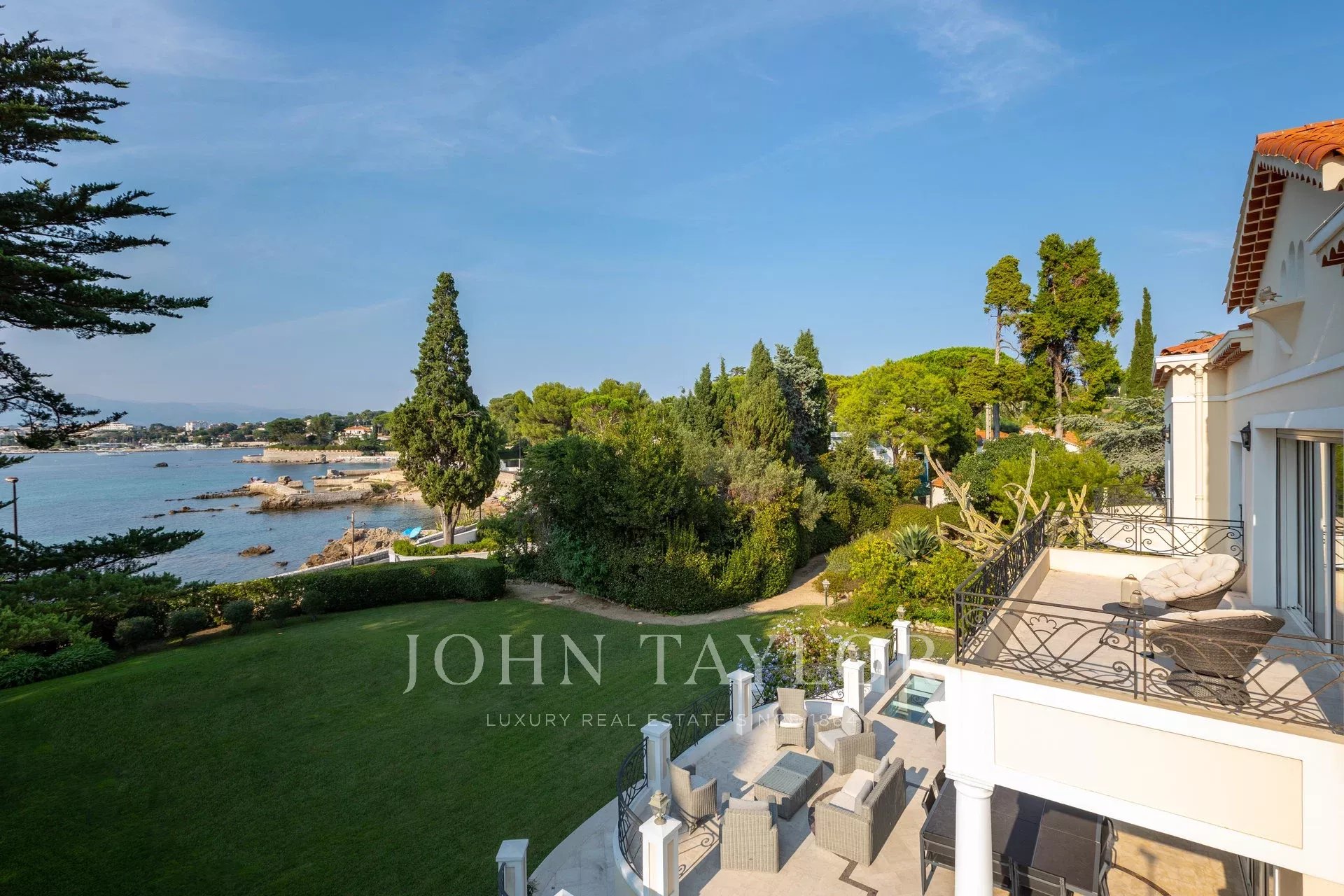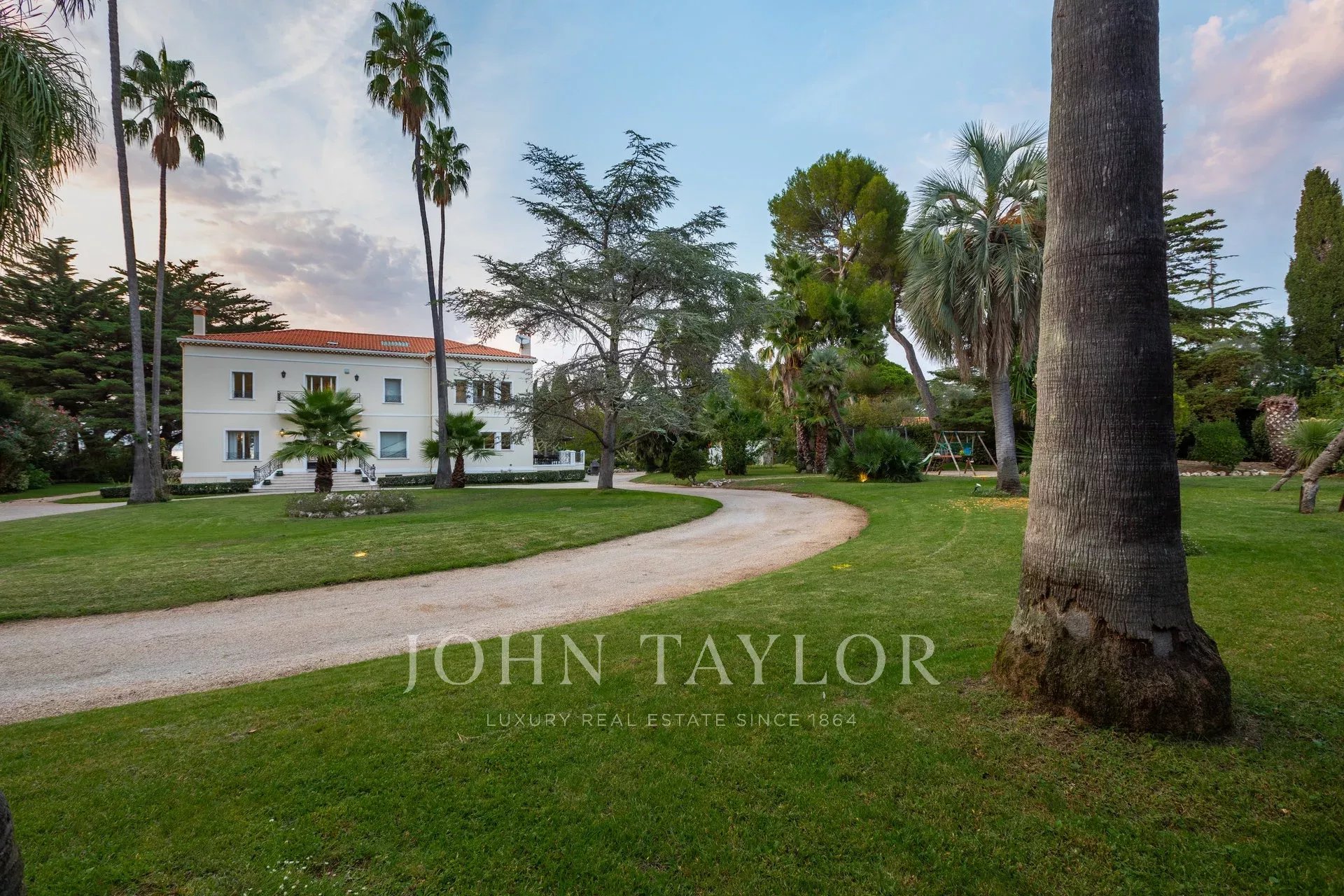 Splendide propriété de 3 niveaux située en bordure du Boulevard du Littoral. A quelques minutes à pied de l'hôtel Eden Roc, elle jouit d'une très belle vue sur la Baie de Juan Les Pins, les Iles de Lérins et l'Esterel. Entièrement rénovée et climatisée, elle est entourée d'un parc de 9 000 m2 bien dessiné, avec pelouse, fleurs et très beaux arbres.