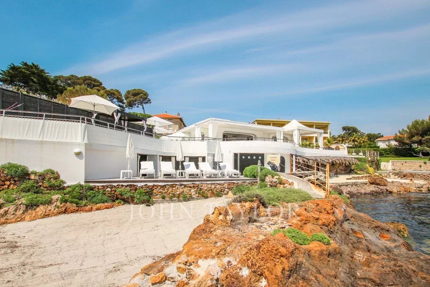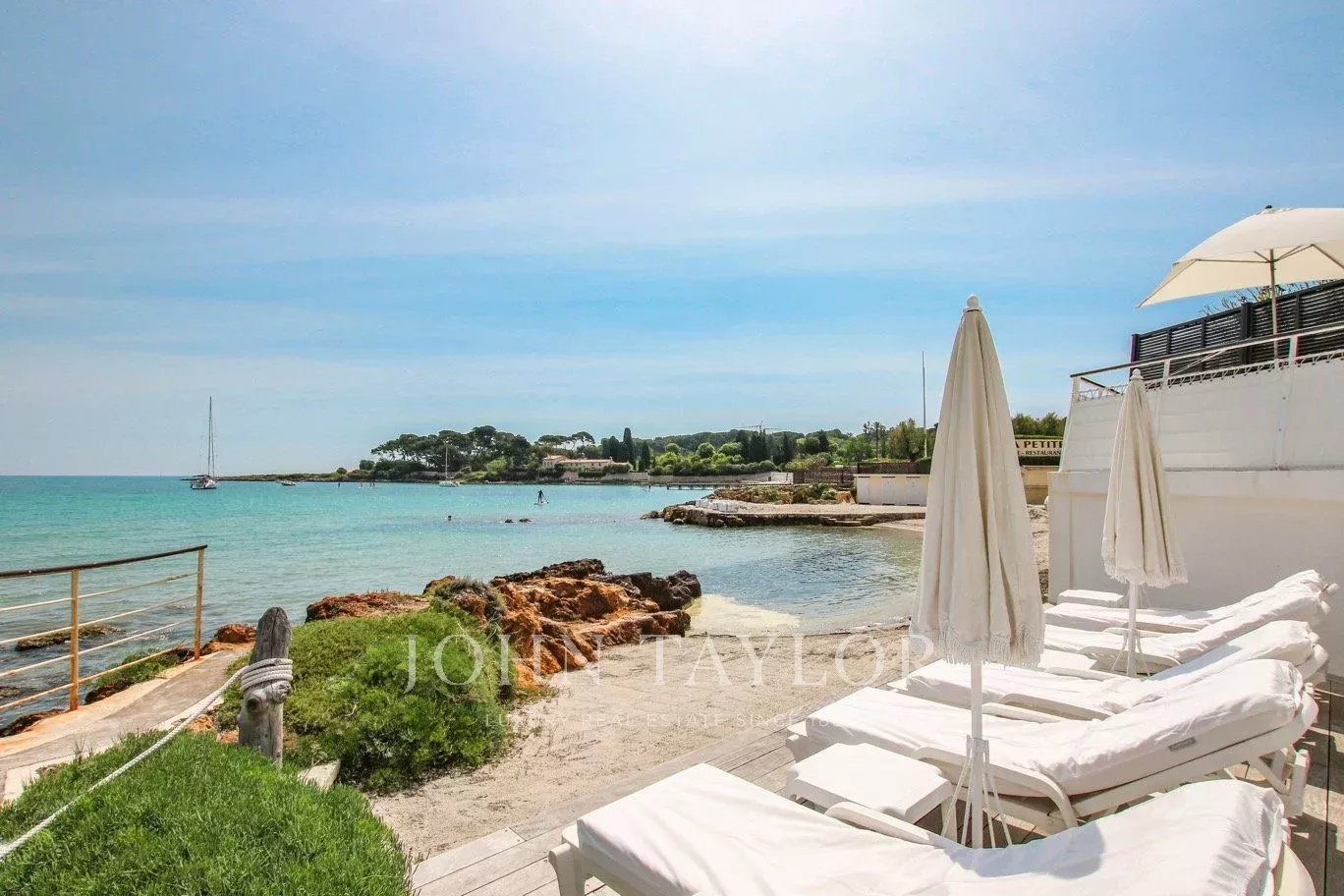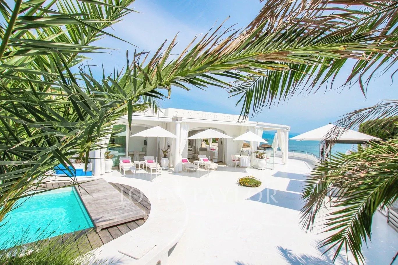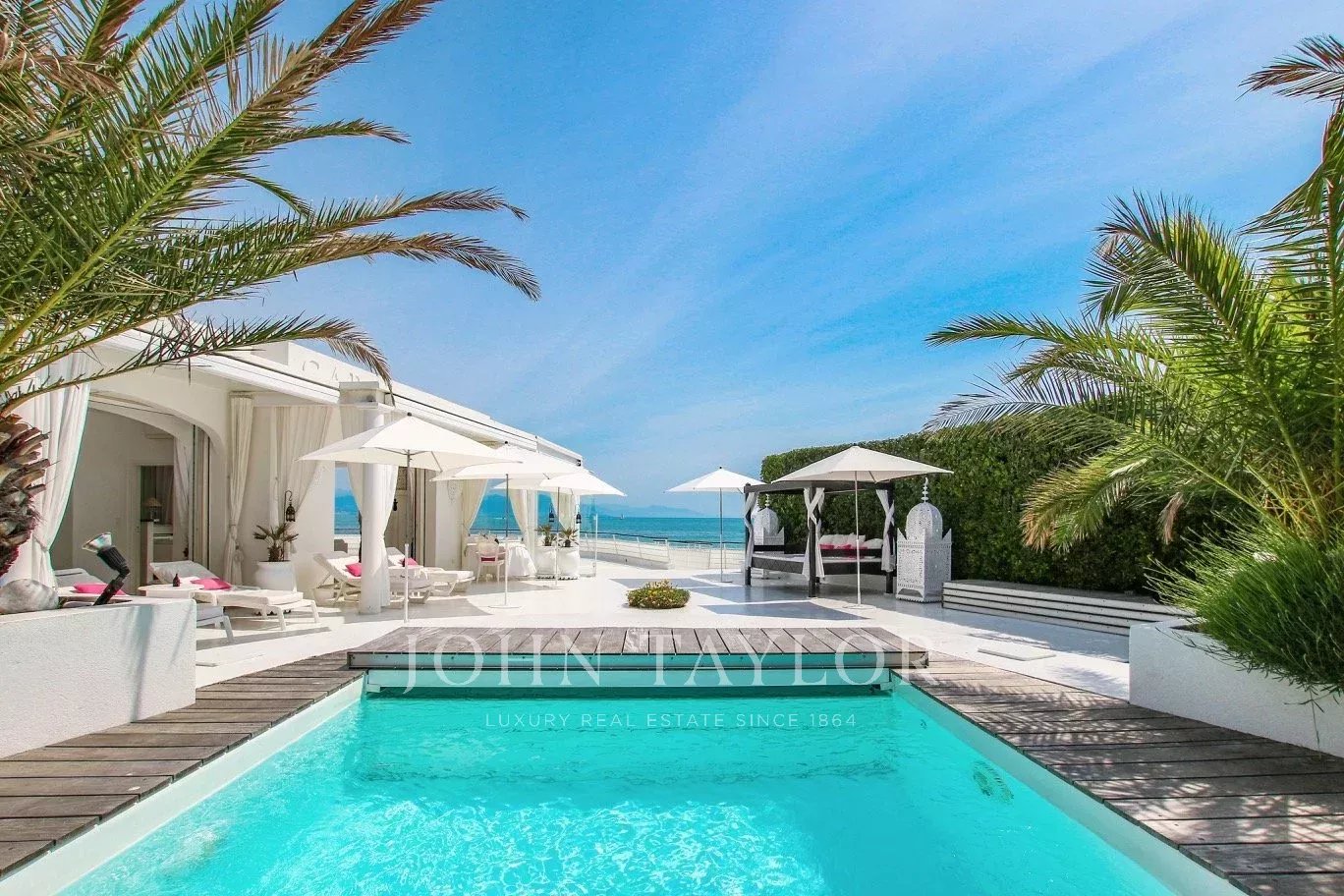 Belle villa californienne de plain pied, d'environ 120m², sise sur un terrain de 842m², avec piscine chauffée et plage privée, emplacement exceptionnel dans la Baie de la Garoupe.