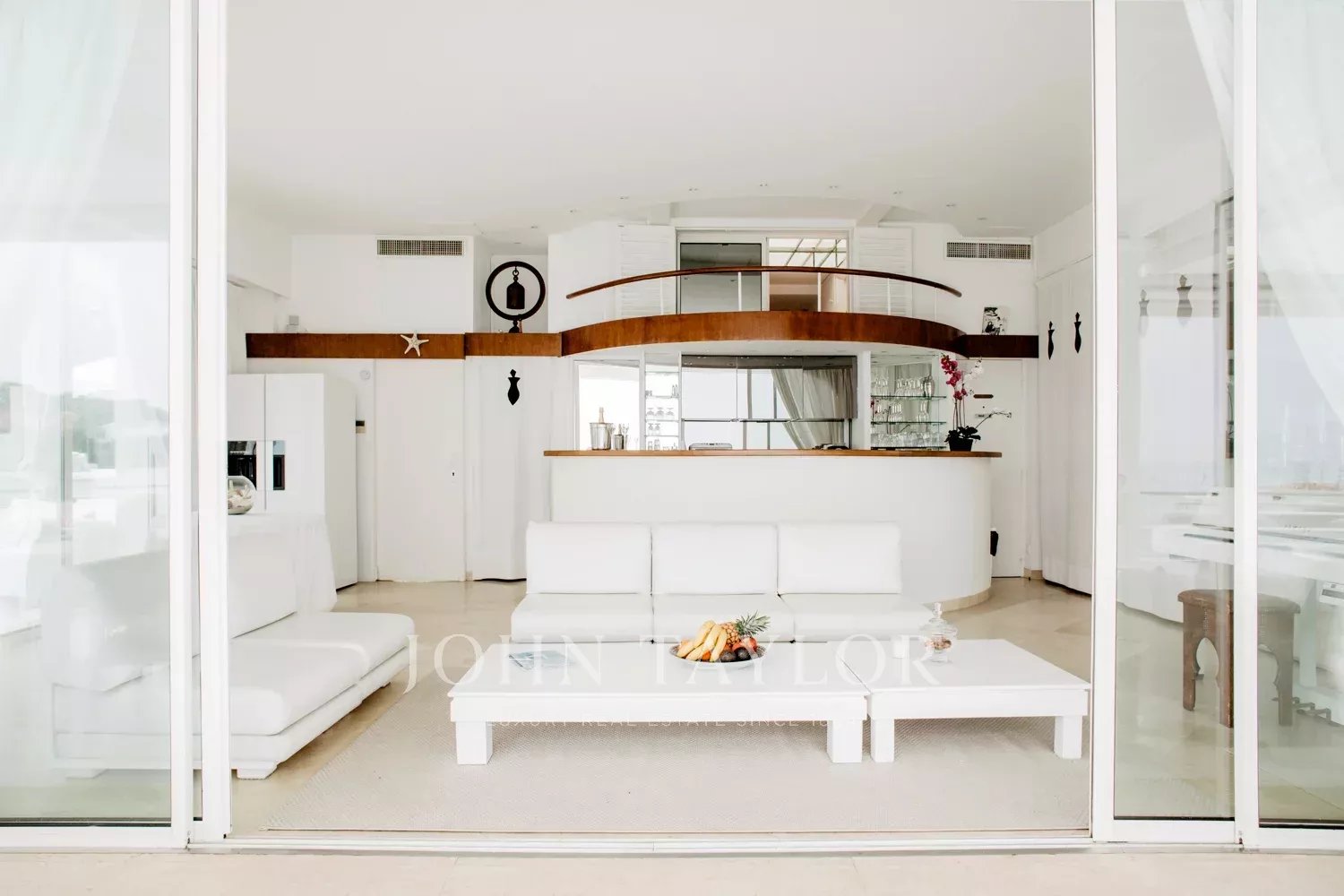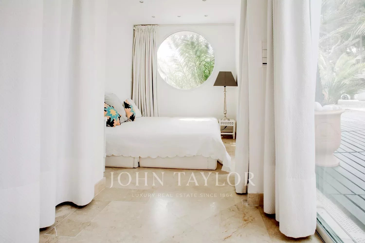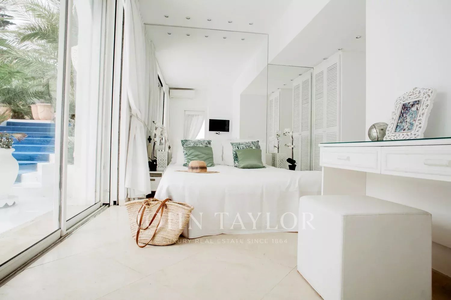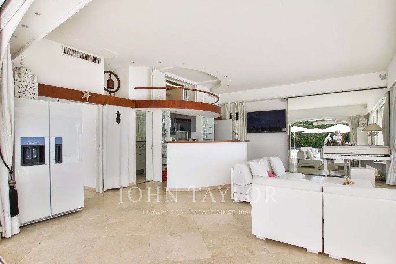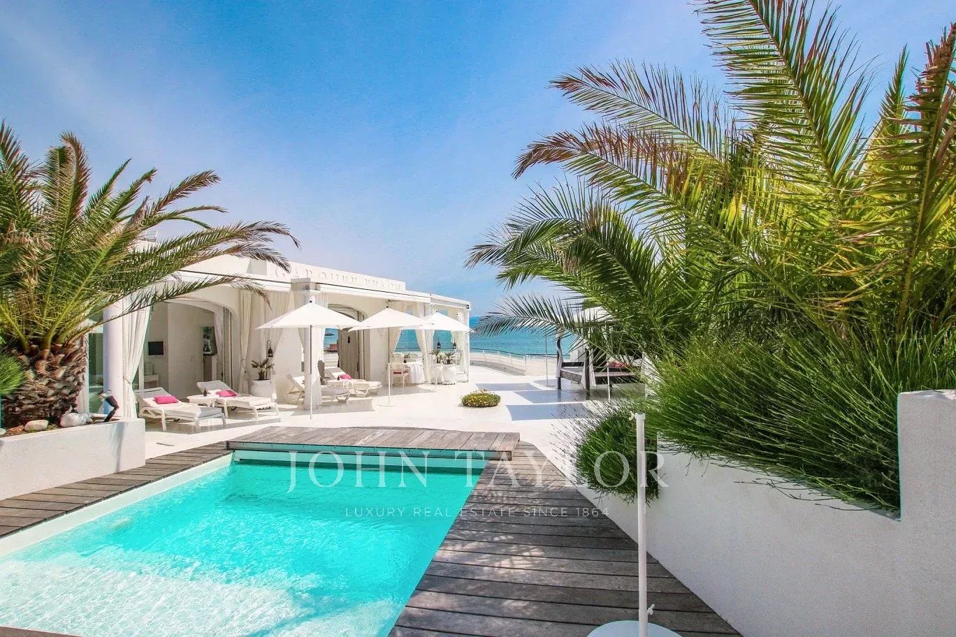 Belle villa californienne de plain pied, d'environ 120m², sise sur un terrain de 842m², avec piscine chauffée et plage privée, emplacement exceptionnel dans la Baie de la Garoupe.