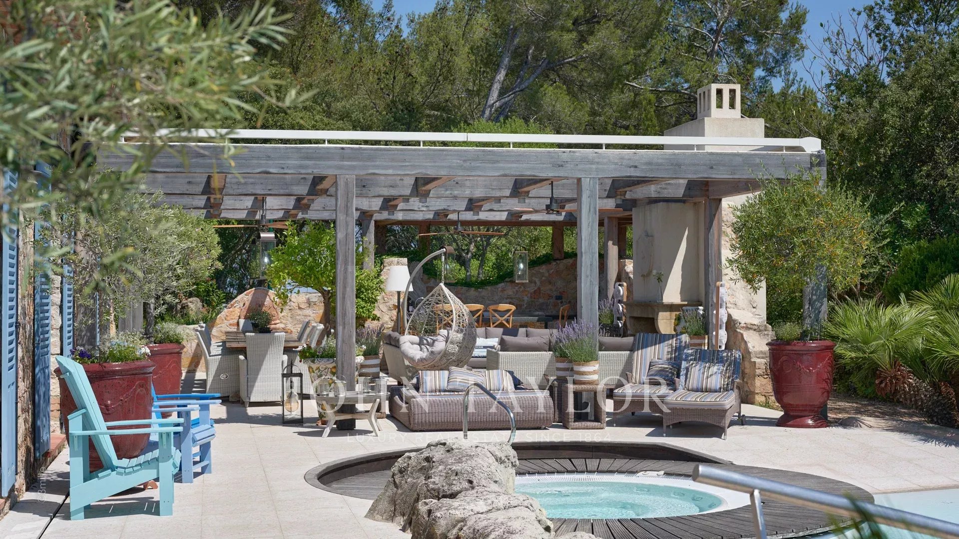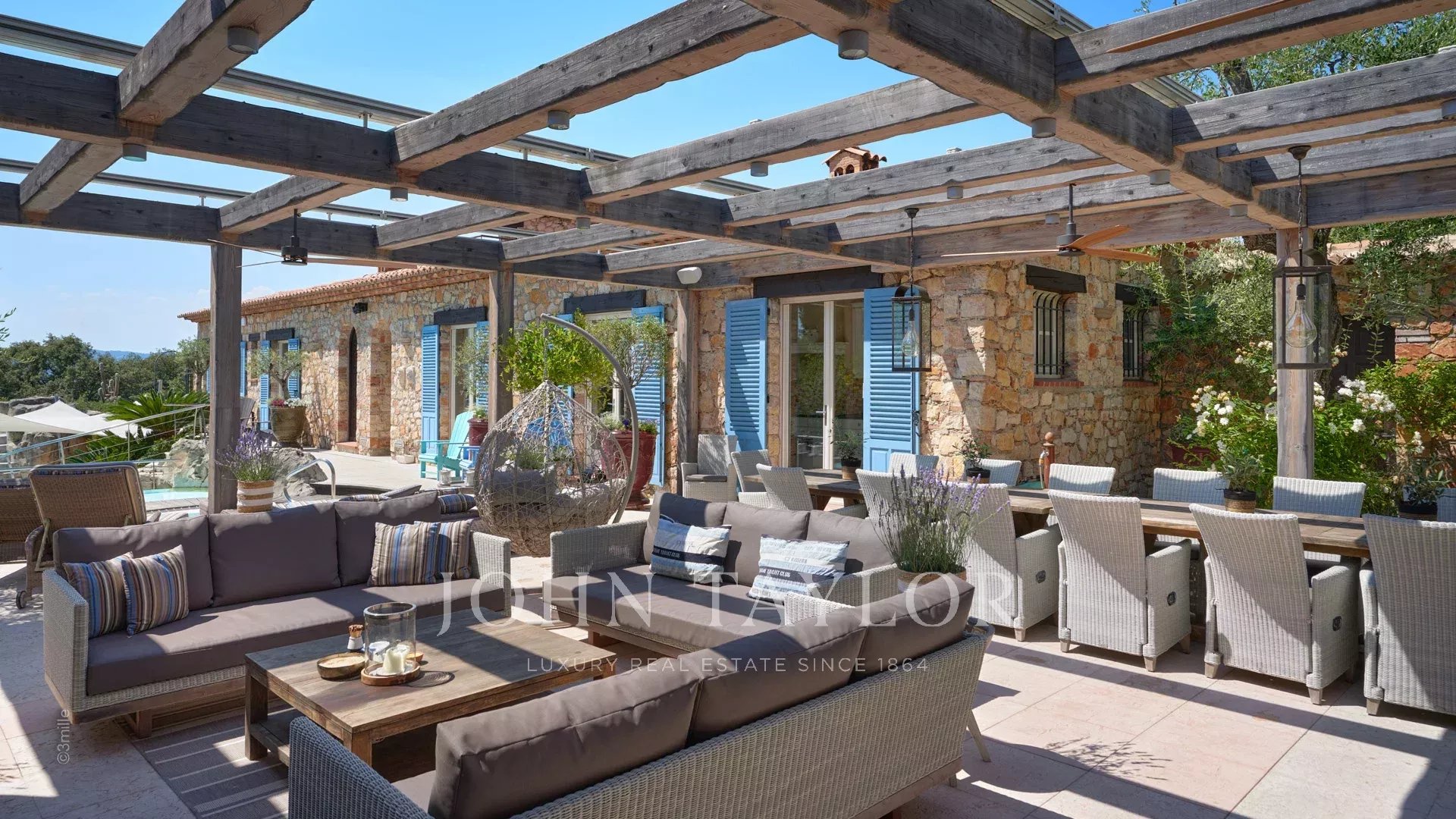 Superbes terrasses aménagées avec salons et salles à manger d'été