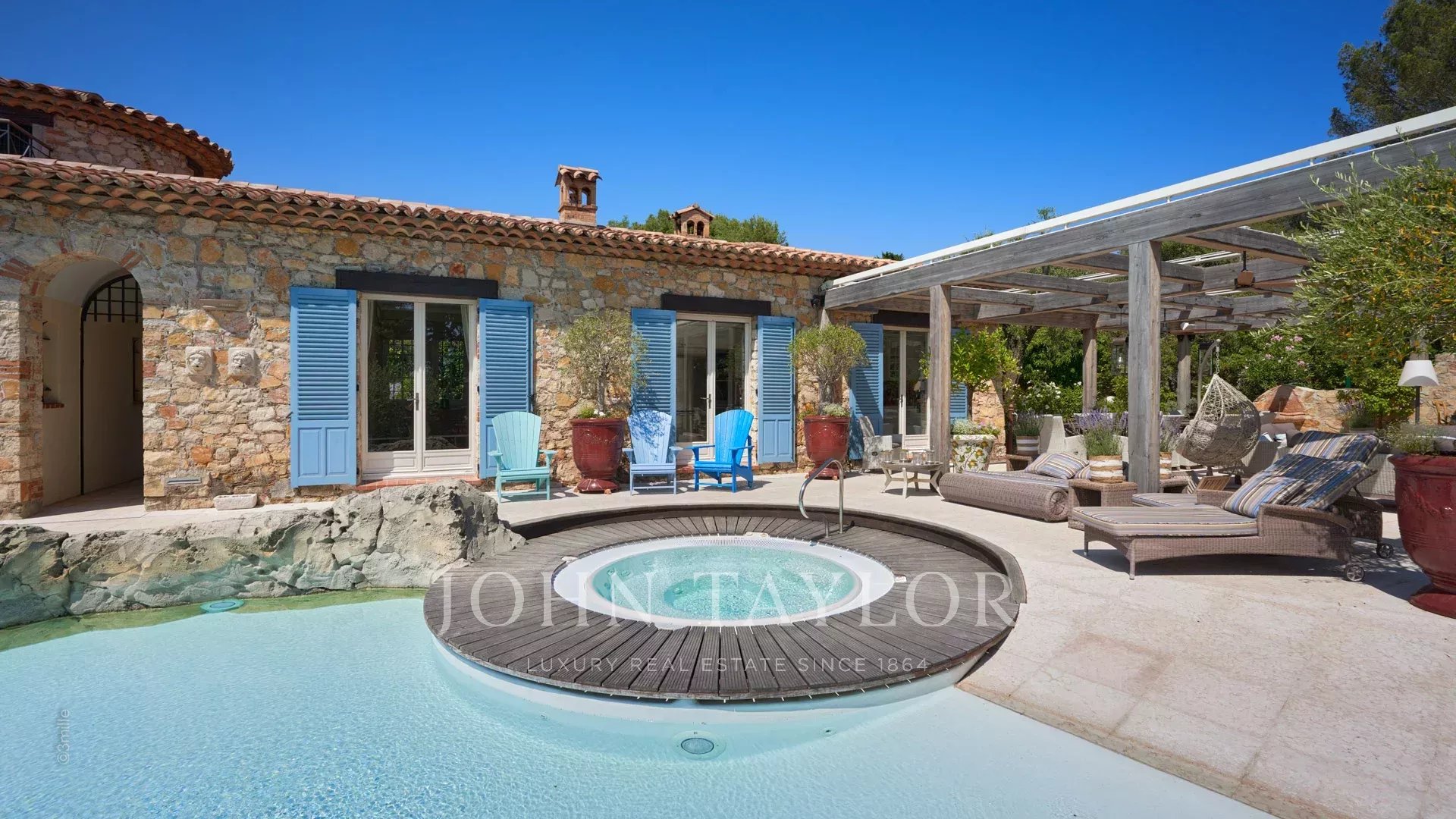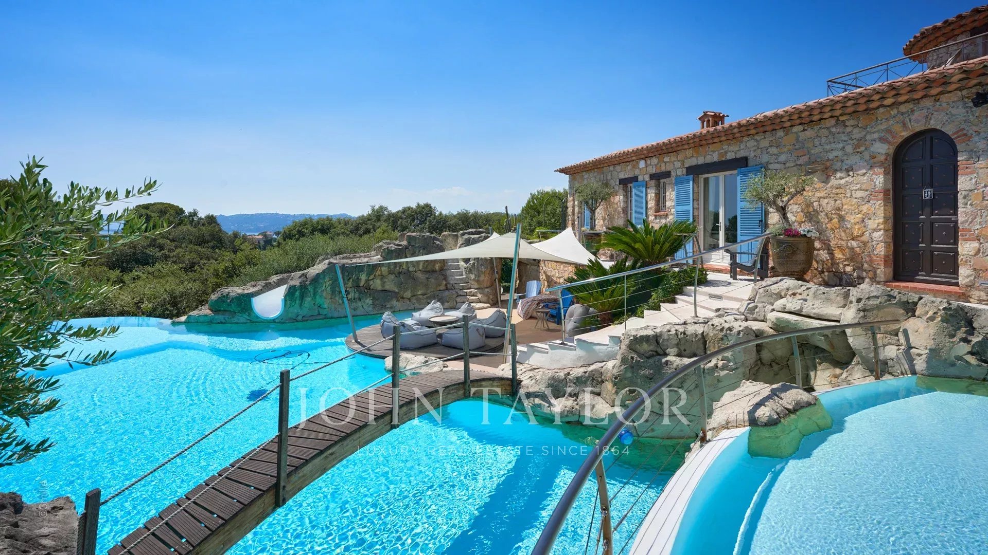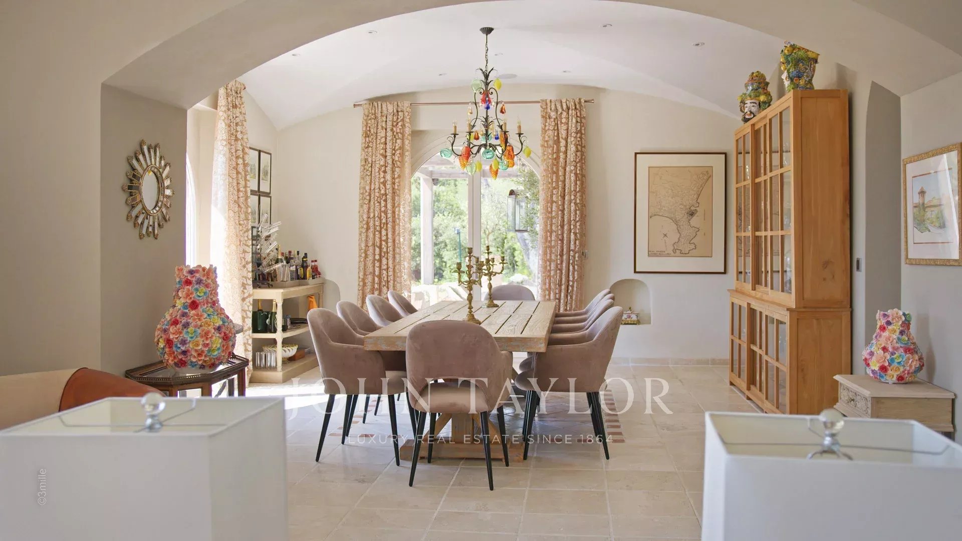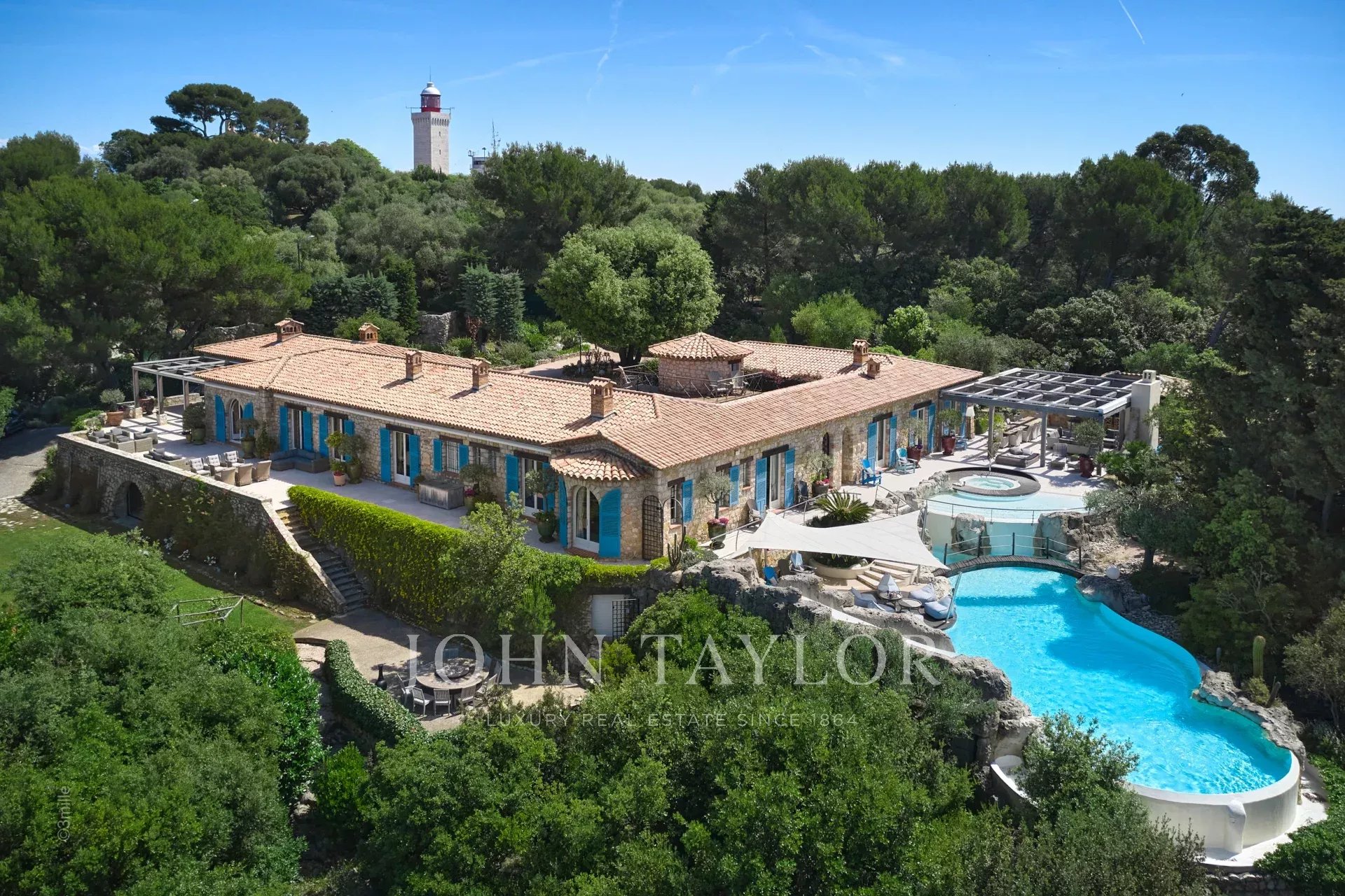 Magnifique Bastide de 720 m2 nichée dans l’un des quartiers les plus recherchés du Cap d’Antibes, à proximité du Phare de la Garoupe, à quelques minutes en voiture des Plages de la Salis et du Port de la Gallice. Havre de paix au cœur d’un superbe parc de 8 800 m2, la propriété entièrement climatisée offre de belles prestations et une décoration des plus soignée, idéale pour des vacances en toute intimité sur la Côte d’Azur ! Particulièrement lumineuse, toutes ses pièces s’ouvrent sur les terrasses qui entourent la villa.