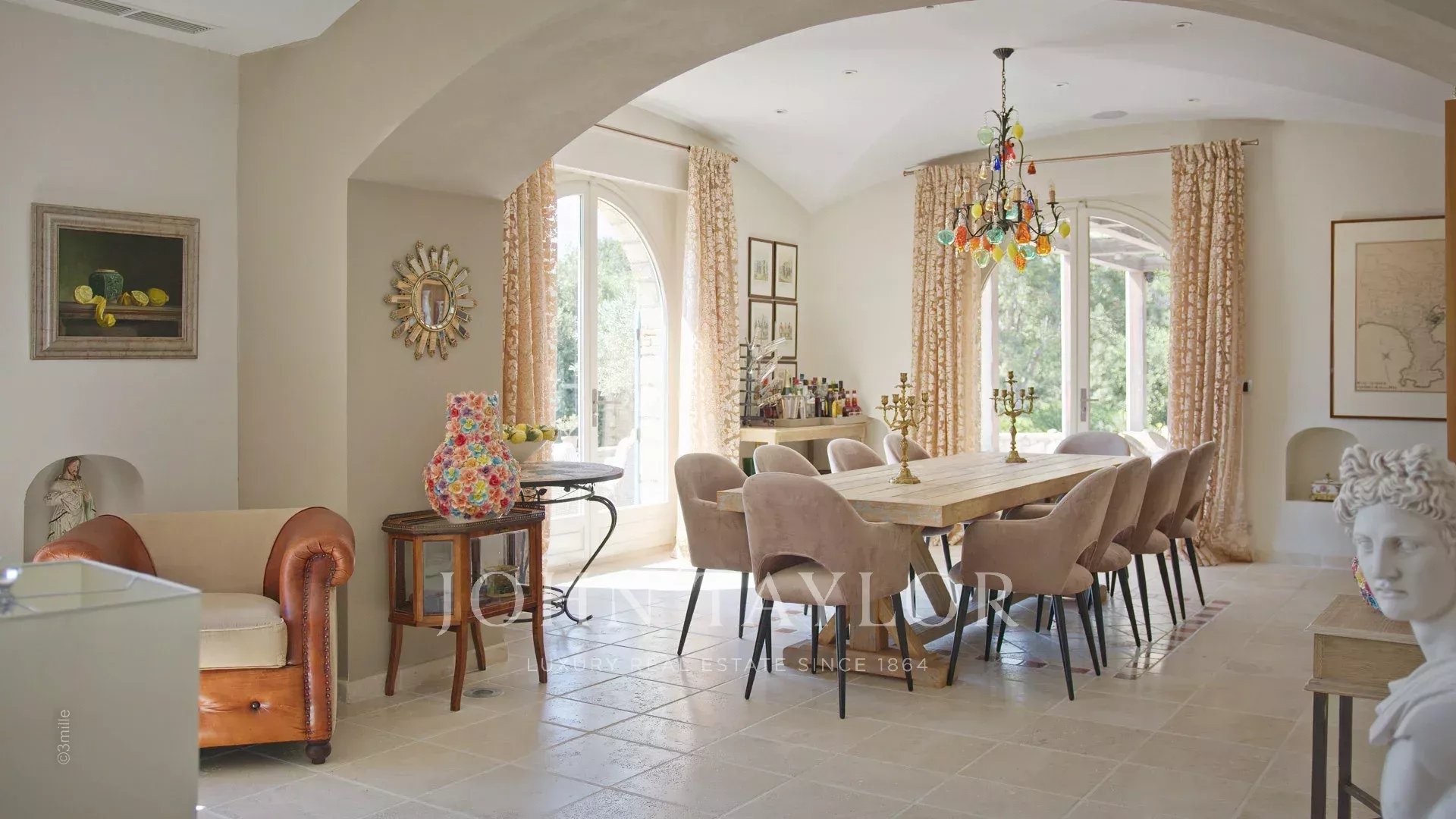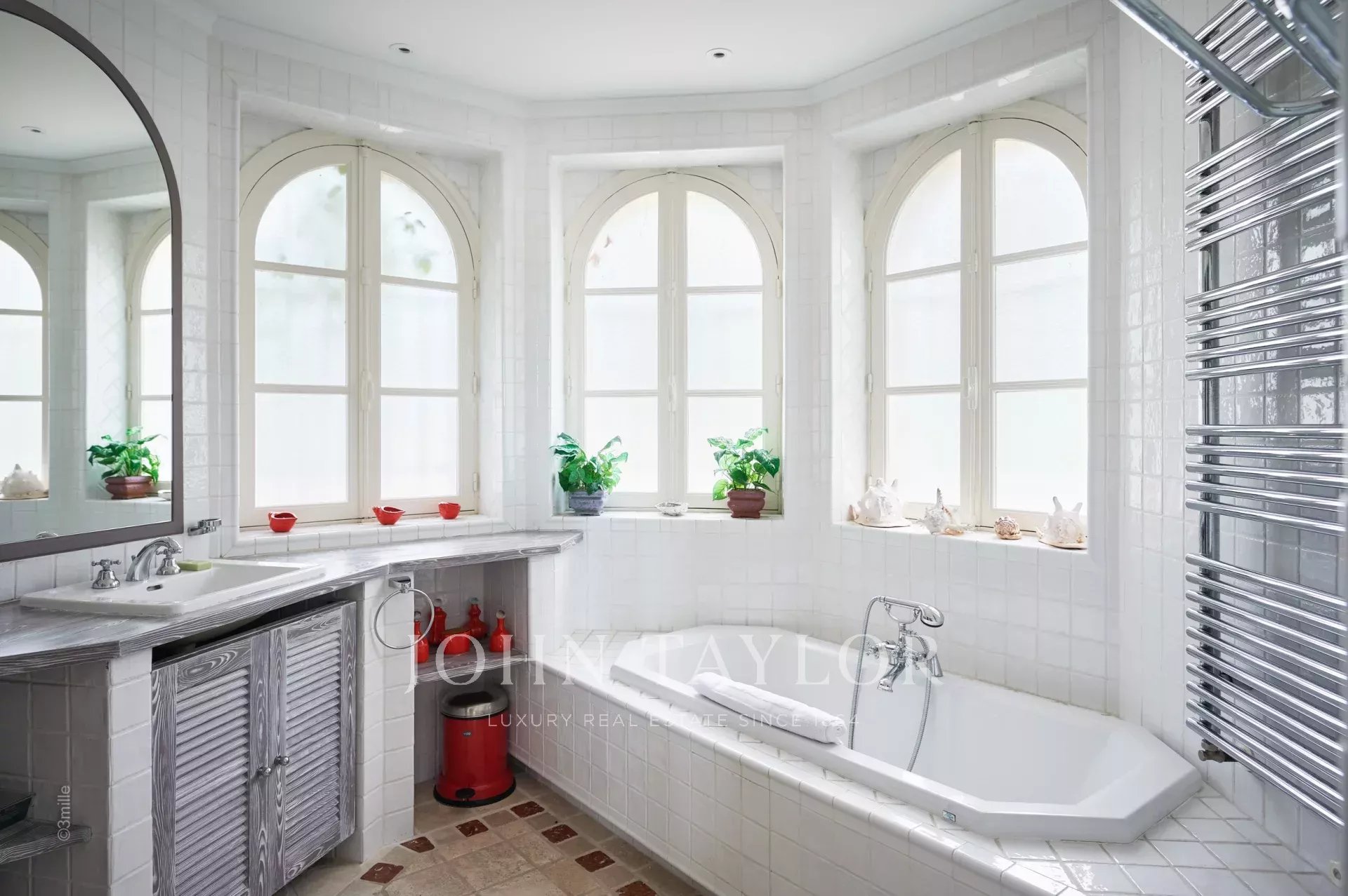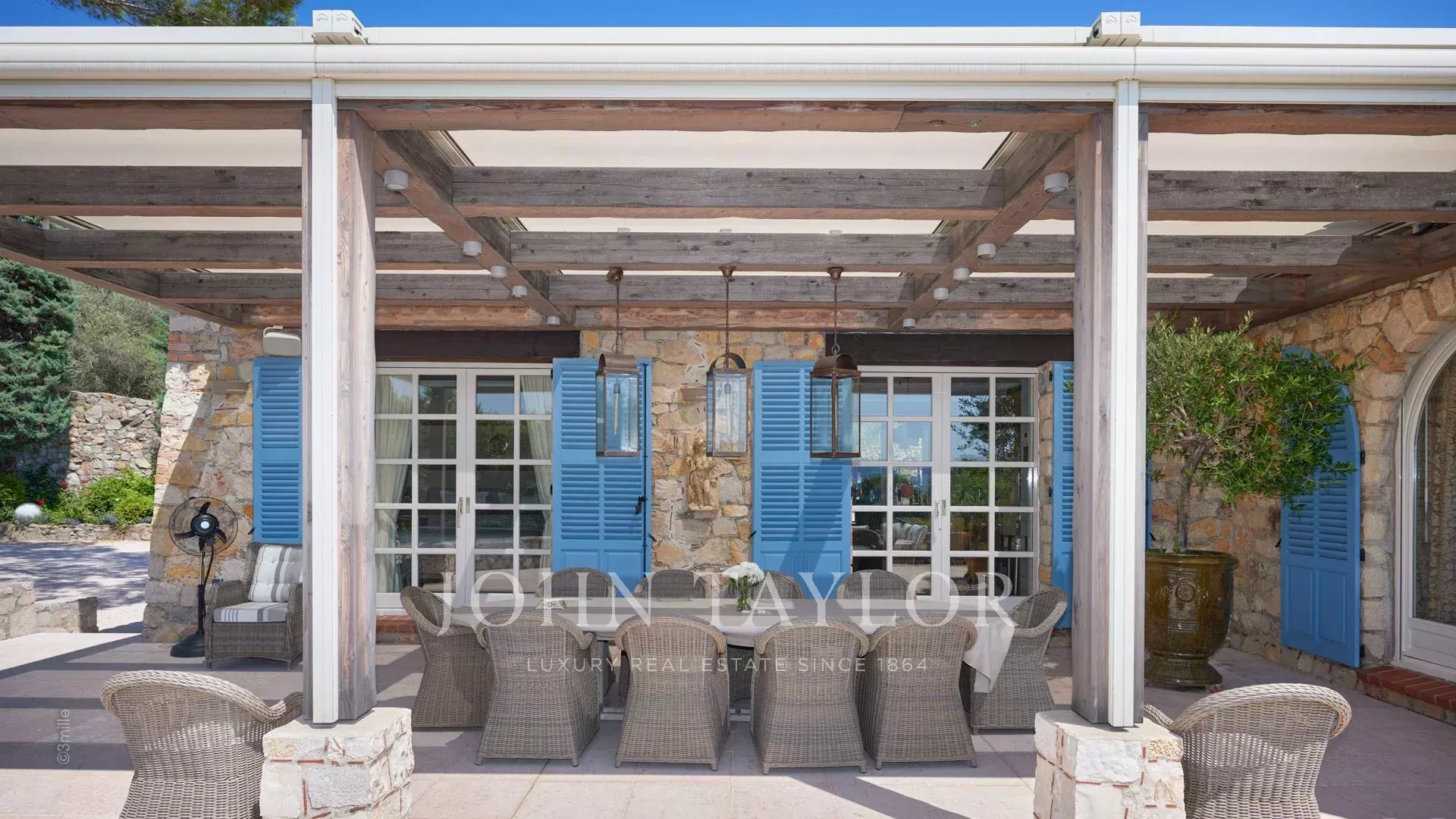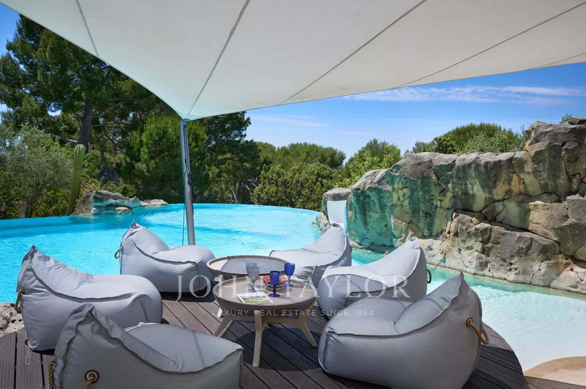 Magnifique Bastide de 720 m2 nichée dans l’un des quartiers les plus recherchés du Cap d’Antibes, à proximité du Phare de la Garoupe, à quelques minutes en voiture des Plages de la Salis et du Port de la Gallice. Havre de paix au cœur d’un superbe parc de 8 800 m2, la propriété entièrement climatisée offre de belles prestations et une décoration des plus soignée, idéale pour des vacances en toute intimité sur la Côte d’Azur ! Particulièrement lumineuse, toutes ses pièces s’ouvrent sur les terrasses qui entourent la villa.